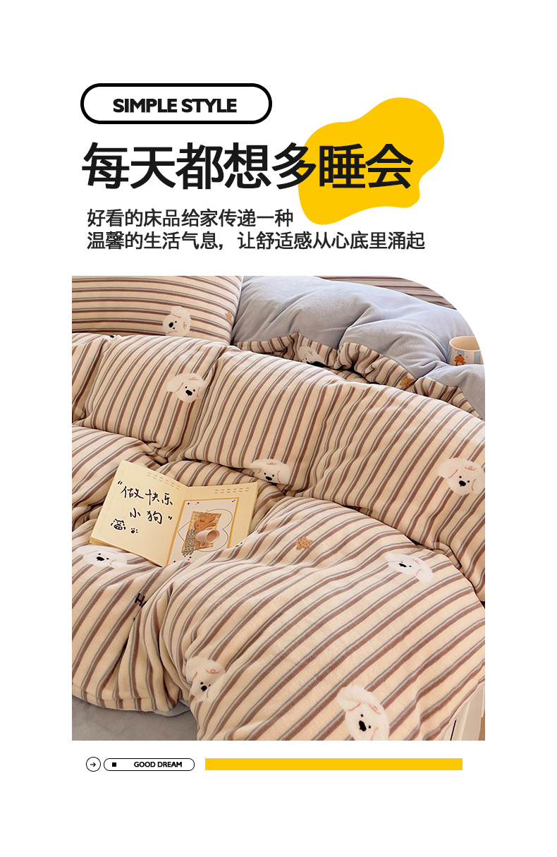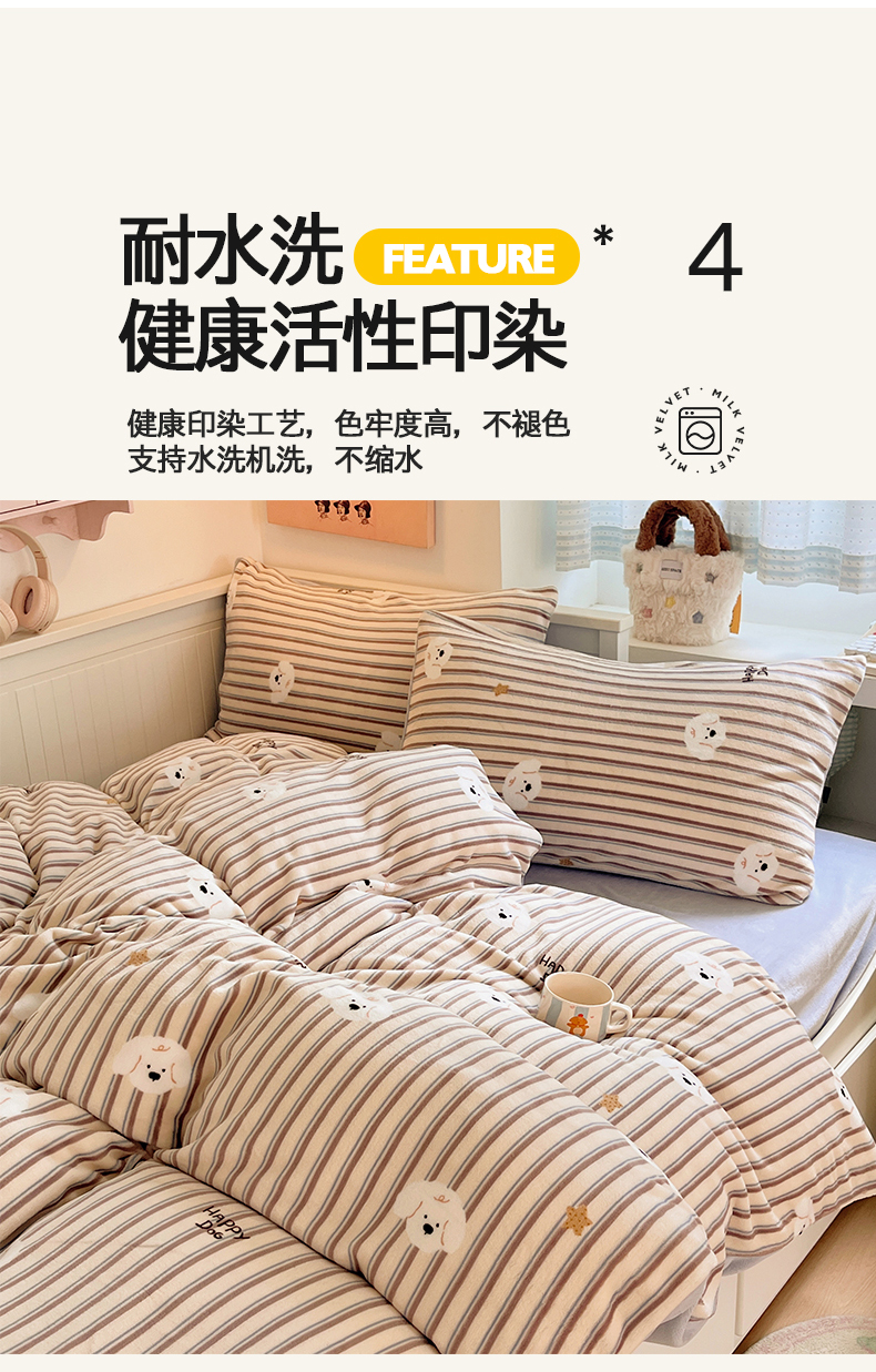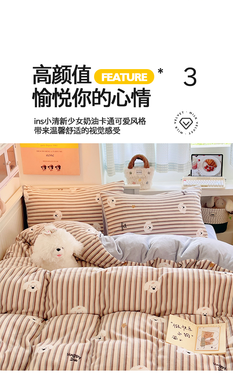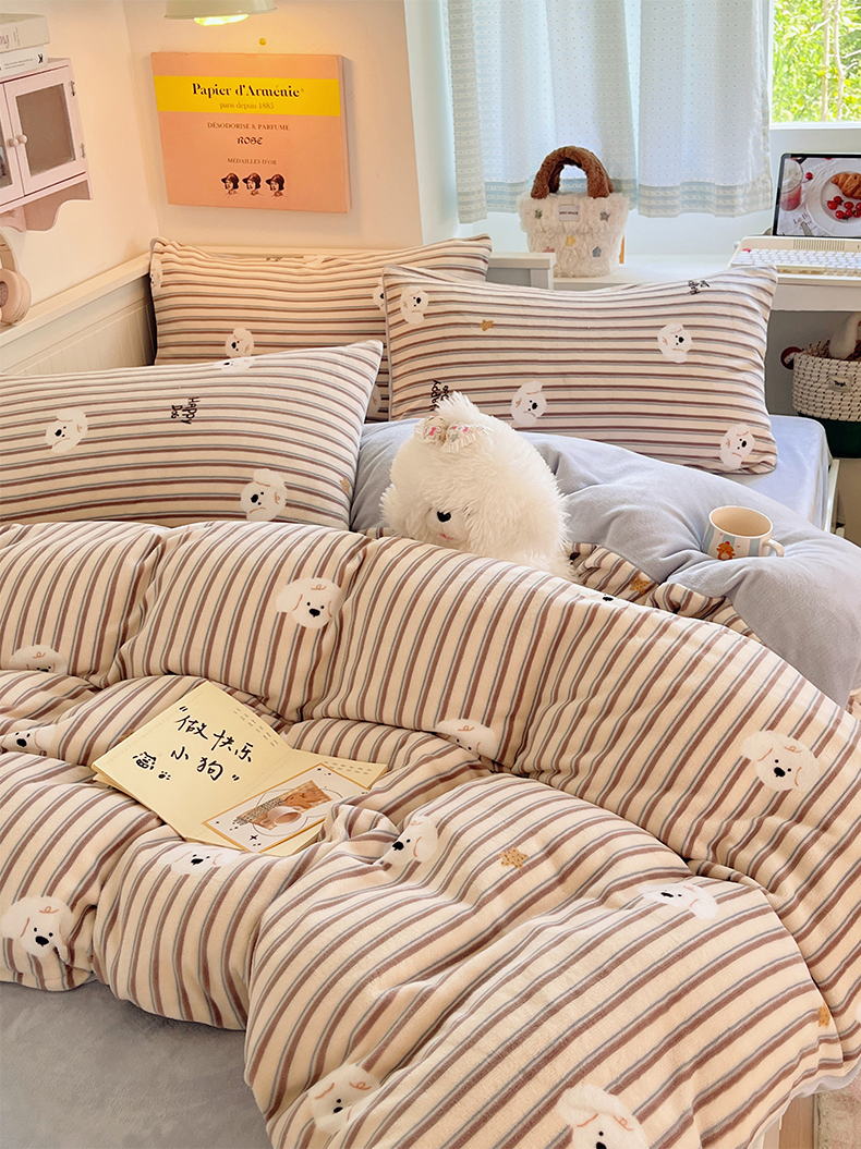 金爱家 2025新款A类ins小清新少女奶油卡通可爱加厚牛奶绒四件套 绒-彩条星星狗
