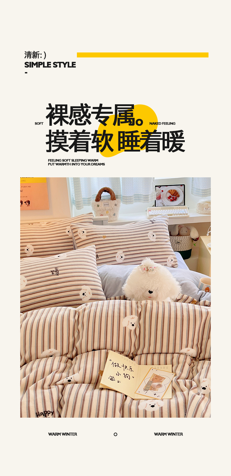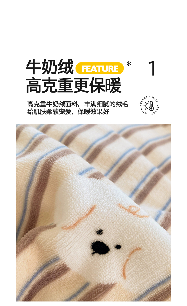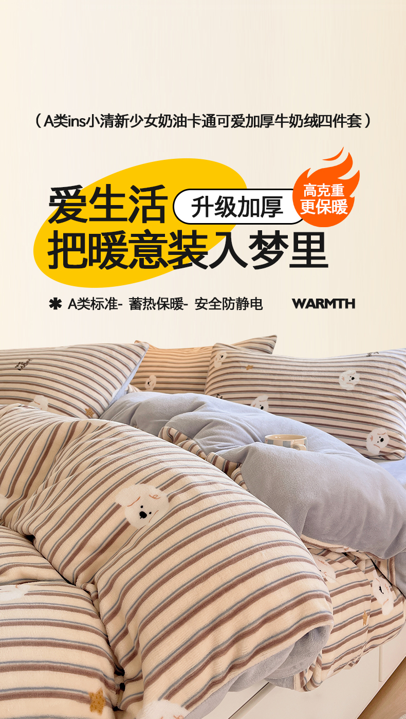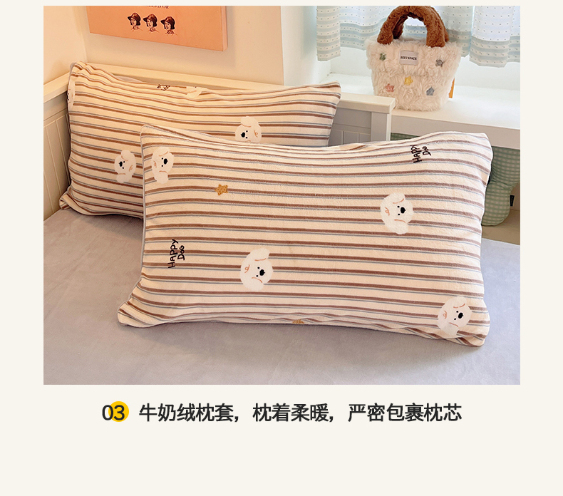 金爱家 2025新款A类ins小清新少女奶油卡通可爱加厚牛奶绒四件套 绒-彩条星星狗