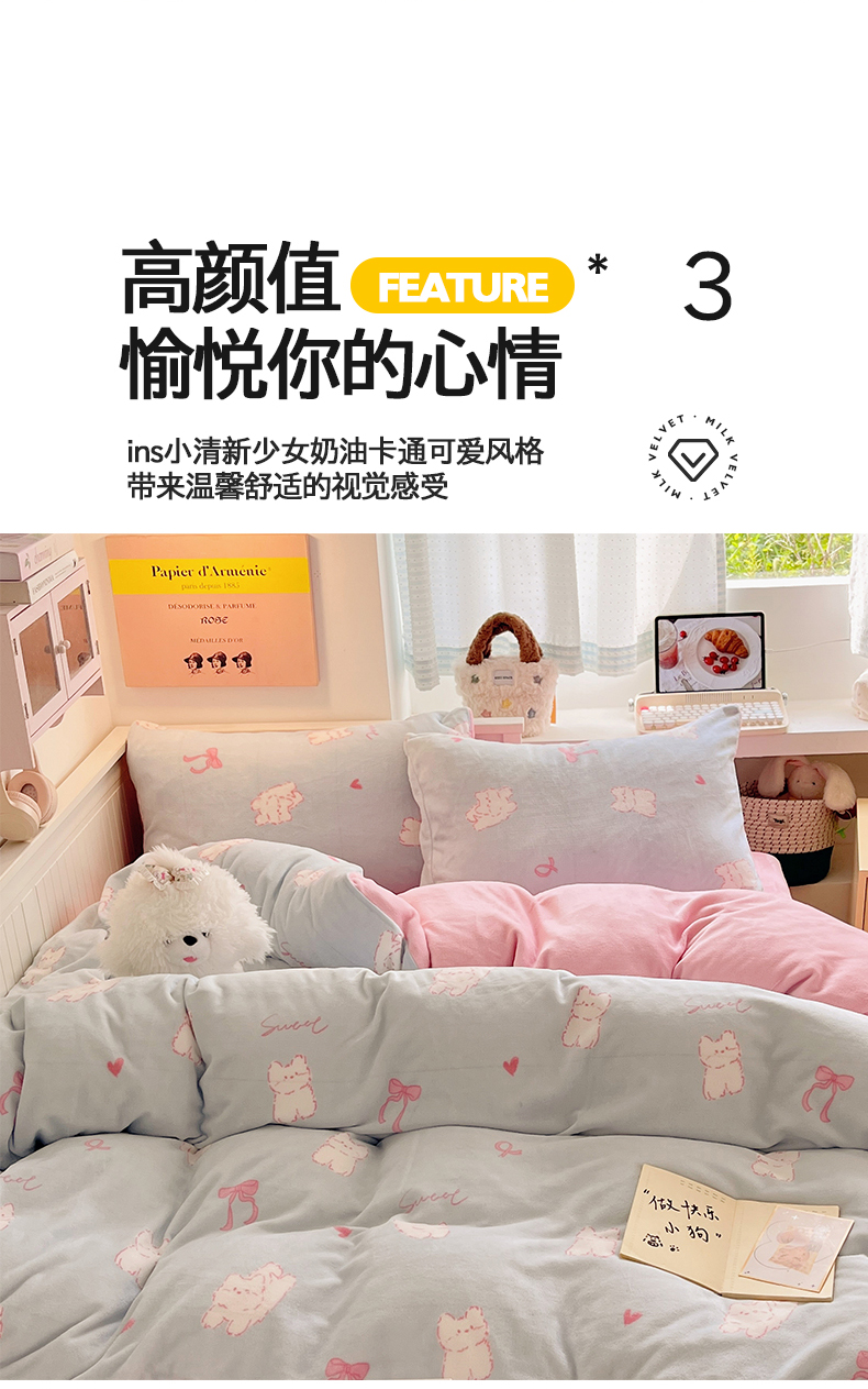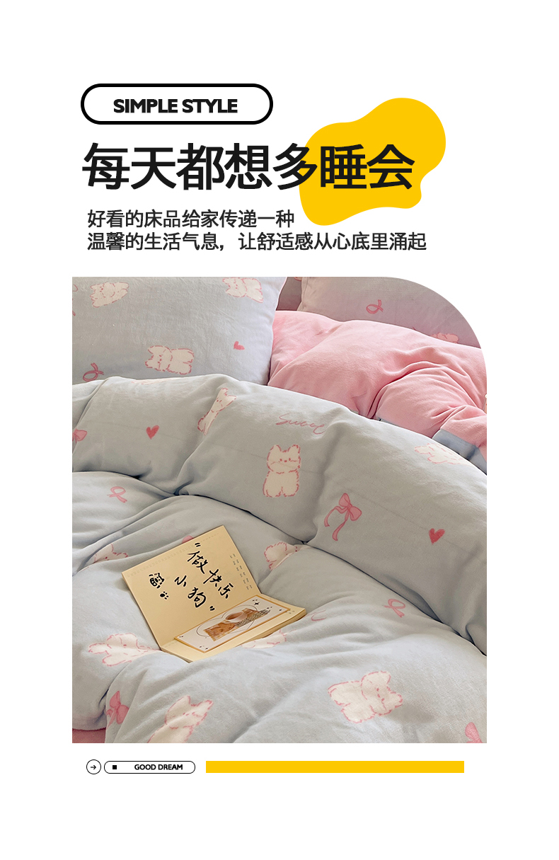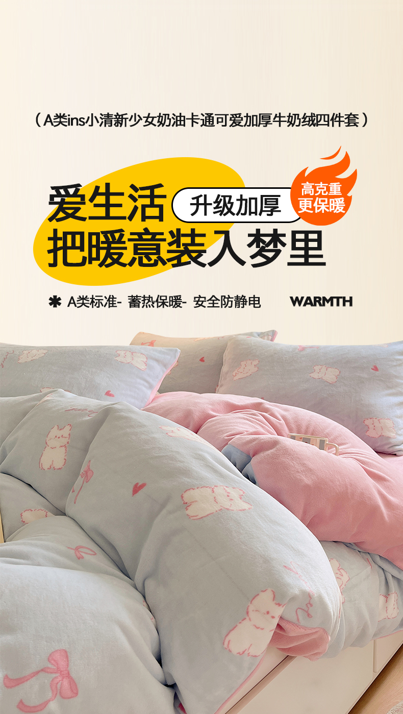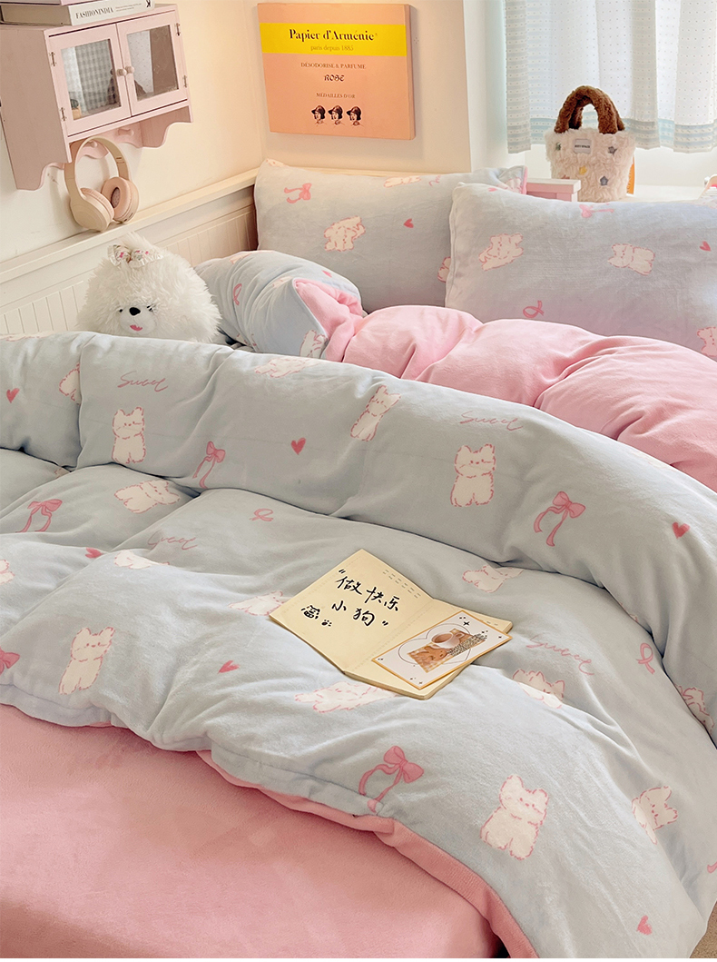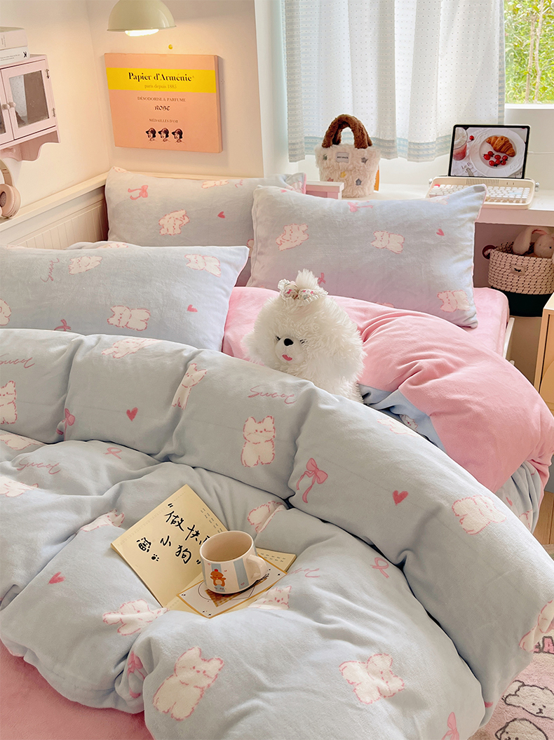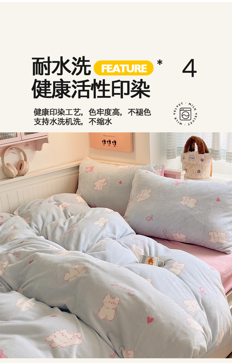 金爱家 2025新款A类ins小清新少女奶油卡通可爱加厚牛奶绒四件套 绒-蓝甜心猫咪