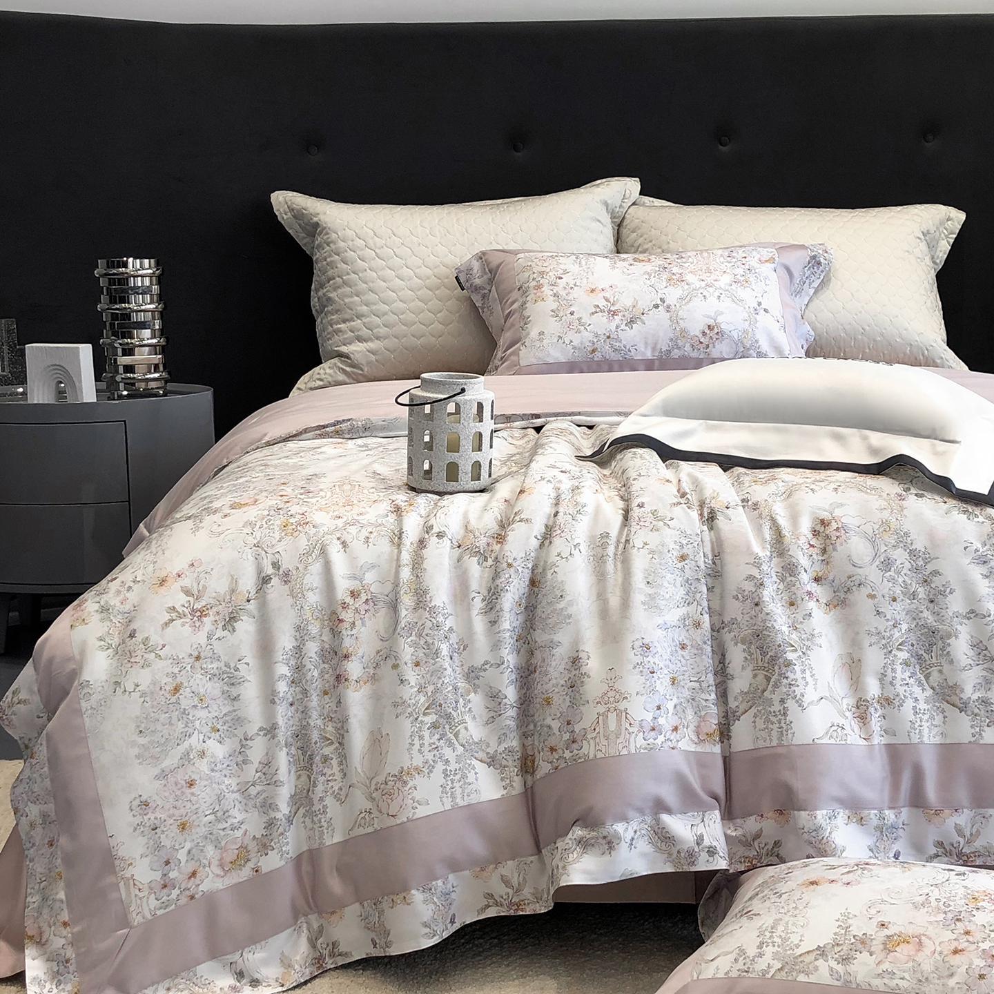 商品名称:佳汐蓝家纺 2025新款法式浪漫花卉超细旦天丝棉磨毛系列四件套-热淇淋 冬日花园