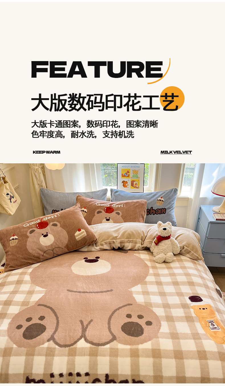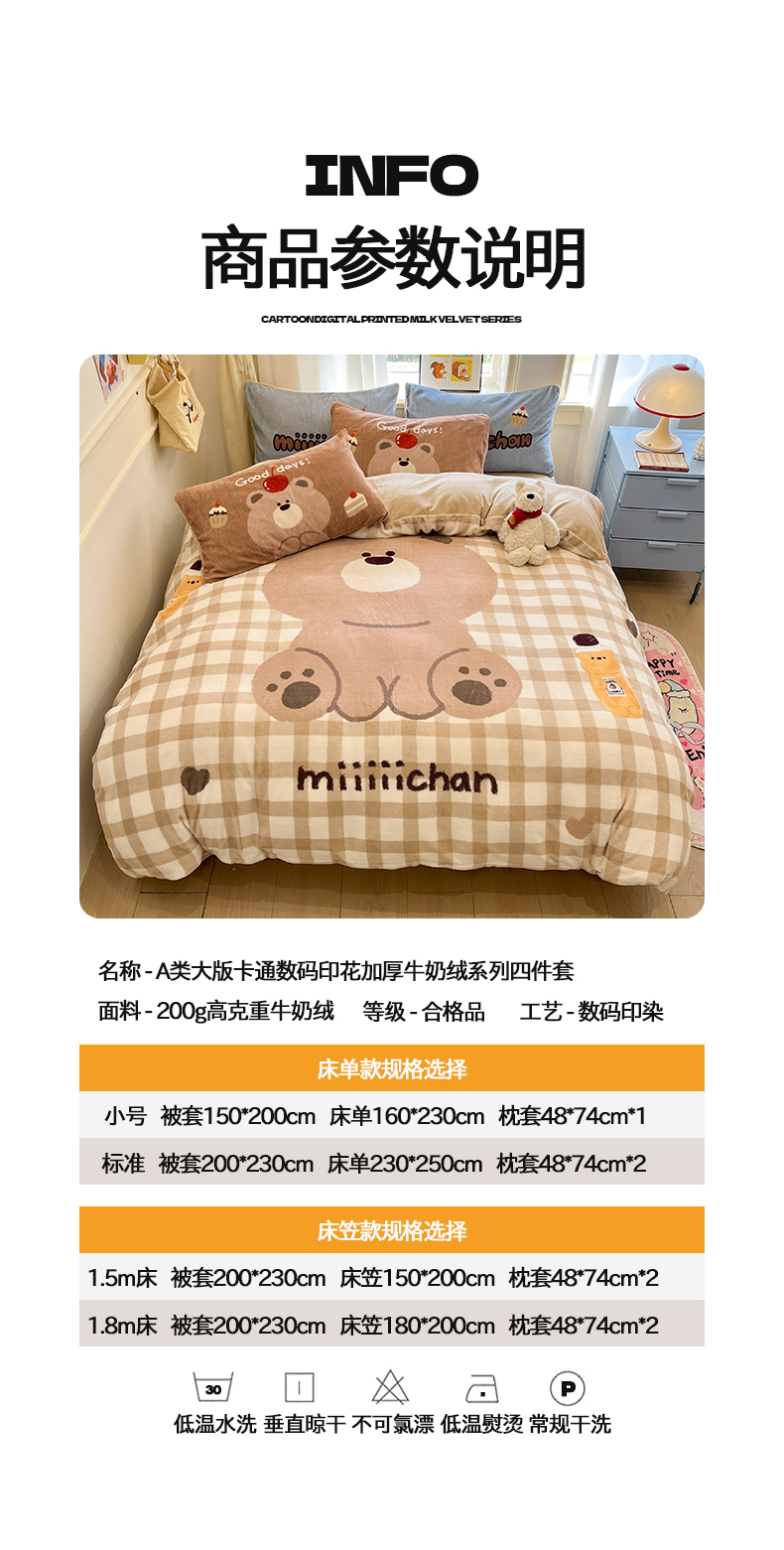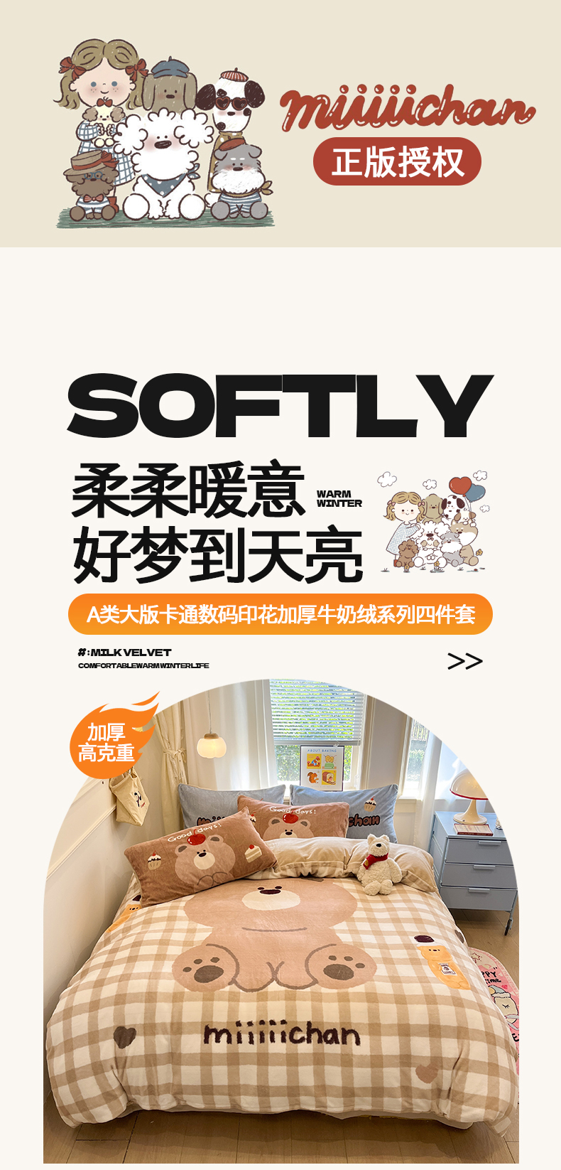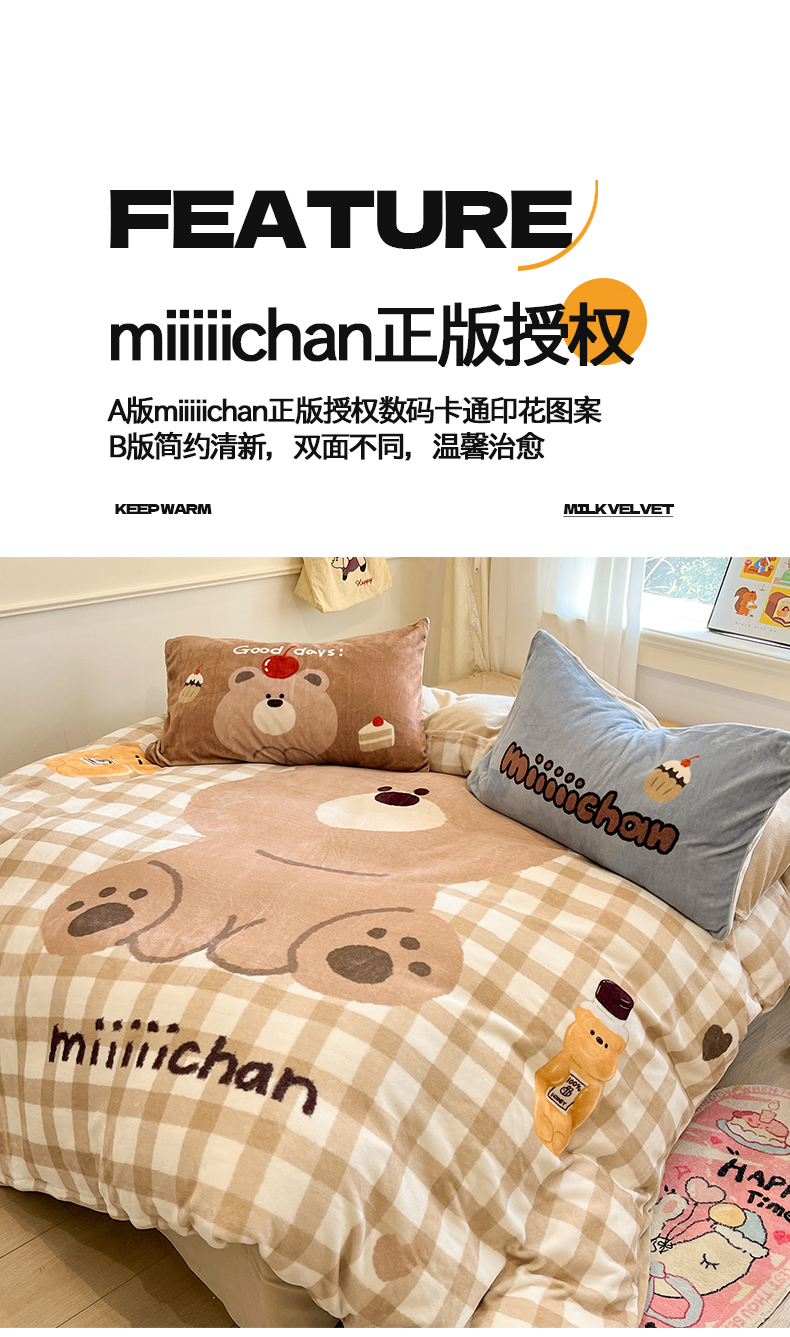 当前位置: 91家纺网 > 商品网购 > 床品套件 > 四件套 > 牛奶绒四件套 > 金爱家 2025新品A类正版授权miiiiichan咪酱大版卡通数码印花加厚牛奶绒系列四件套 绒大版-咪酱可乐小熊