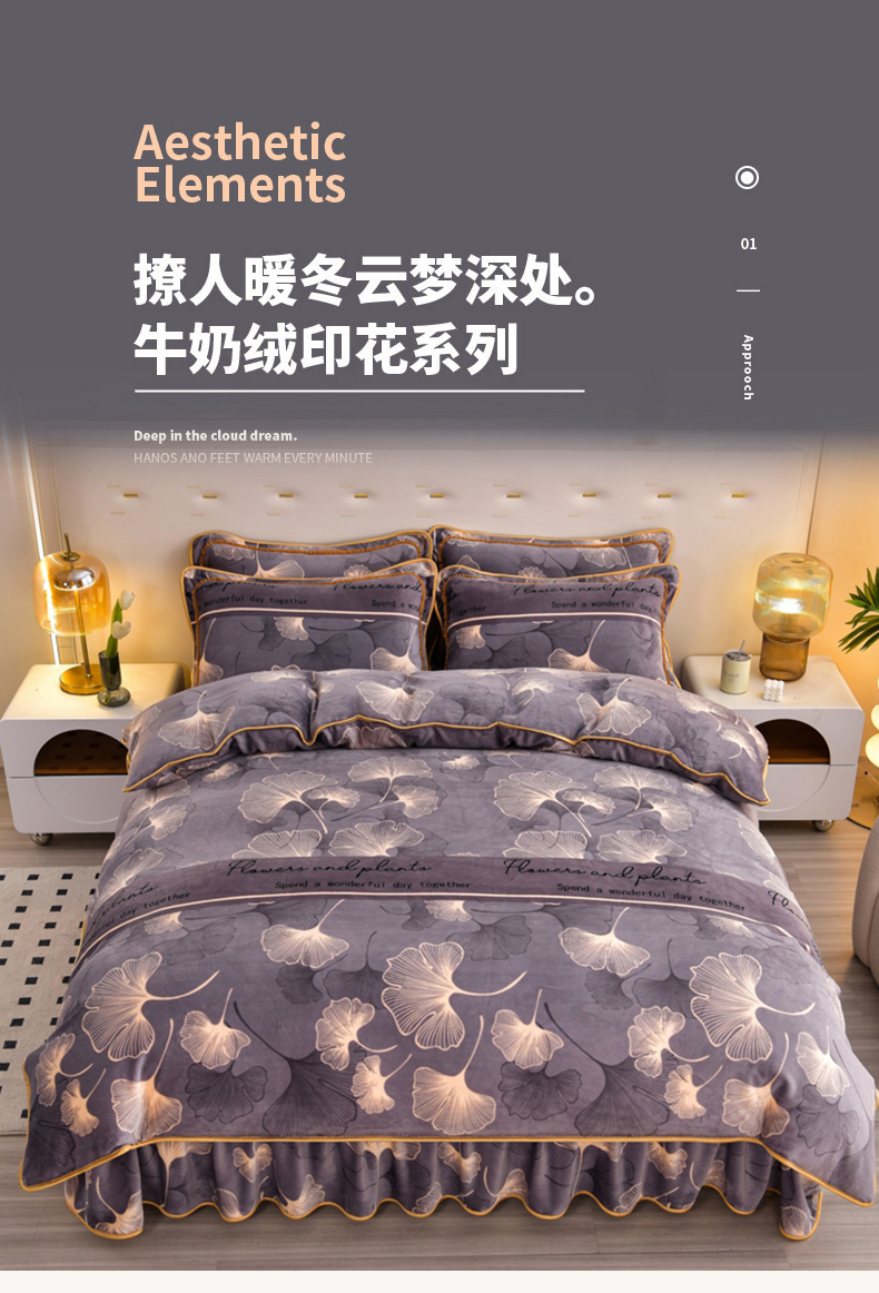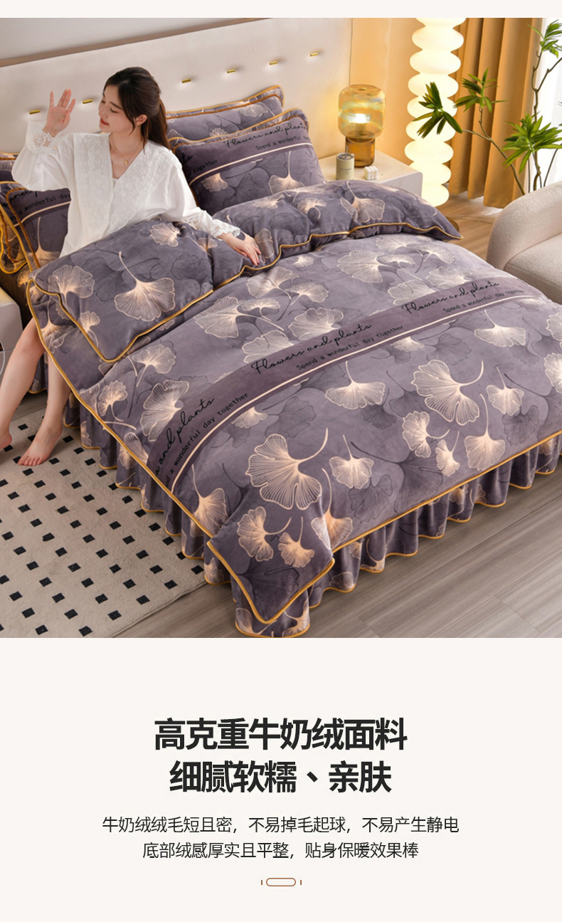当前位置: 91家纺网 > 商品网购 > 床品套件 > 四件套 > 牛奶绒四件套 > 芯诗曼2025新款8.5斤直播热款高克重牛奶绒法莱绒水晶金貂法莱绒四件套 叶语