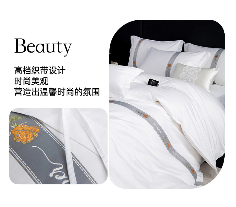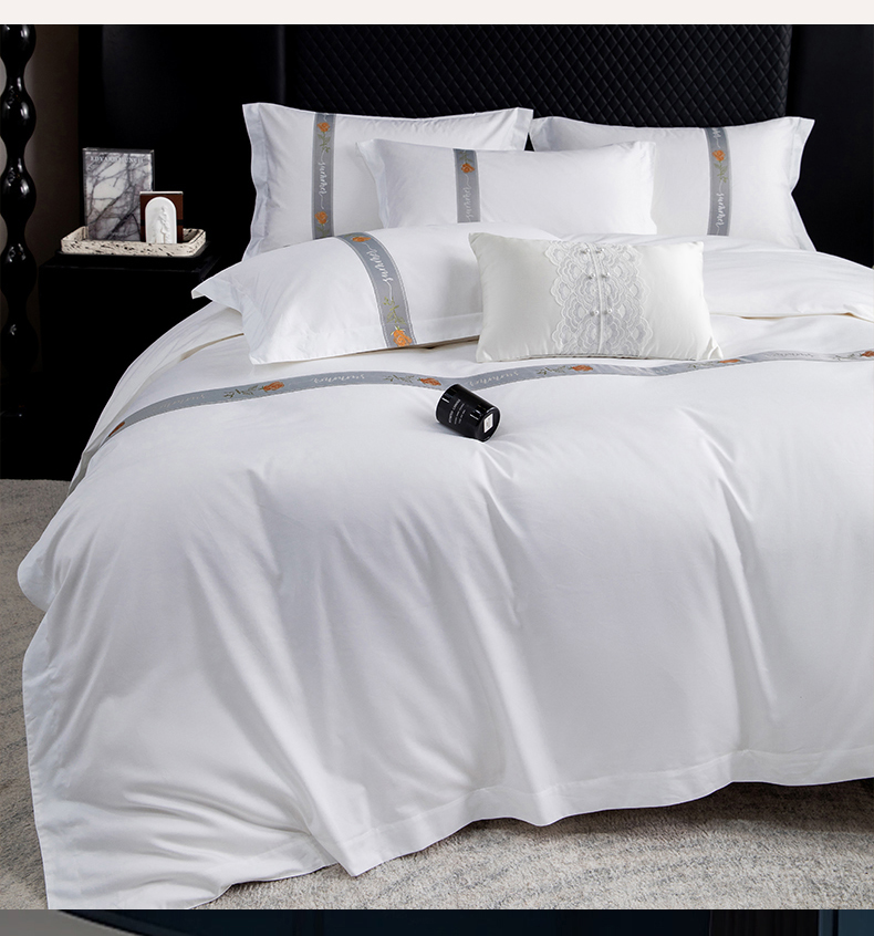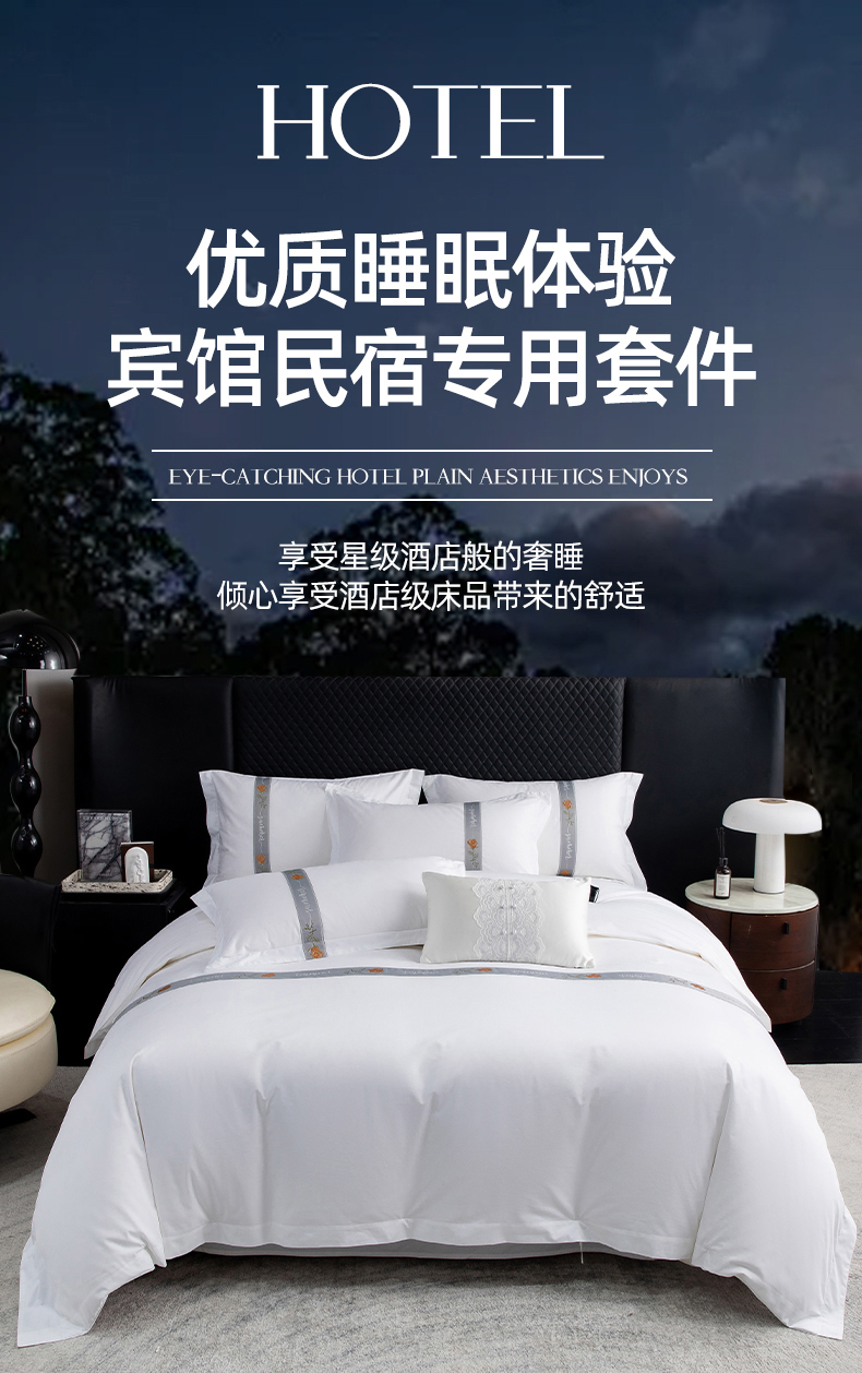 当前位置: 91家纺网 > 商品网购 > 床品套件 > 四件套 > 其它四件套 > 锦兴酒店布草 2025新款高支高密民宿酒店织带款四件套 浅青
