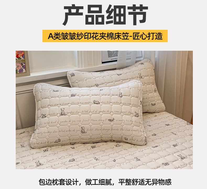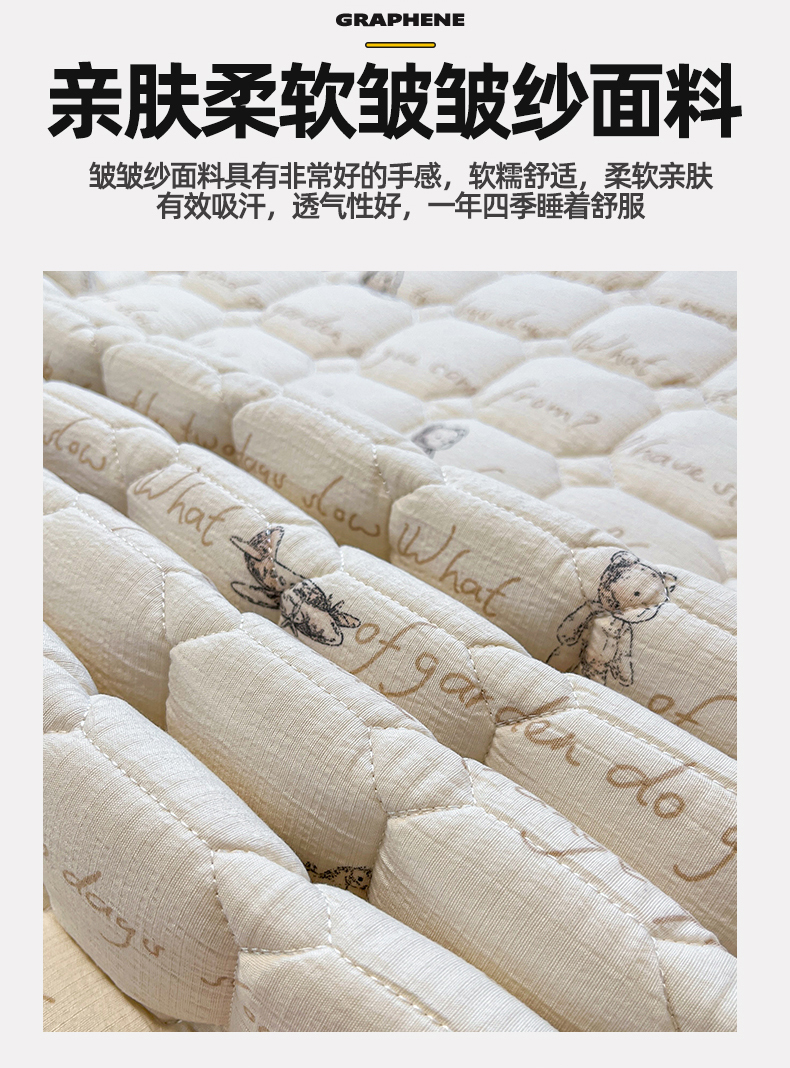 商品名称:布卢姆床垫 2025新款A类皱皱纱印花夹棉床笠 极简主义