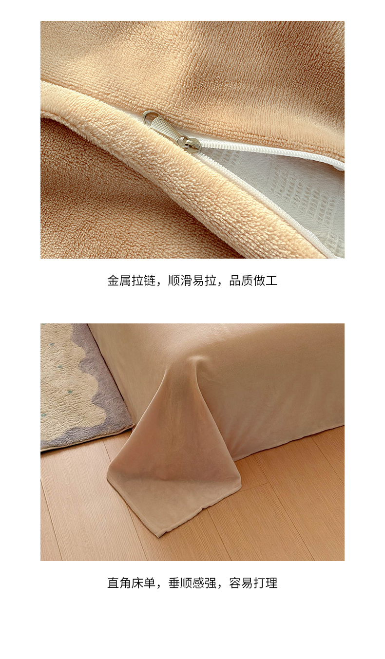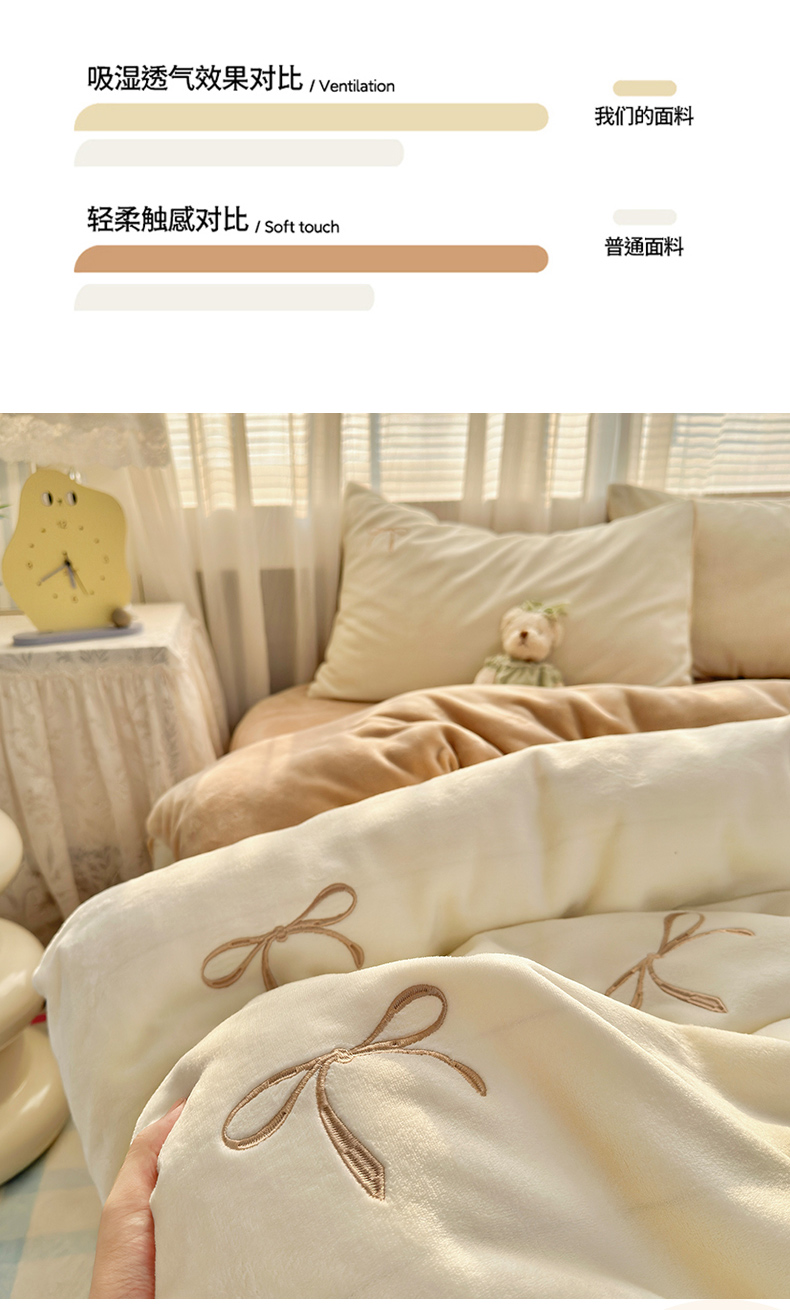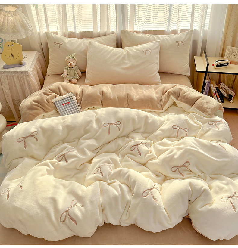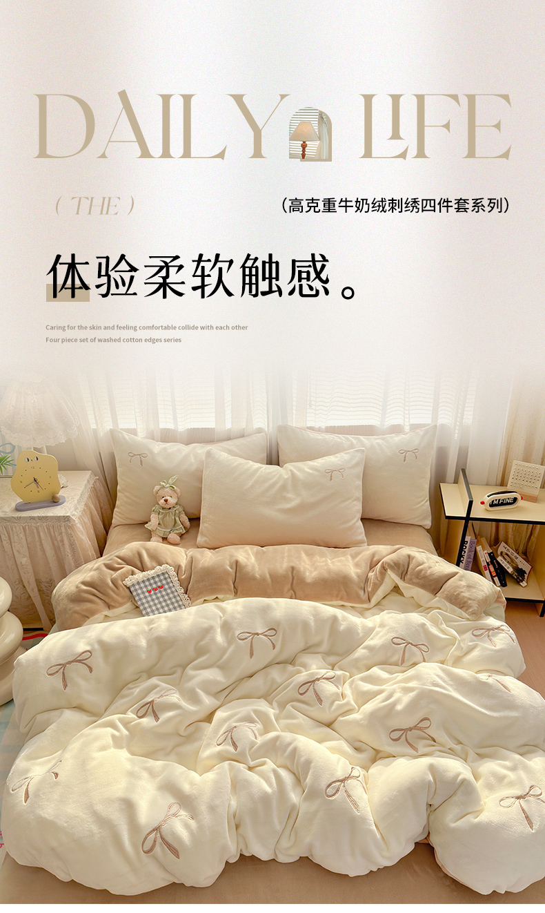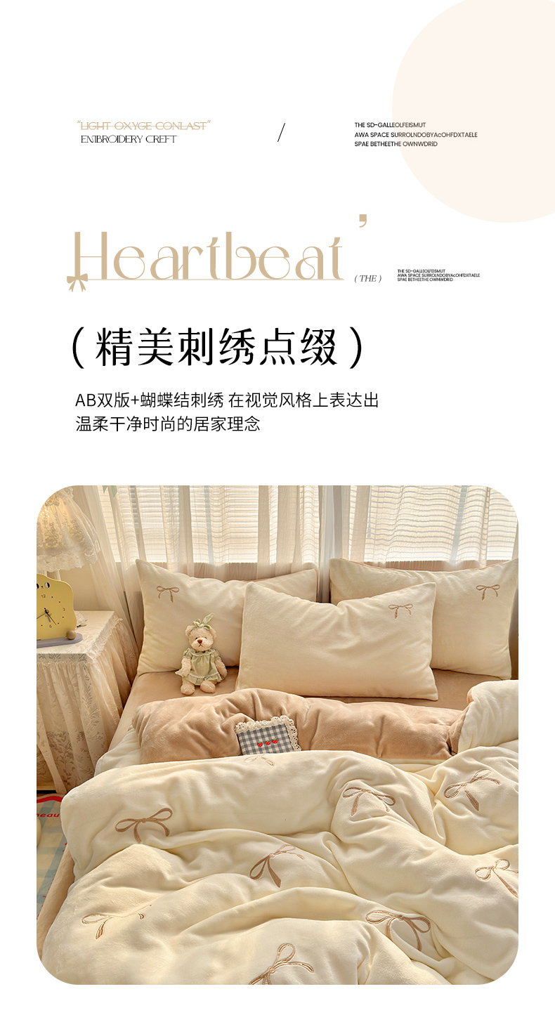商品名称:娜娜 2025新款高克重牛奶绒同心结系列四件套 同心结奶昔白+咖
