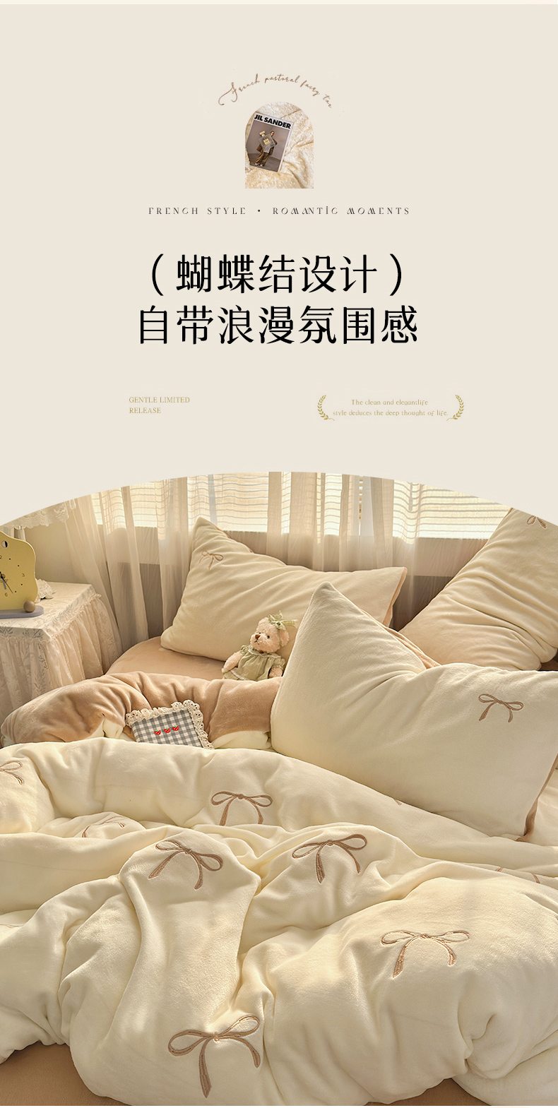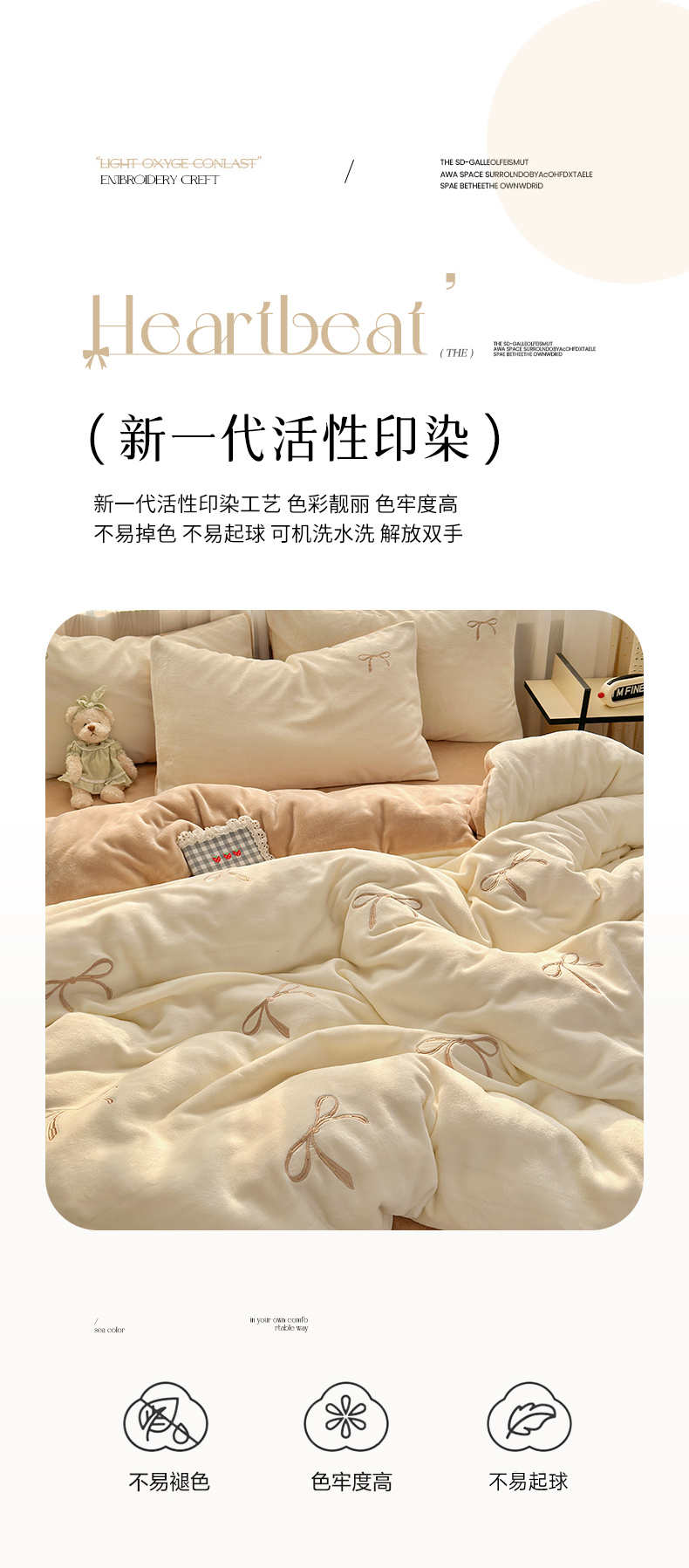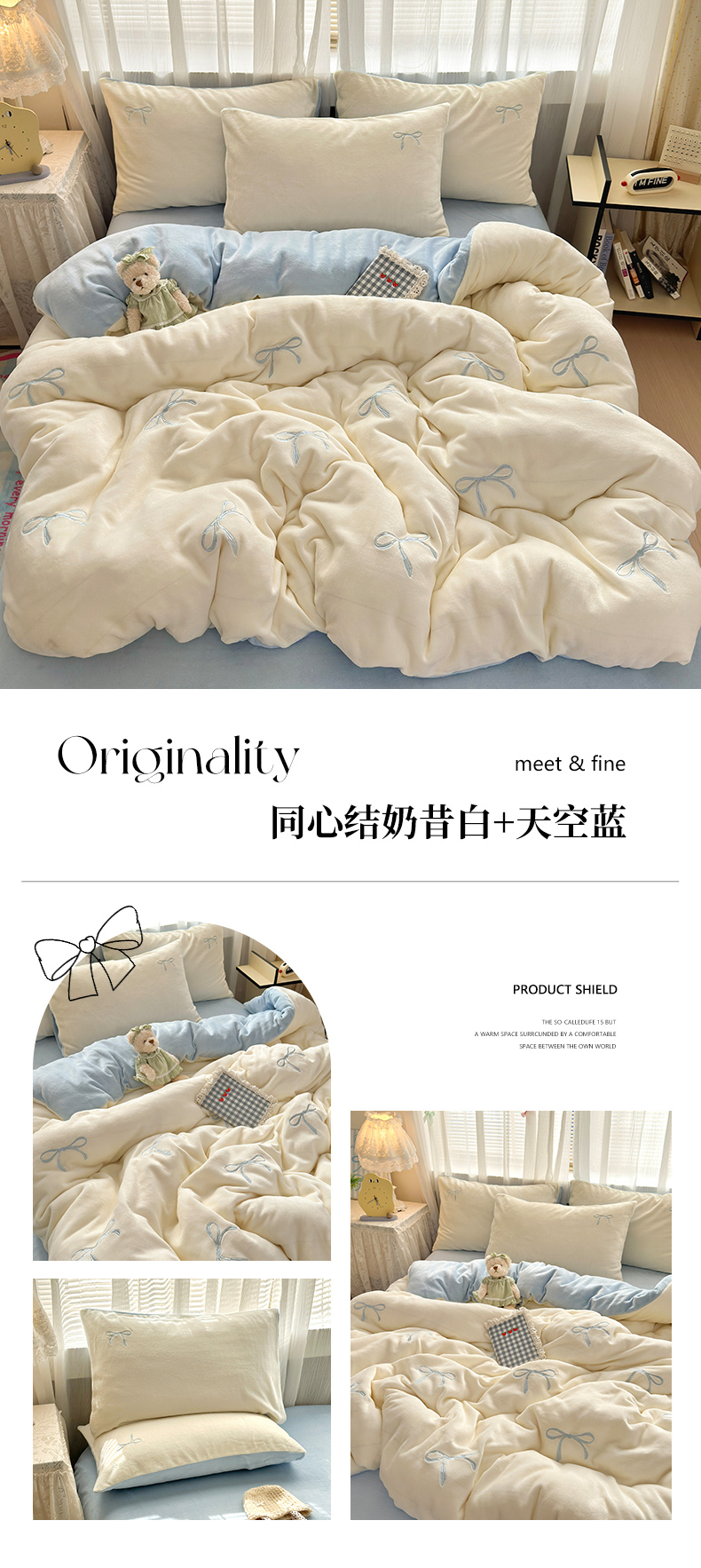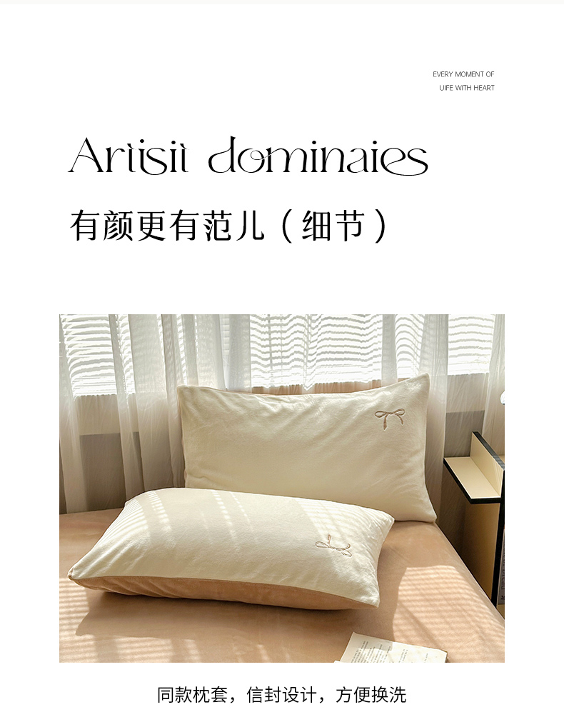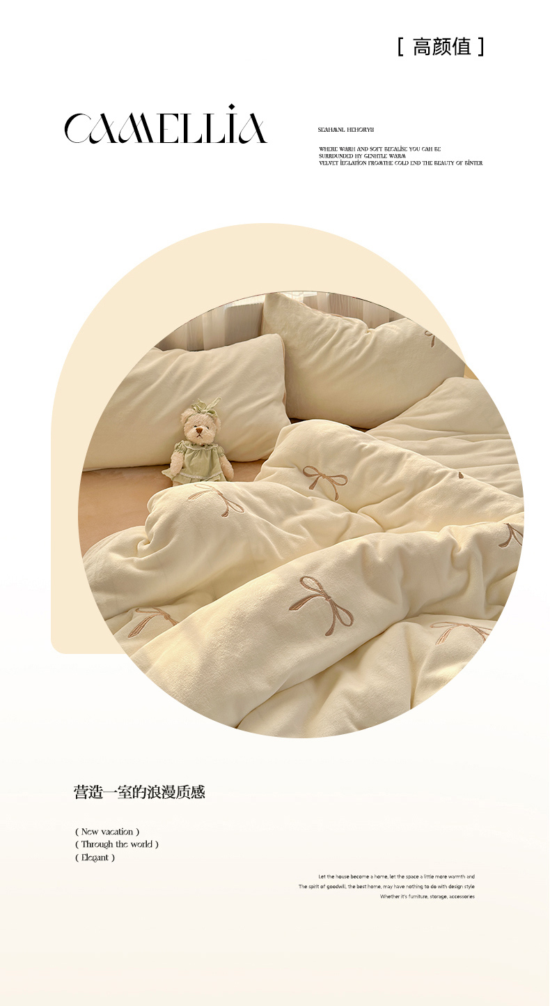 商品名称:娜娜 2025新款高克重牛奶绒同心结系列四件套 同心结奶昔白+咖