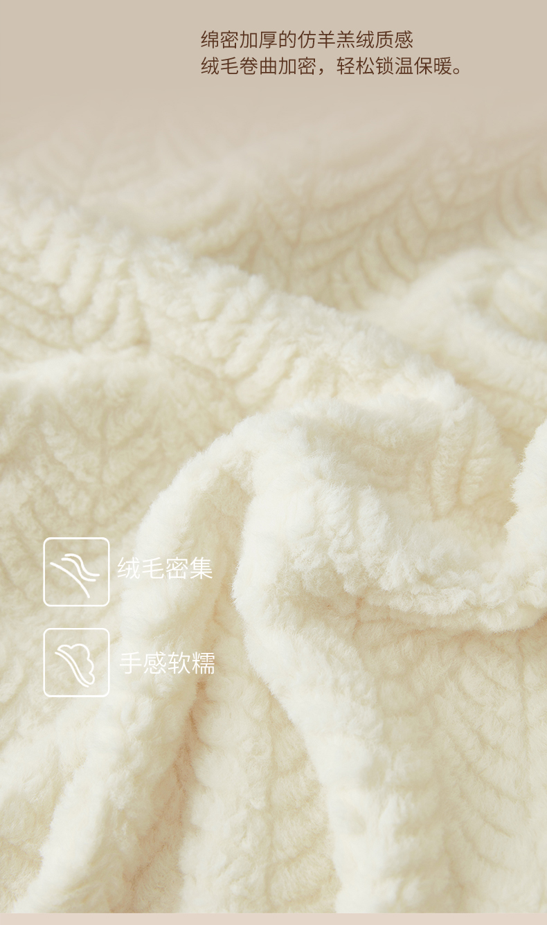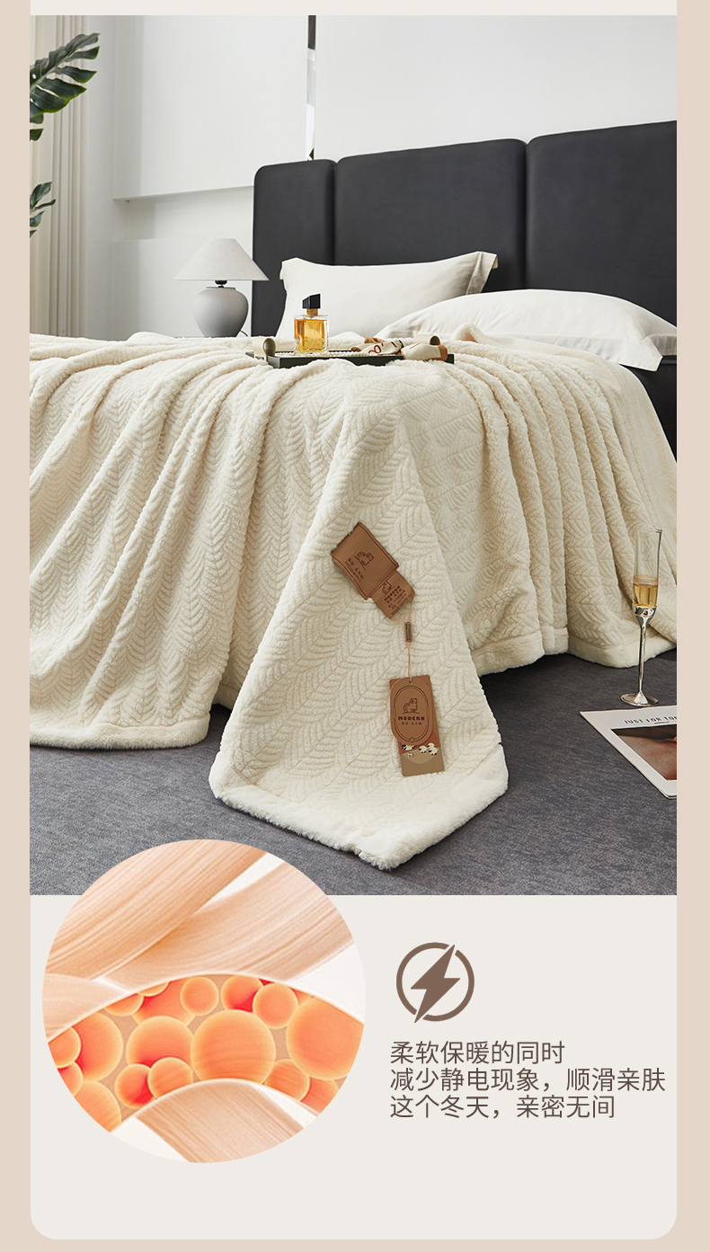 凯轩毛毯网销专供 2025新款仿羔羊绒毯毛毯婚庆毯保暖毯子 米白