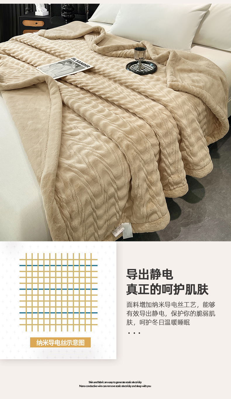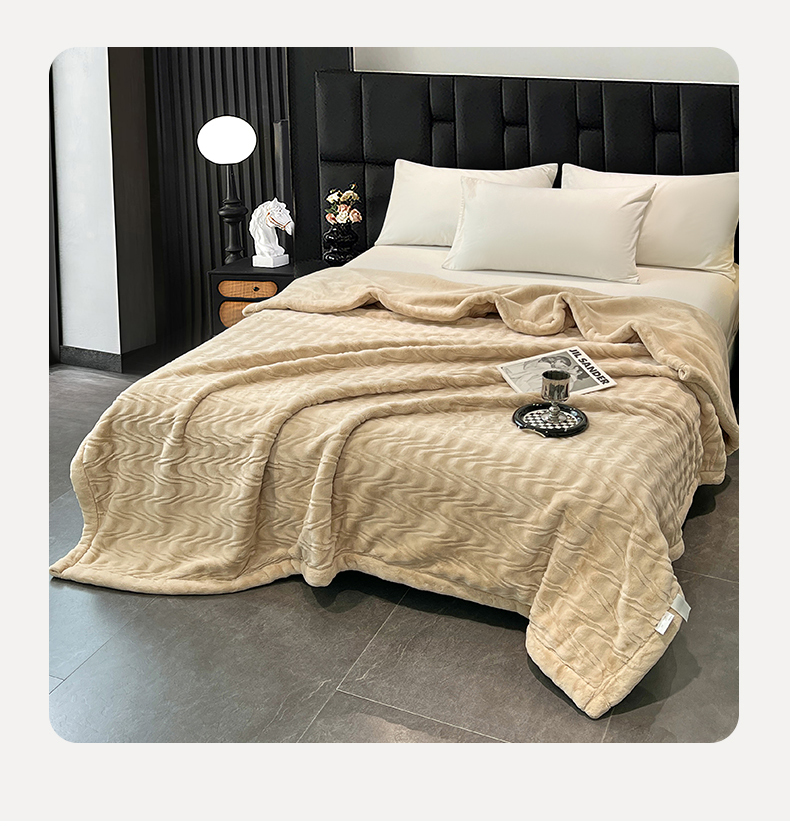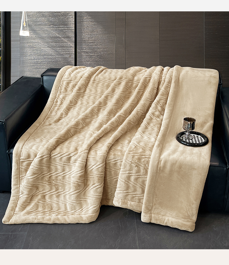 凯轩毛毯网销专供 2025新款水波纹精品婚庆云毯毛毯 水波纹-燕麦色