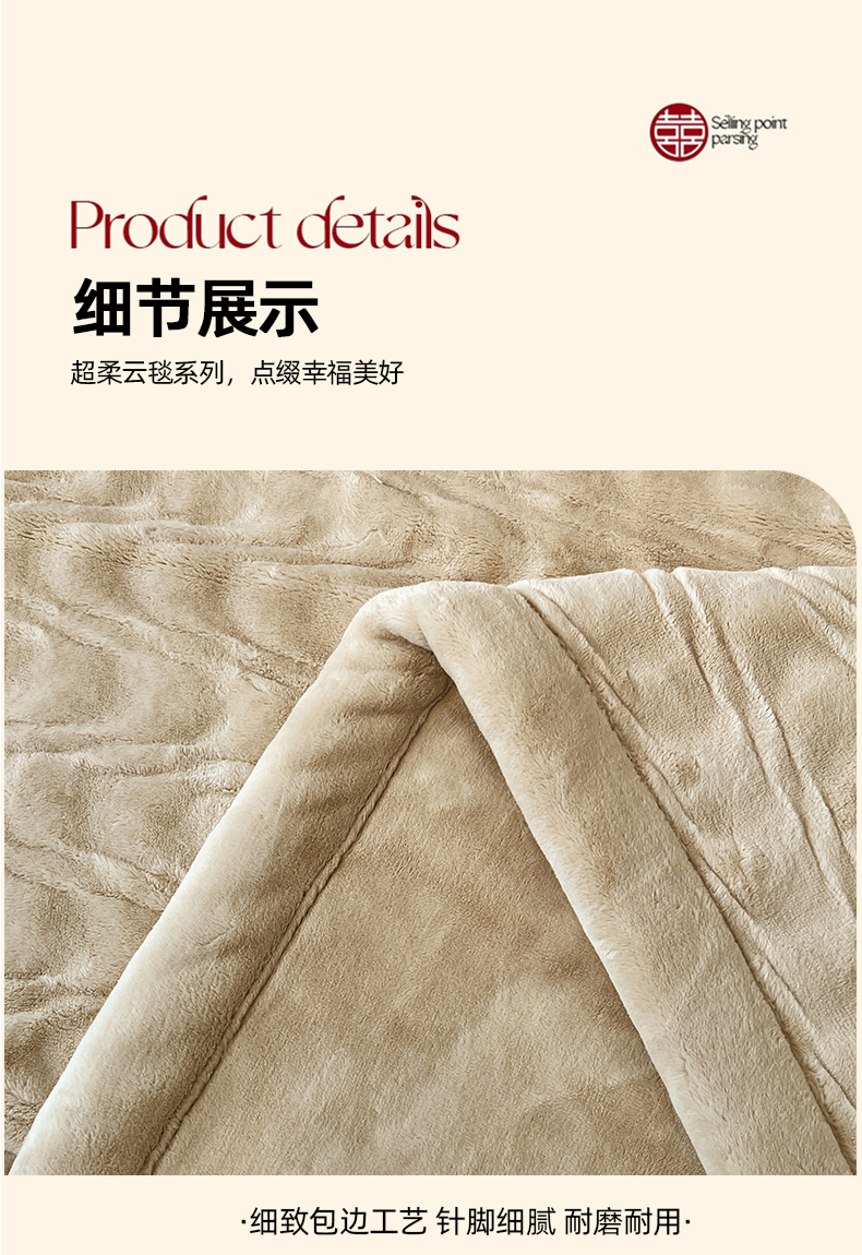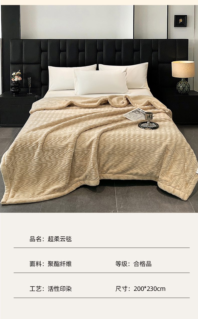 商品名称:凯轩毛毯网销专供 2025新款水波纹精品婚庆云毯毛毯 水波纹-燕麦色