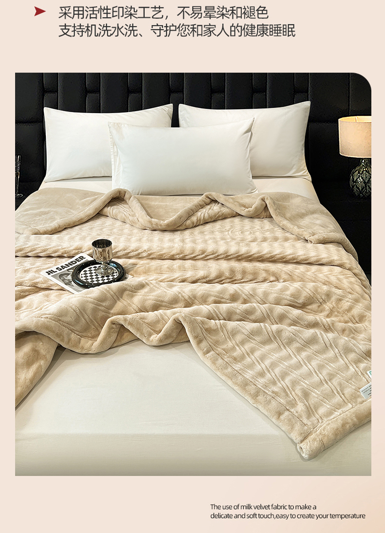 (总)凯轩毛毯网销专供 2026新款仿刺绣双层加厚压花云毯,豆沙红,绛紫色,孔雀绿,奶油咖,珊瑚粉,深灰色