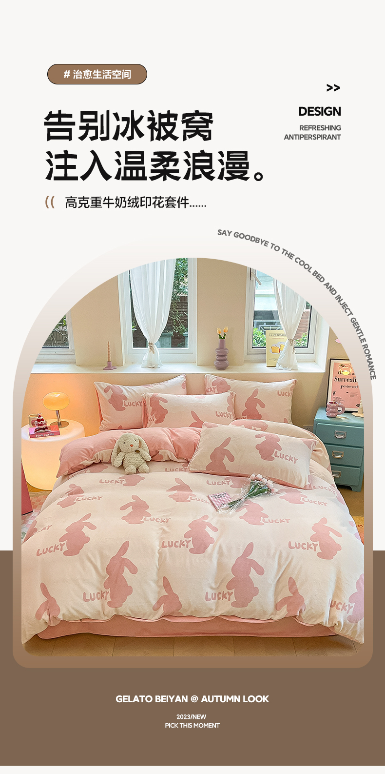 商品名称:雅居纺家纺 2025新款高克重牛奶绒印花单被套 幸运兔