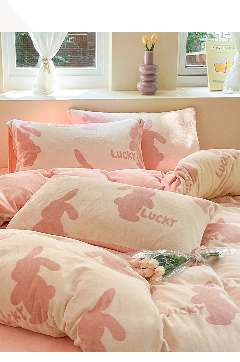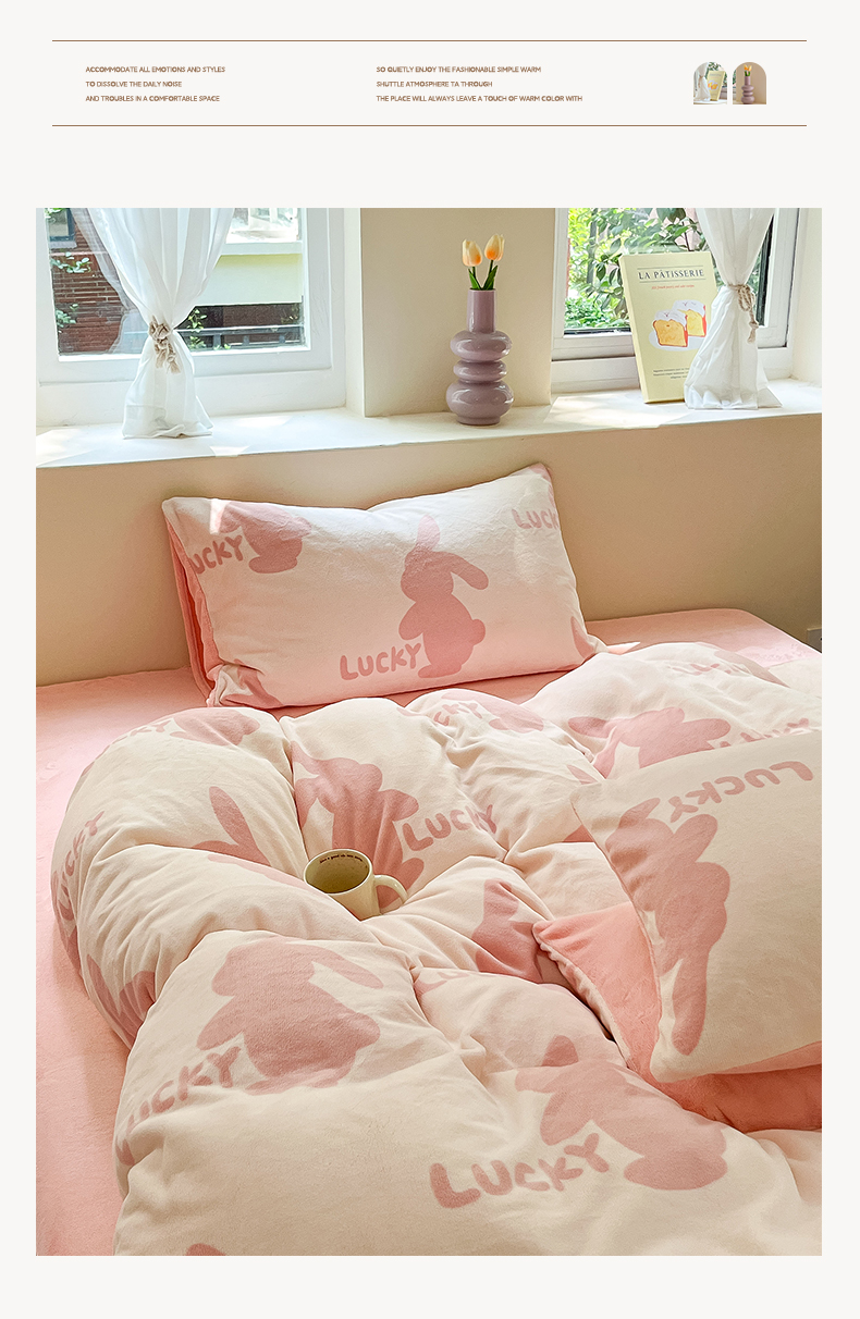 雅居纺家纺 2025新款高克重牛奶绒印花单被套 幸运兔