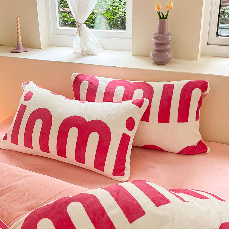 雅居纺家纺 2025新款高克重牛奶绒印花单枕套 粉粉桃