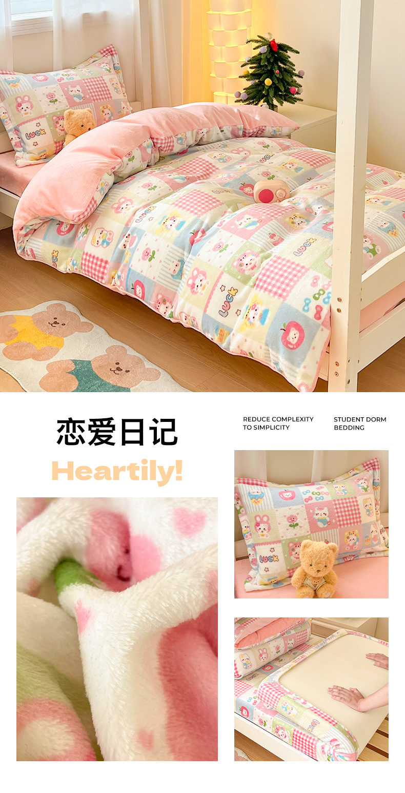 当前位置: 91家纺网 > 商品网购 > 床品套件 > 三件套 > 寻米 2025新款高克重加厚保暖牛奶绒学生宿舍单床笠单件床笠 草莓布丁
