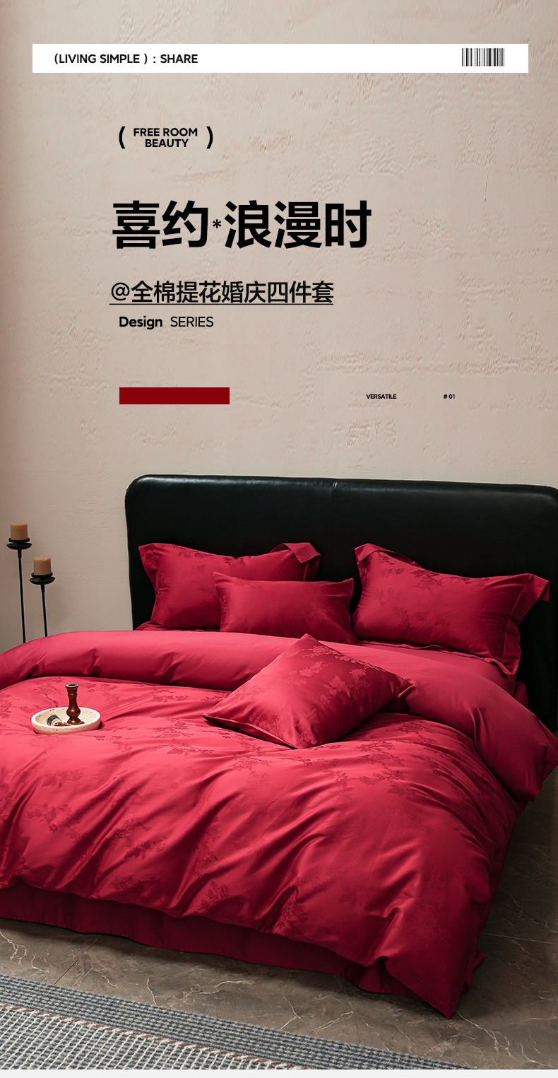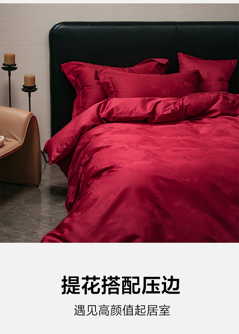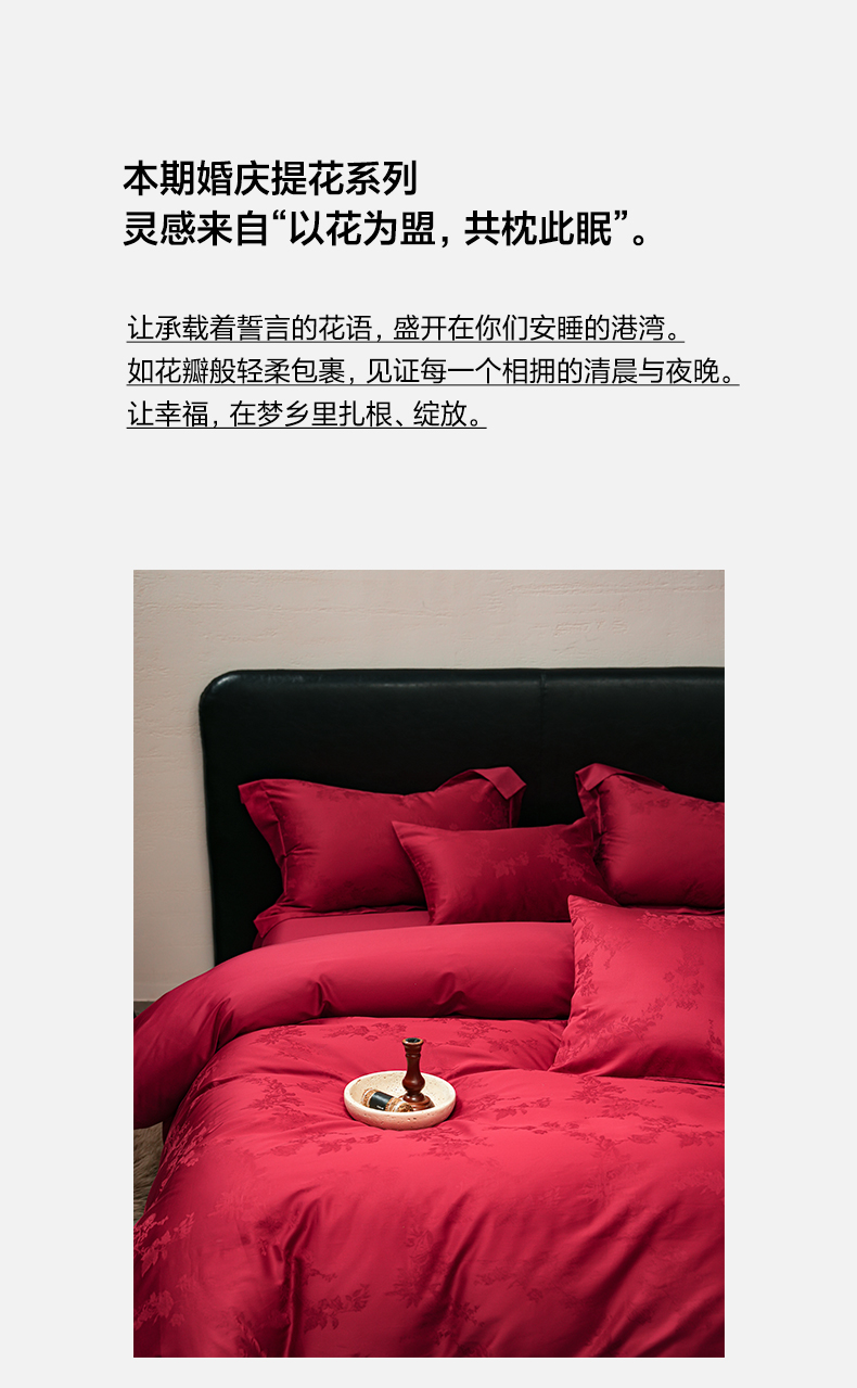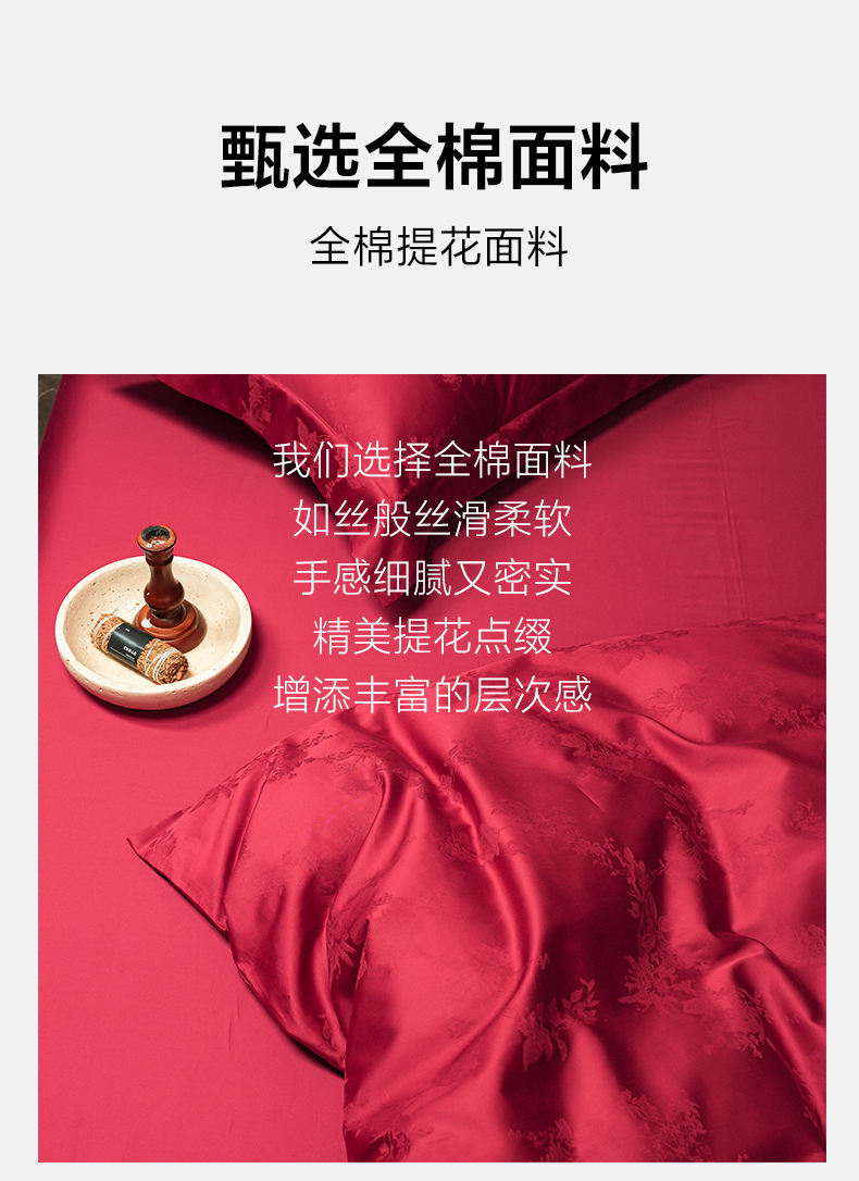 当前位置: 91家纺网 > 商品网购 > 床品套件 > 四件套 > 贡缎全棉四件套 > (总)三味舒屋 2025新款全棉纯棉50S贡锻提花婚庆套件四件套-喜结连理