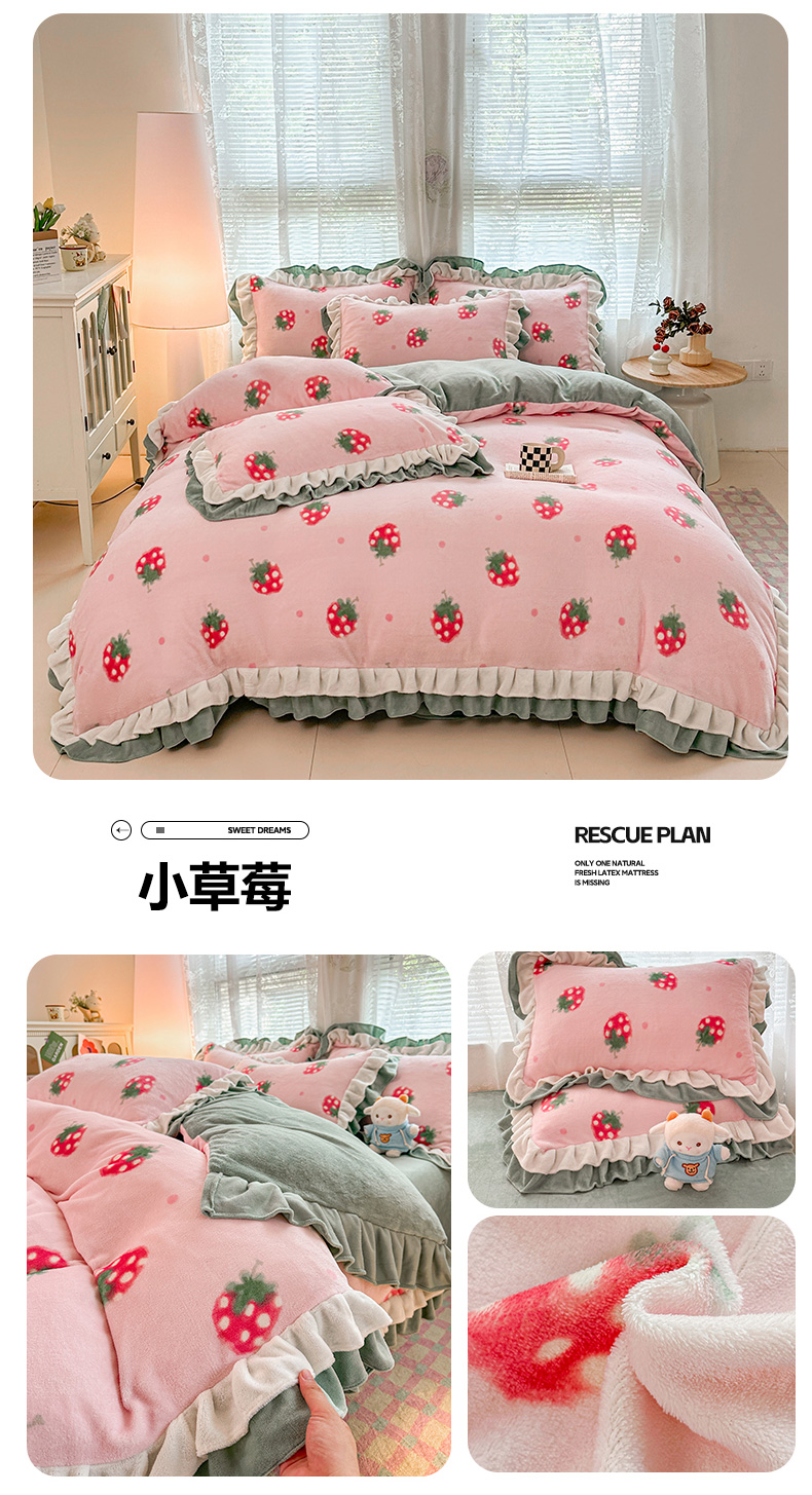 当前位置: 91家纺网 > 商品网购 > 床品套件 > 四件套 > 牛奶绒四件套 > 安哆啦家纺 2025新款小清新双层花边款高克重牛奶绒四件套 美味樱桃