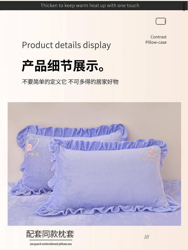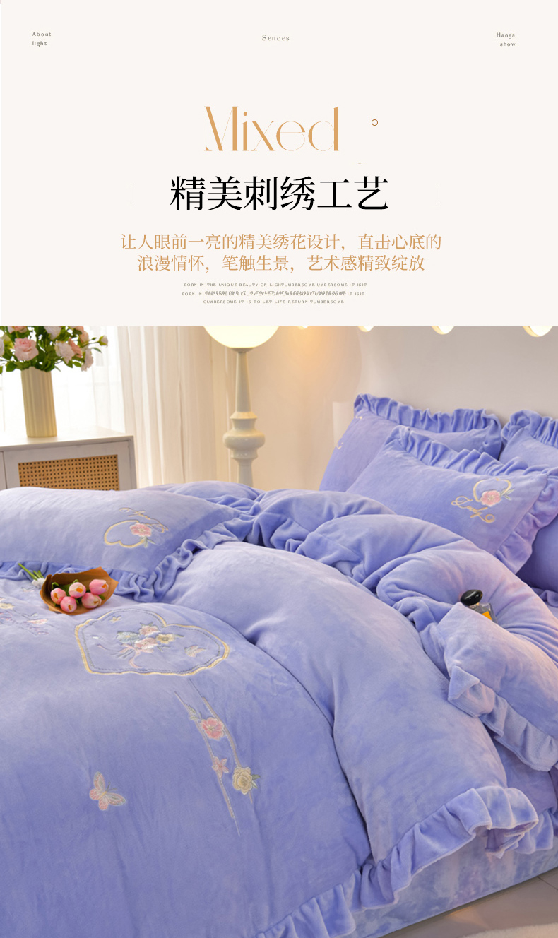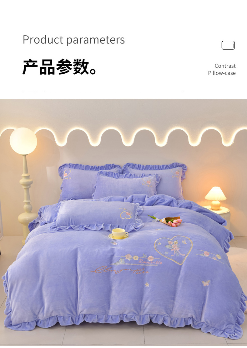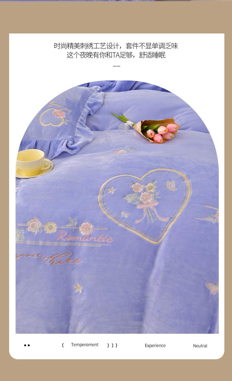畅畅家纺 2025新款亲肤舒适冬季刺绣花边保暖牛奶绒四件套-爱心之旅 爱心之旅-淡蓝
