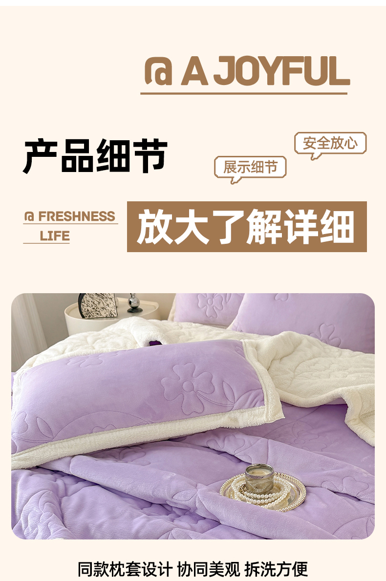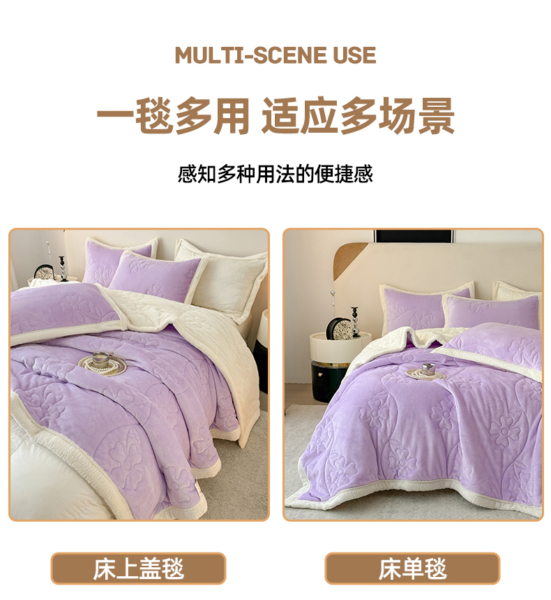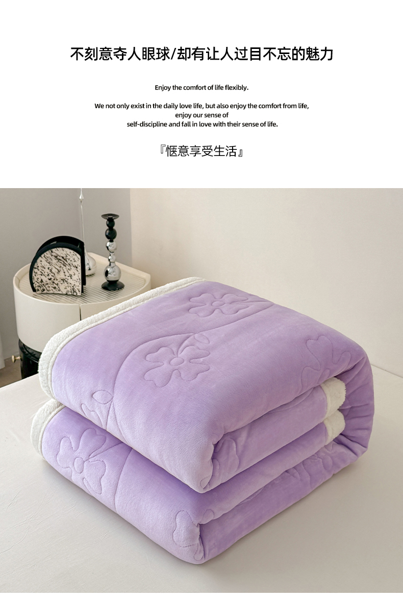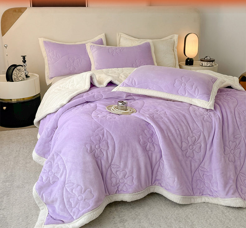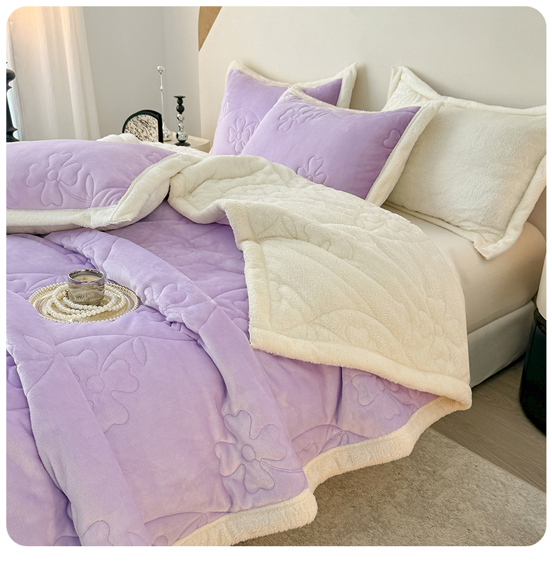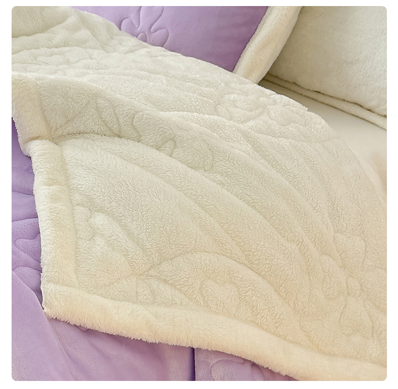 商品名称:青竹苑 2025新款A类婴儿绒北极绒羽丝棉三层夹棉盖毯多功能盖毯 芋紫