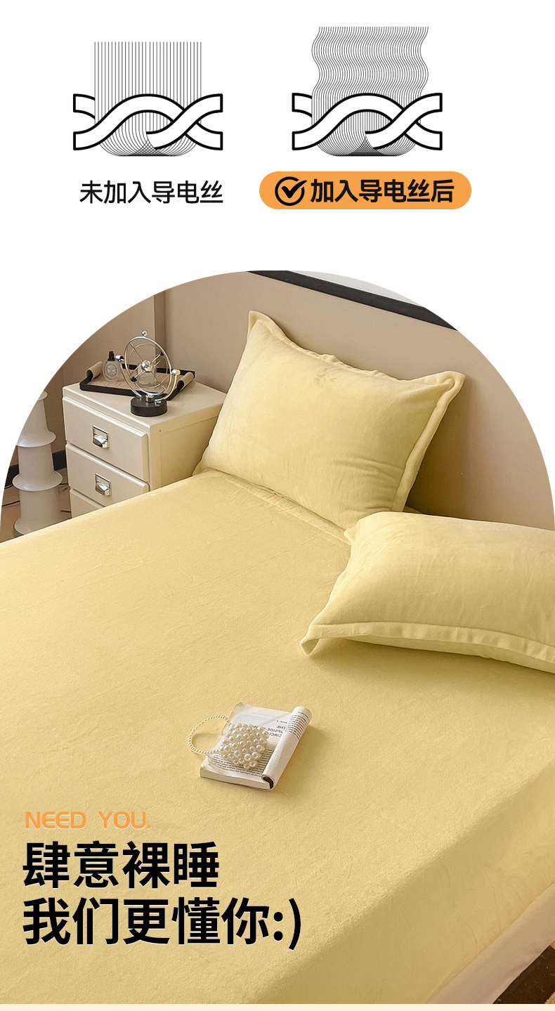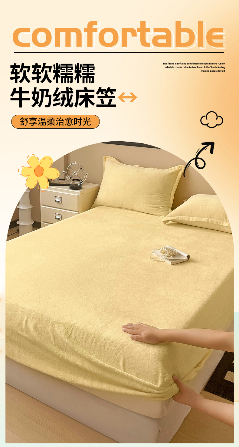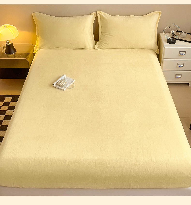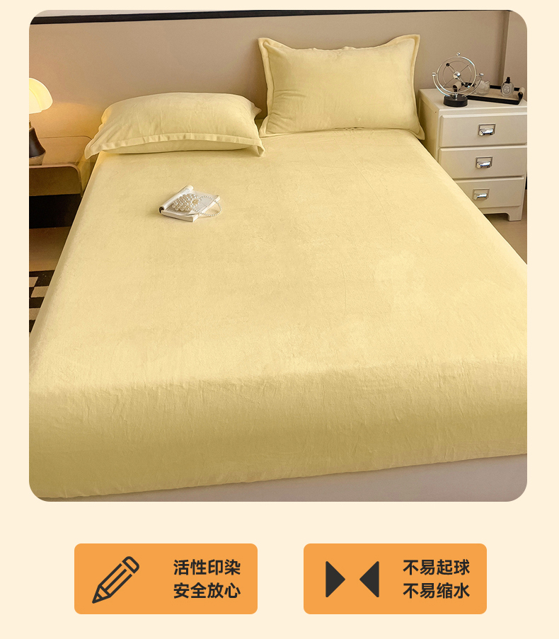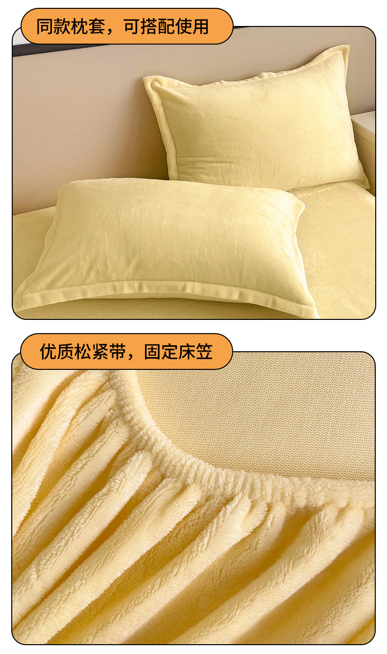 • 91家纺网 家纺一手货源 找家纺 名兮家居 2025新款高克重加厚纯色牛奶绒床笠床单 素色-米月黄