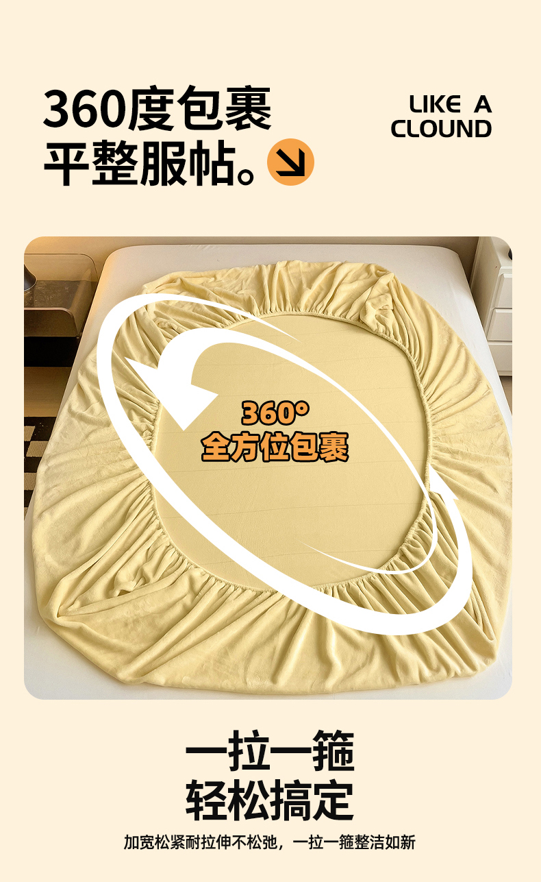 名兮家居 2025新款高克重加厚纯色牛奶绒床笠床单 素色-米月黄