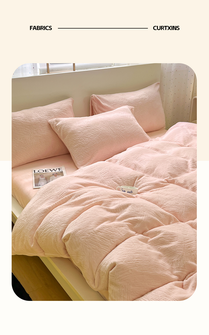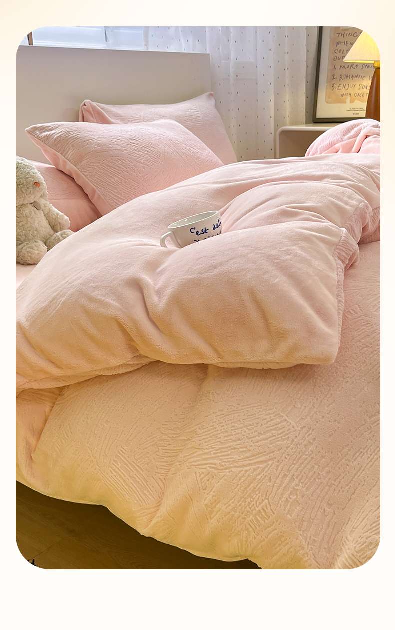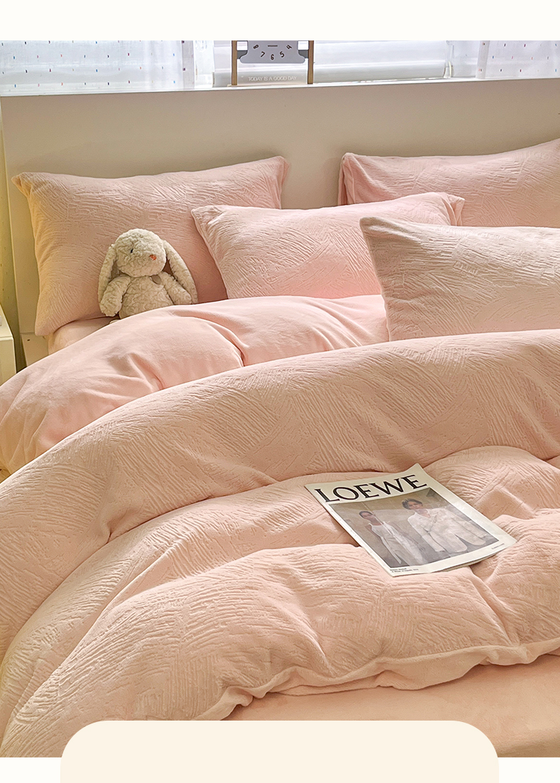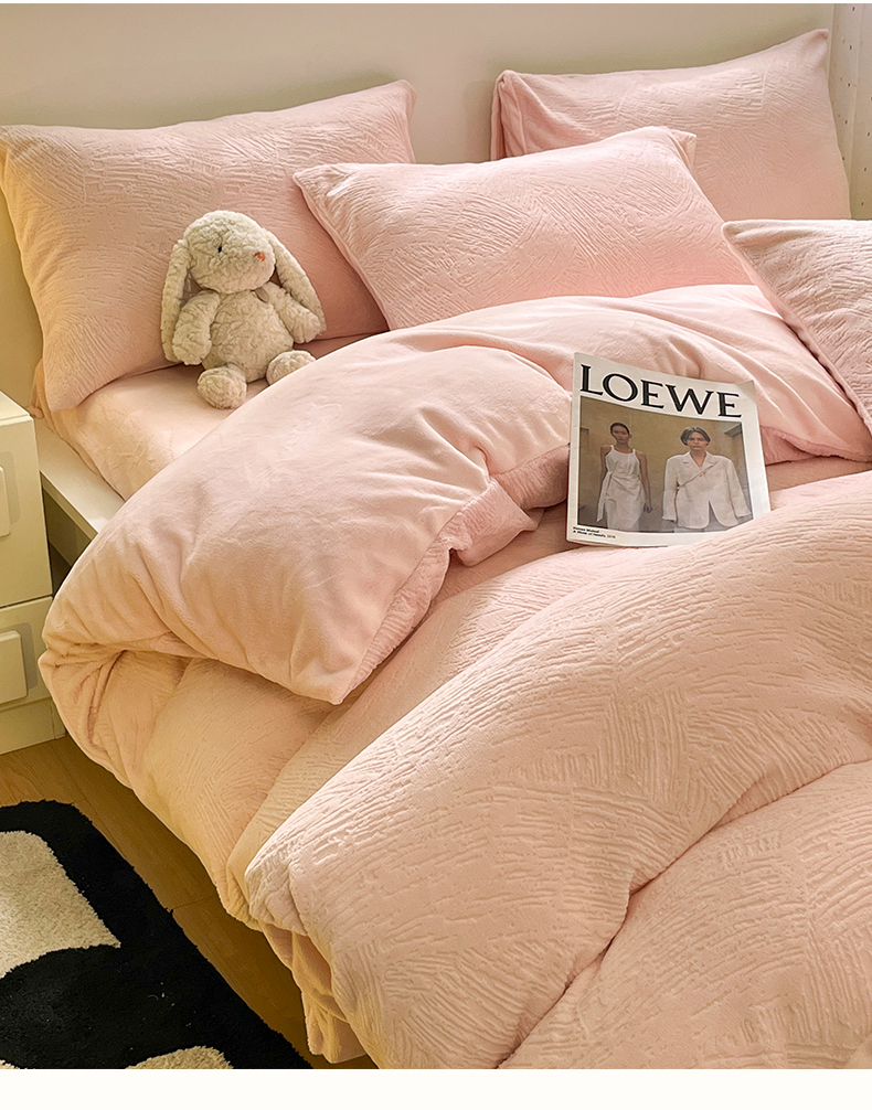 如一 2025新款3D雕花牛奶绒四件套第三批 肌理纹-粉