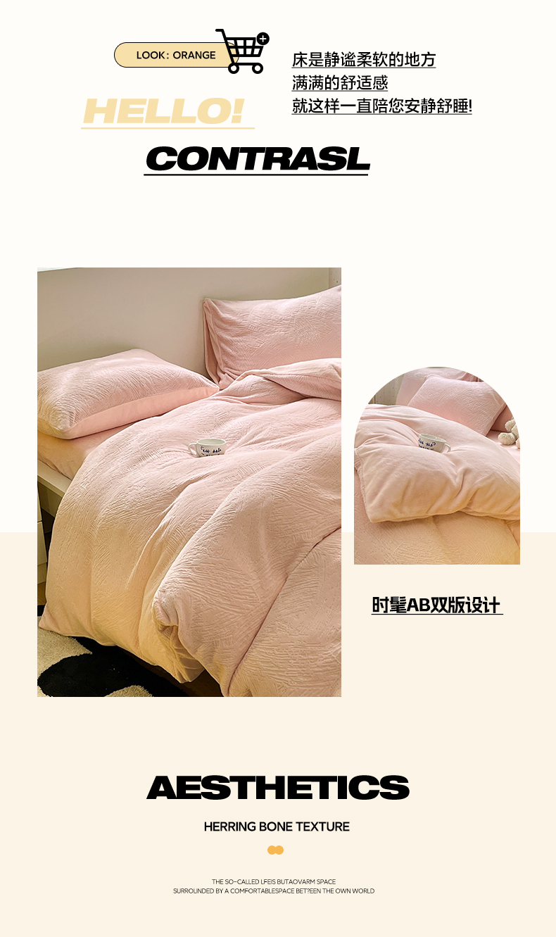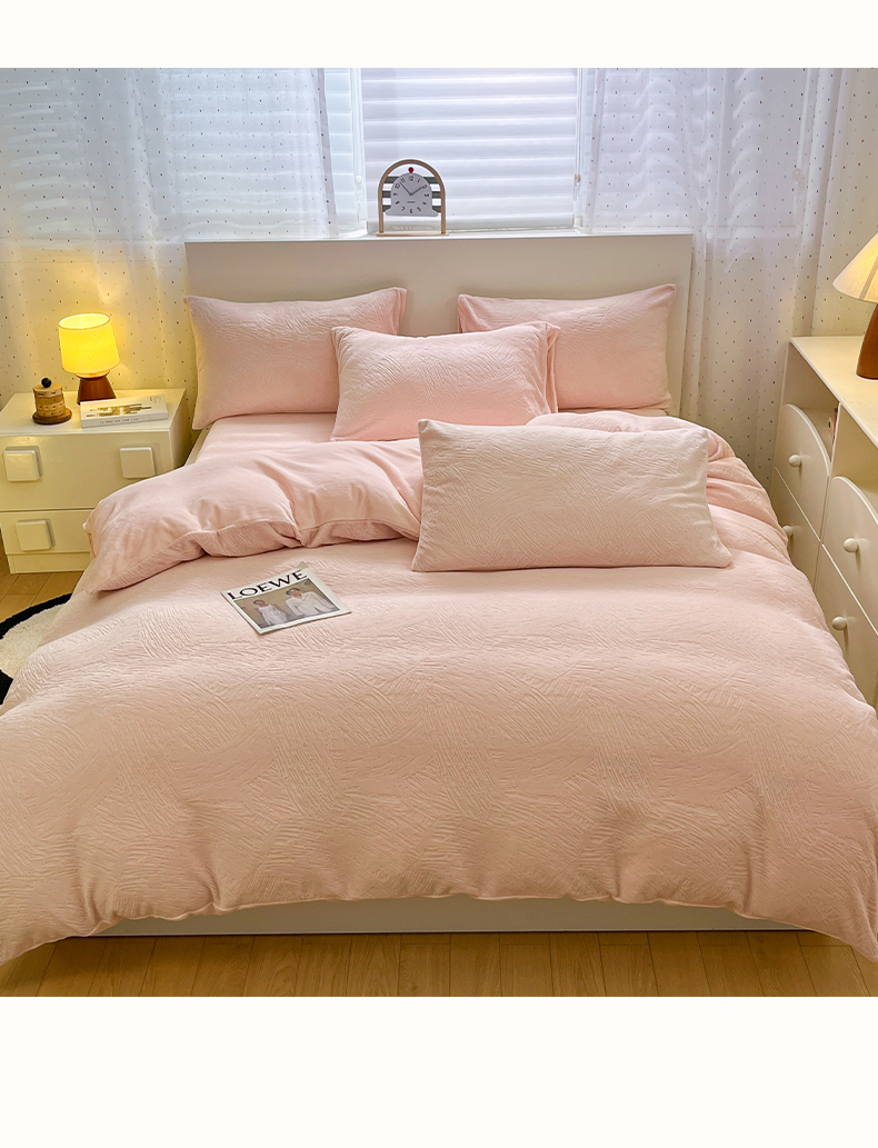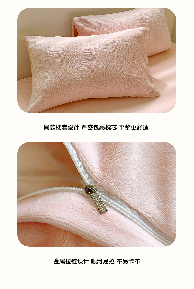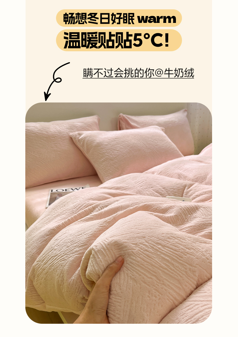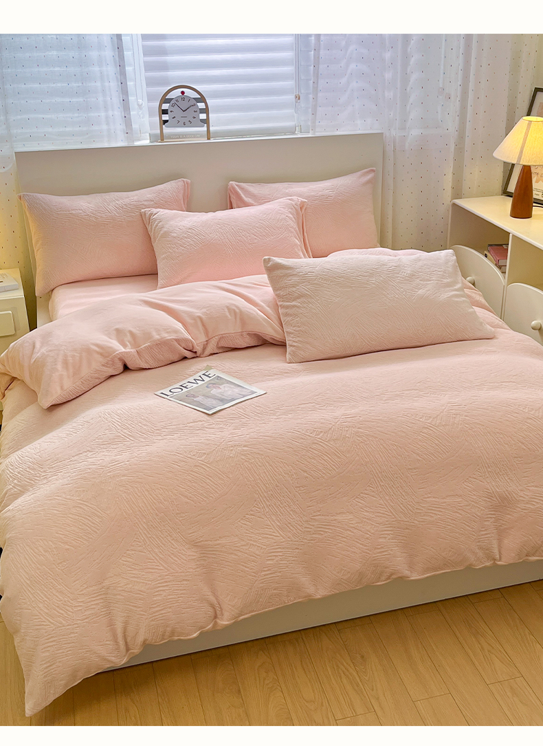 如一 2025新款3D雕花牛奶绒四件套第三批 肌理纹-粉