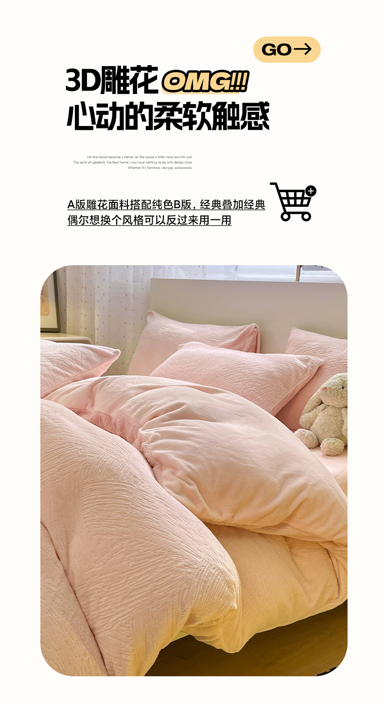 (总)如一 2025年3D立体雕花牛奶绒四件套,芭蕉叶-白咖,花漾-粉,编织纹-天蓝,繁花-粉,编织纹-白咖,缤纷-粉,编织纹-白橘,繁花-天蓝,花漾-黄,华夫格白,华夫格黄,肌理纹-杏,千鸟格粉,千鸟格灰,编织纹-粉,编织纹-灰,芭蕉叶蓝,编织纹-蓝灰
