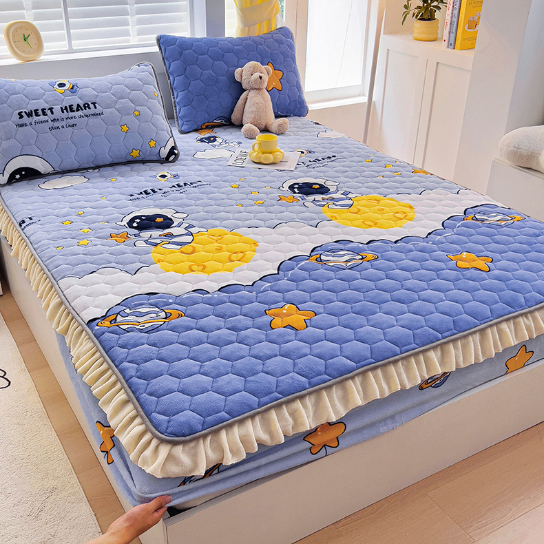 (总)情煊家纺 2025新款A类牛奶绒印花夹棉床垫,一鹿幸福,乐拼字母,大牌风范,太空漫步,蓝大格,爱心小熊,豹纹,大力熊,蝶恋,红玫瑰,林深见鹿,秘境,蘑菇小兔,童趣,童真,西高地,银杏叶,紫爱心