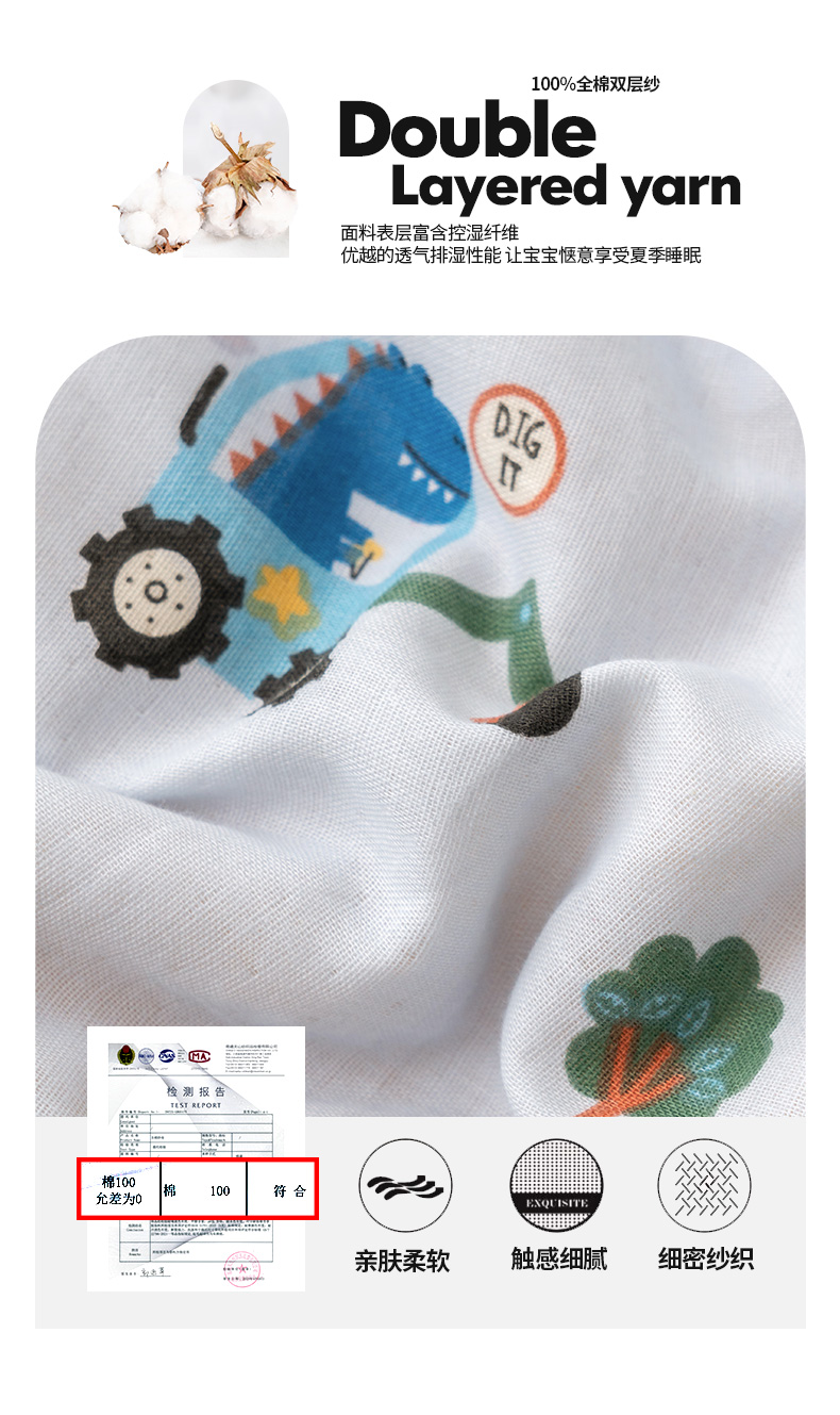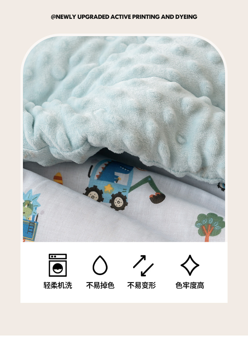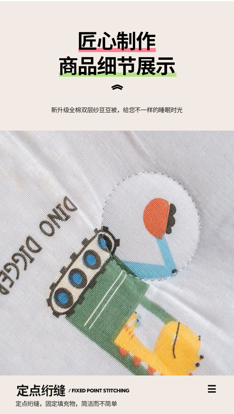 商品名称:嗨生活 2025年新款全棉纯棉双层纱豆豆被儿童被春秋被冬被幼儿园被子 挖机恐龙