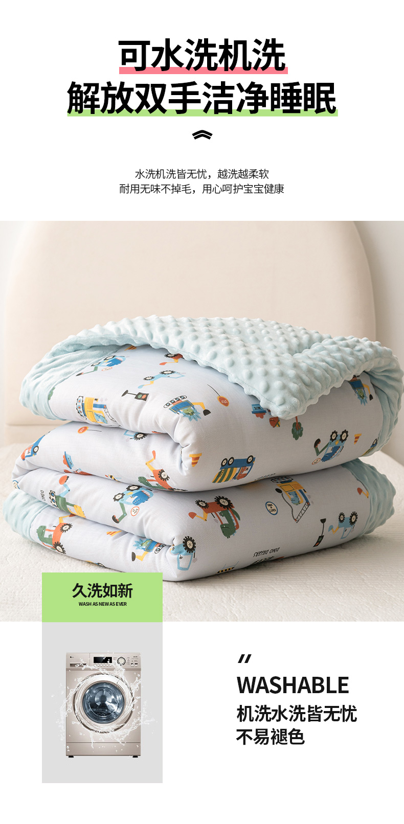 (总)嗨生活 2025新款全棉双层纱豆豆被 儿童被 春秋被 冬被 幼儿园被子,草莓兔兔,花丛小兔,米菲兔,汽车乐园,挖机恐龙,玩具屋,小海豚,熊猫盼盼