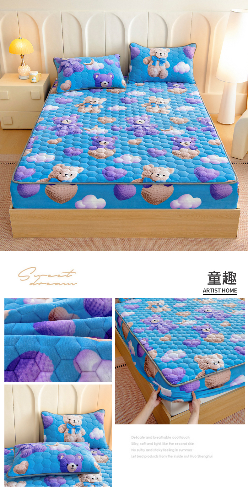 • 91家纺网 家纺一手货源 找家纺 情煊家纺 2025新款保暖牛奶绒夹棉床笠-床笠款 爱心小熊