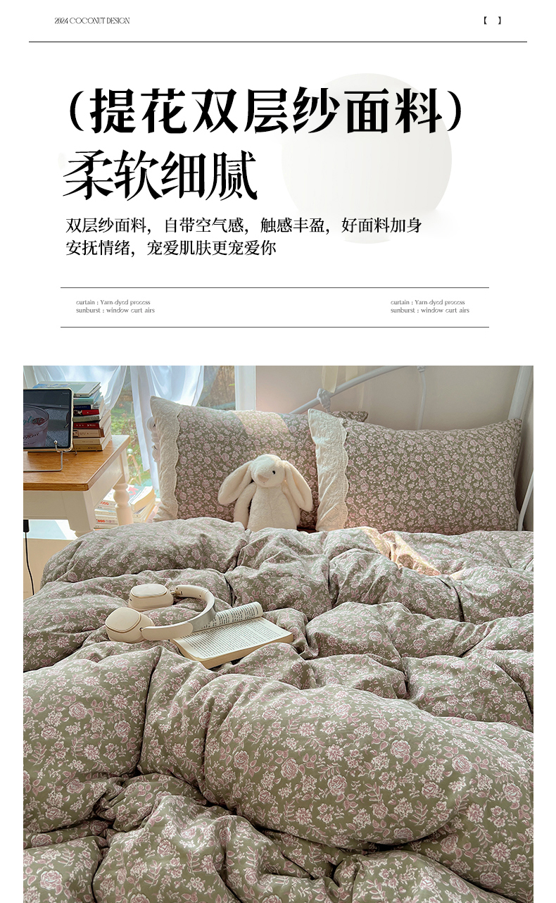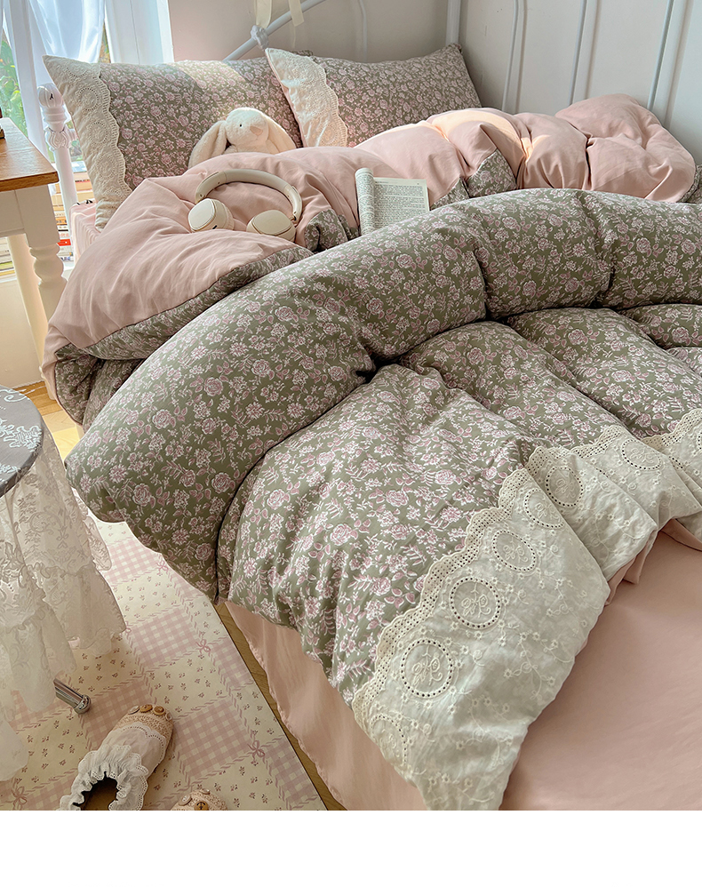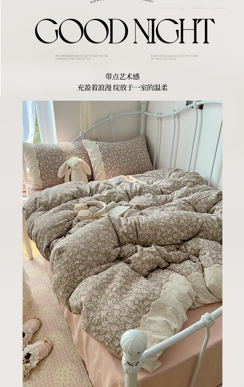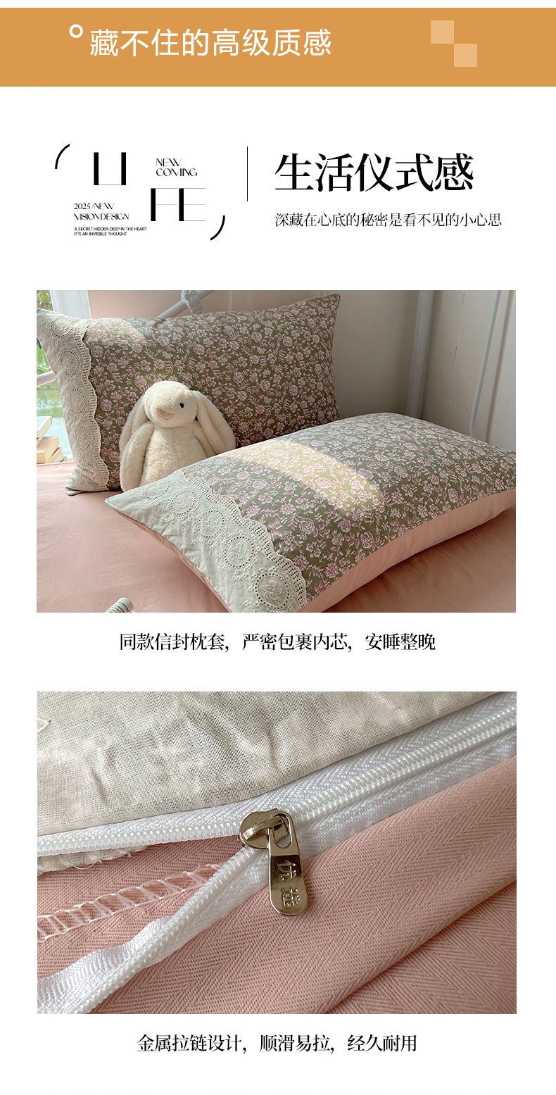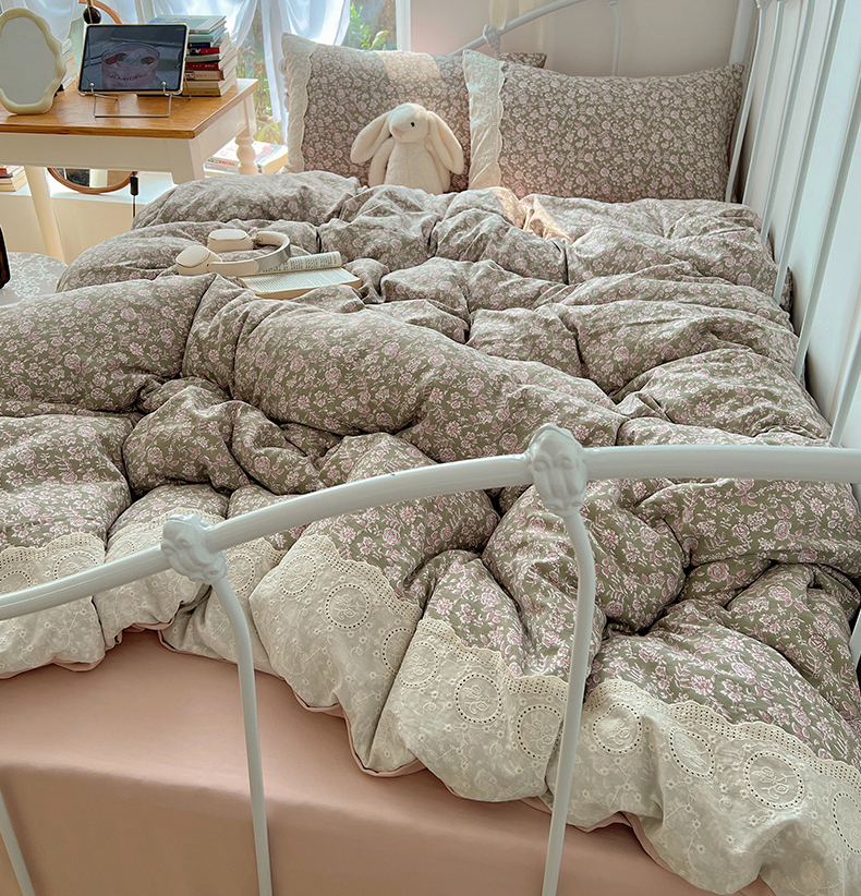 当前位置: 91家纺网 > 商品网购 > 床品套件 > 四件套 > 其它四件套 > 暖芯优选 2025秋冬新品韩国小清新有氧提花人字纹双层纱全棉蕾丝花边加厚四件套 沐春-大花边