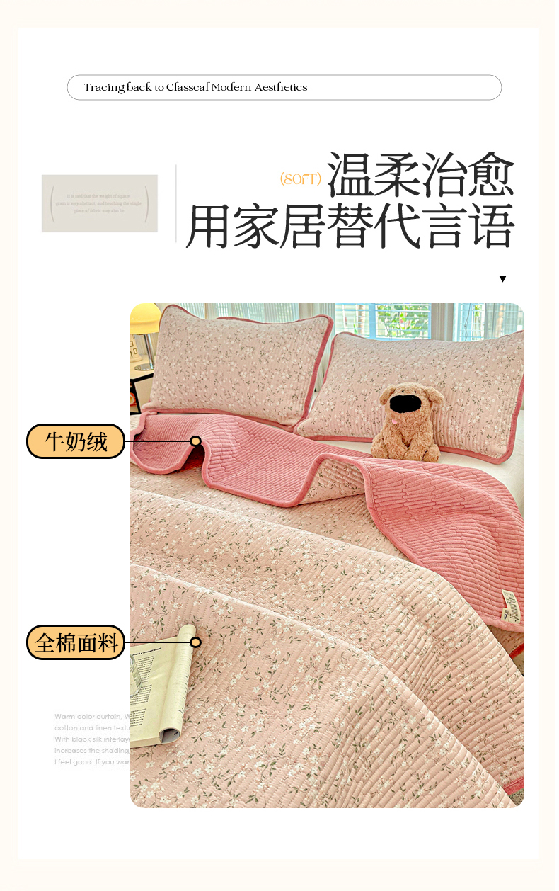 • 91家纺网 家纺一手货源 找家纺 恒尚居 2025新款全棉牛奶绒床盖四季可用纯棉夹棉床单床褥垫三件套-秋冬款系列二 樱花灿灿