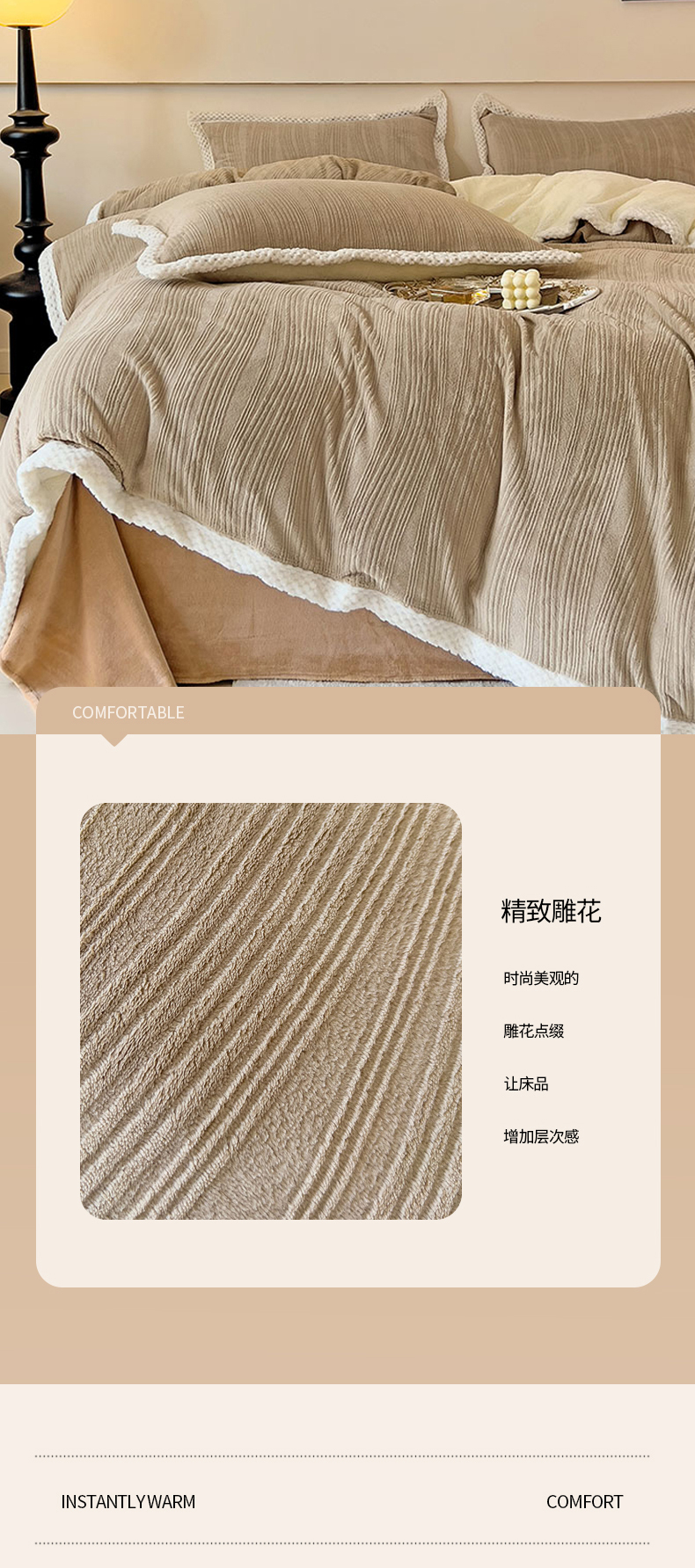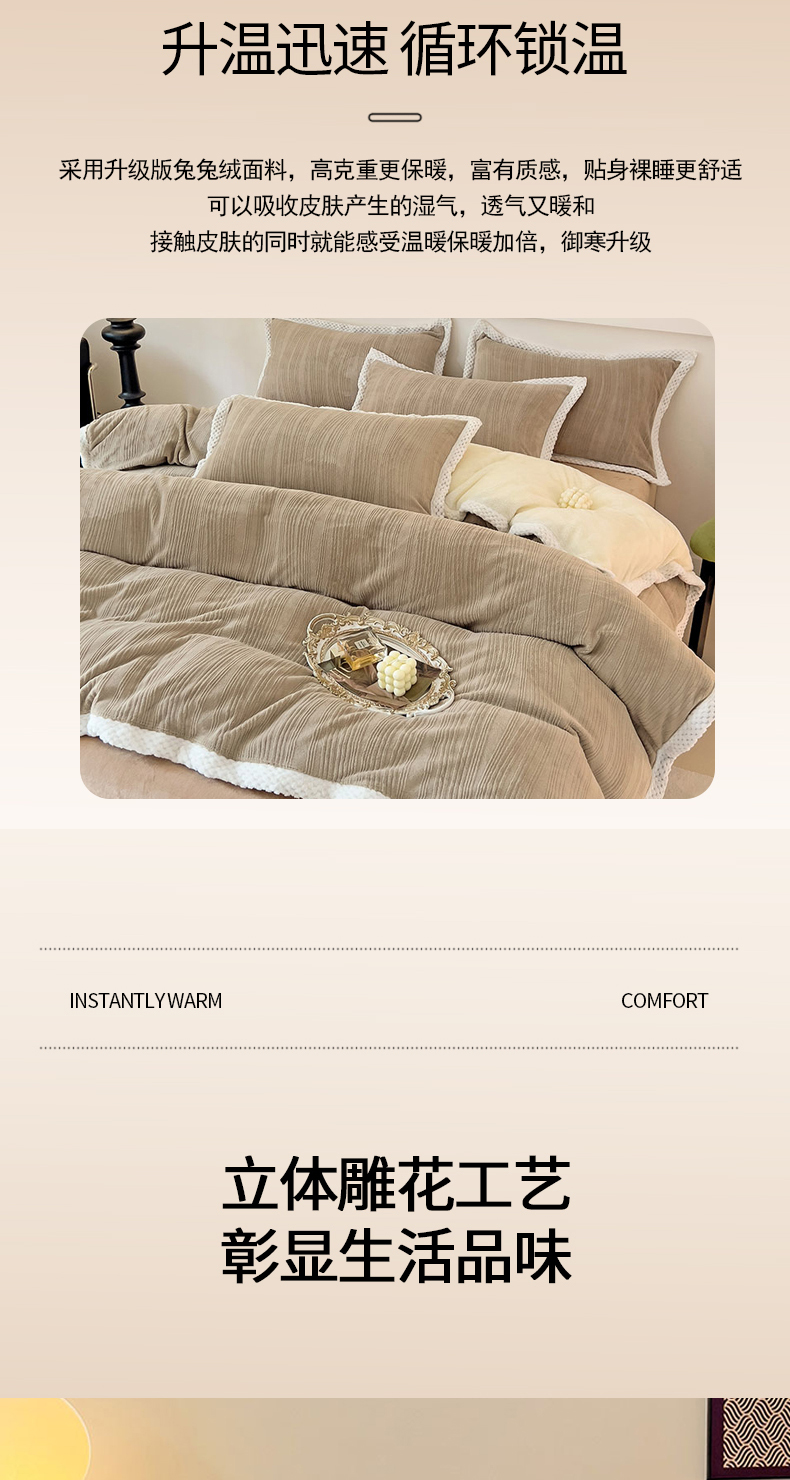 当前位置: 91家纺网 > 商品网购 > 床品套件 > 四件套 > 其它四件套 > 琪格格纺织 2025新款全消光包边立体简约清新雕花绒四件套 雕花包边绒-叶之恋青
