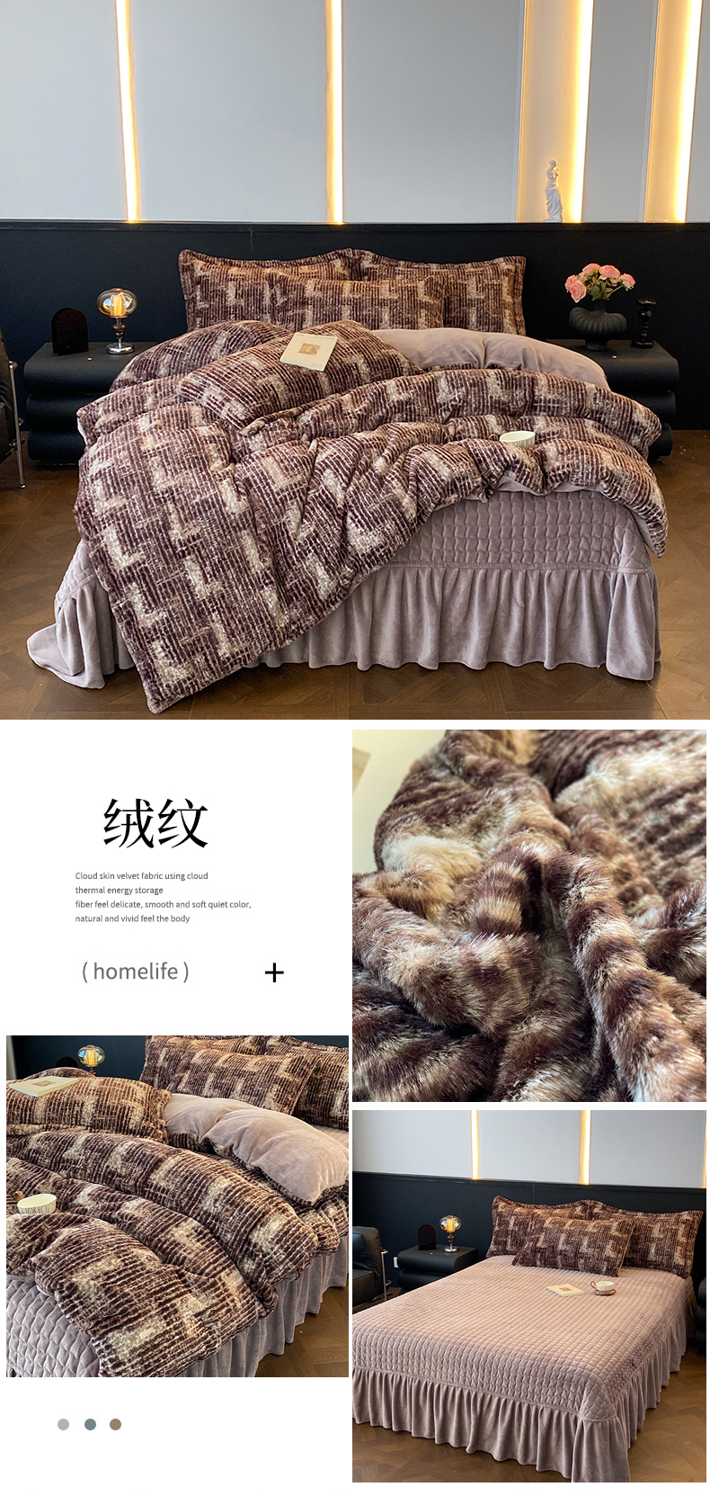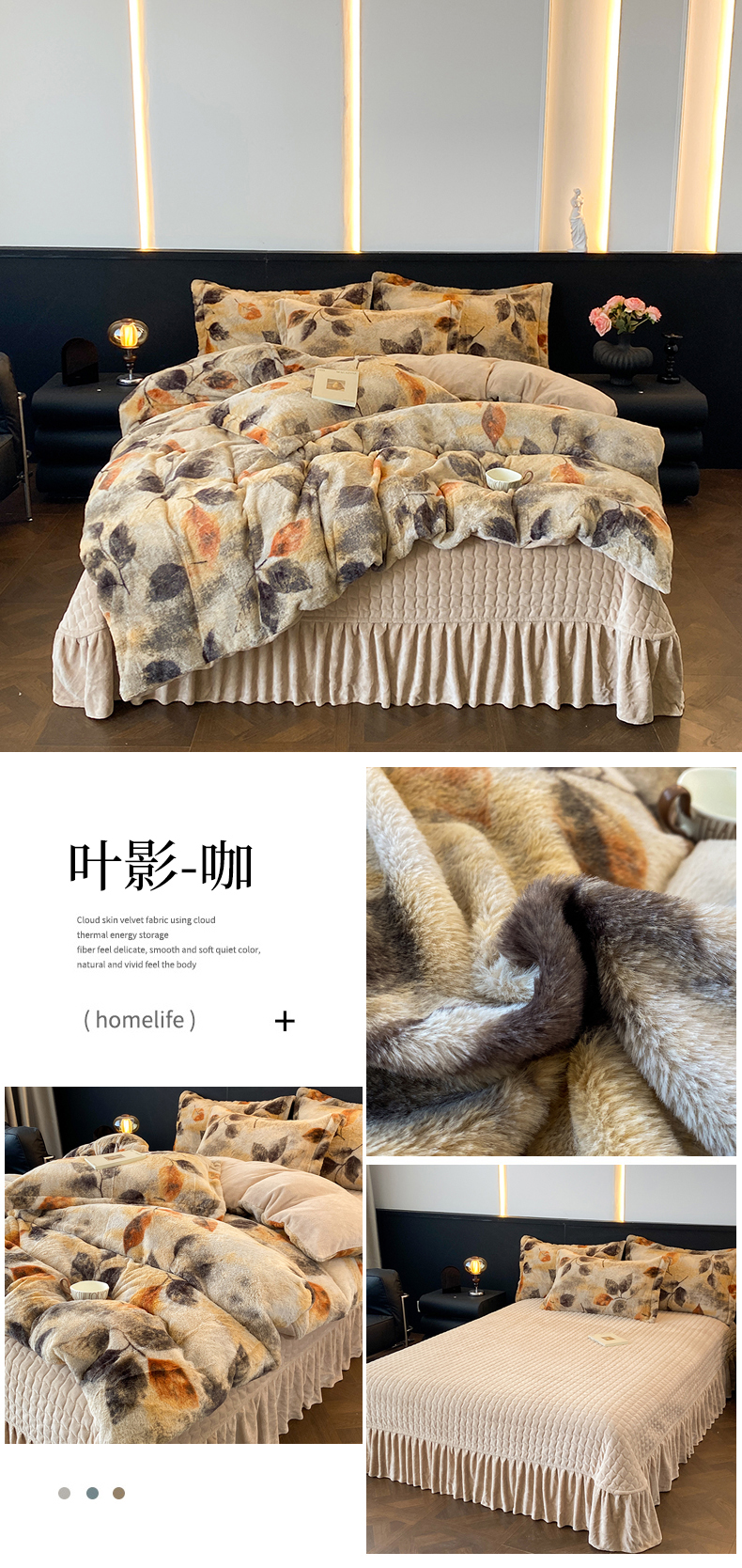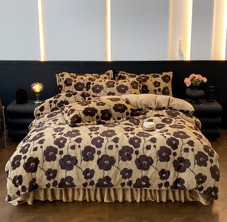 商品名称:美伦美焕 2025新款直播热款高克重兔毛绒床盖款四件套 咖豹