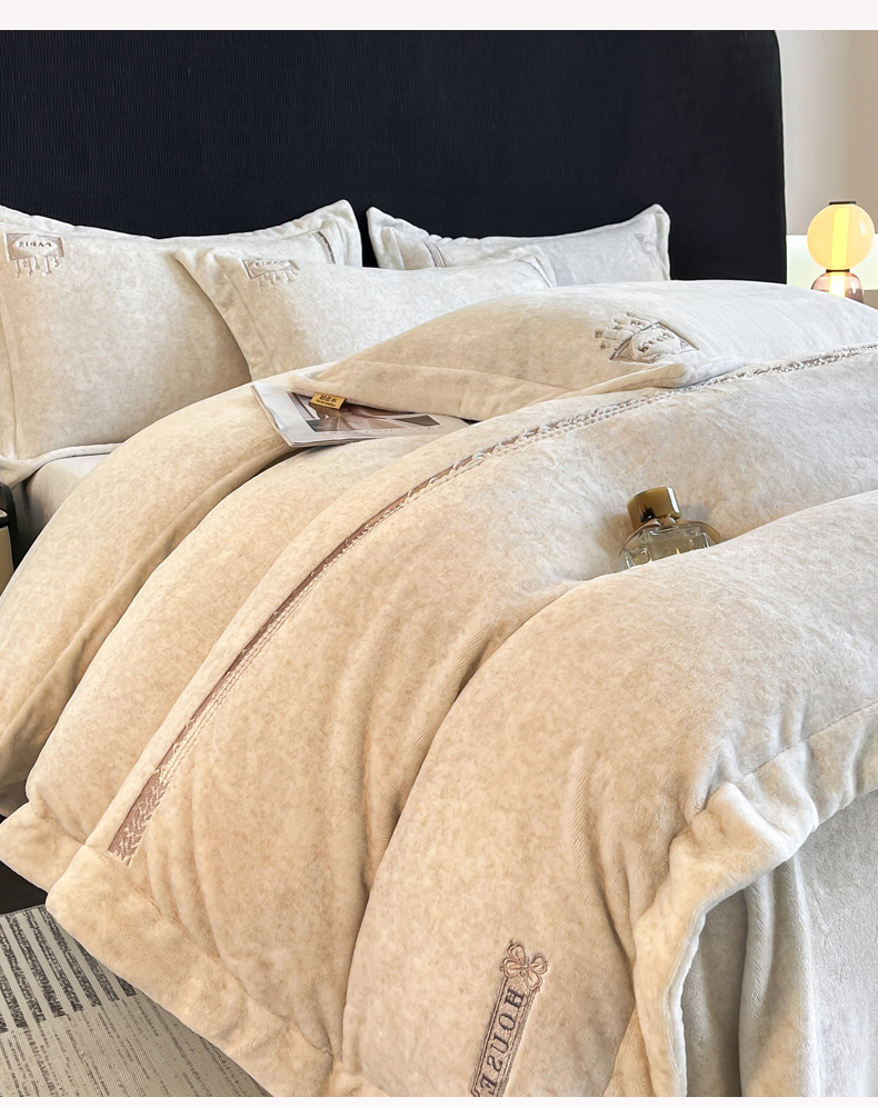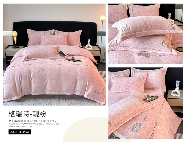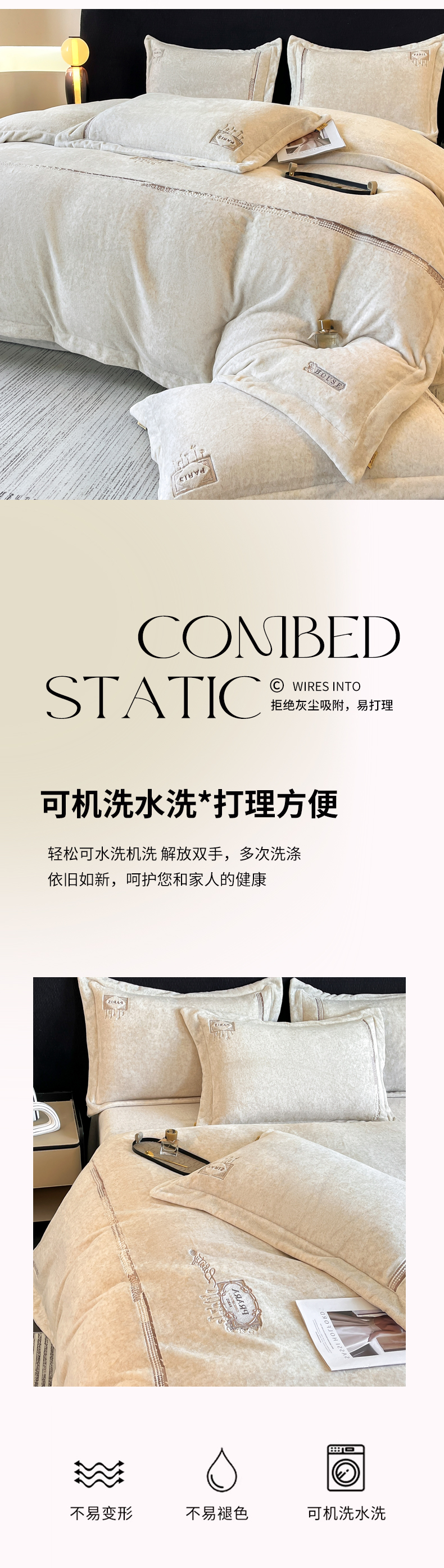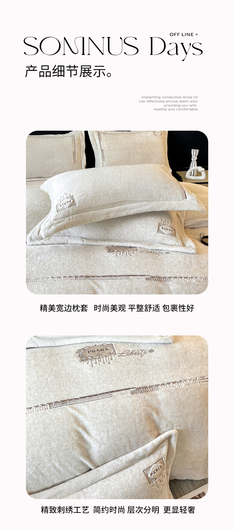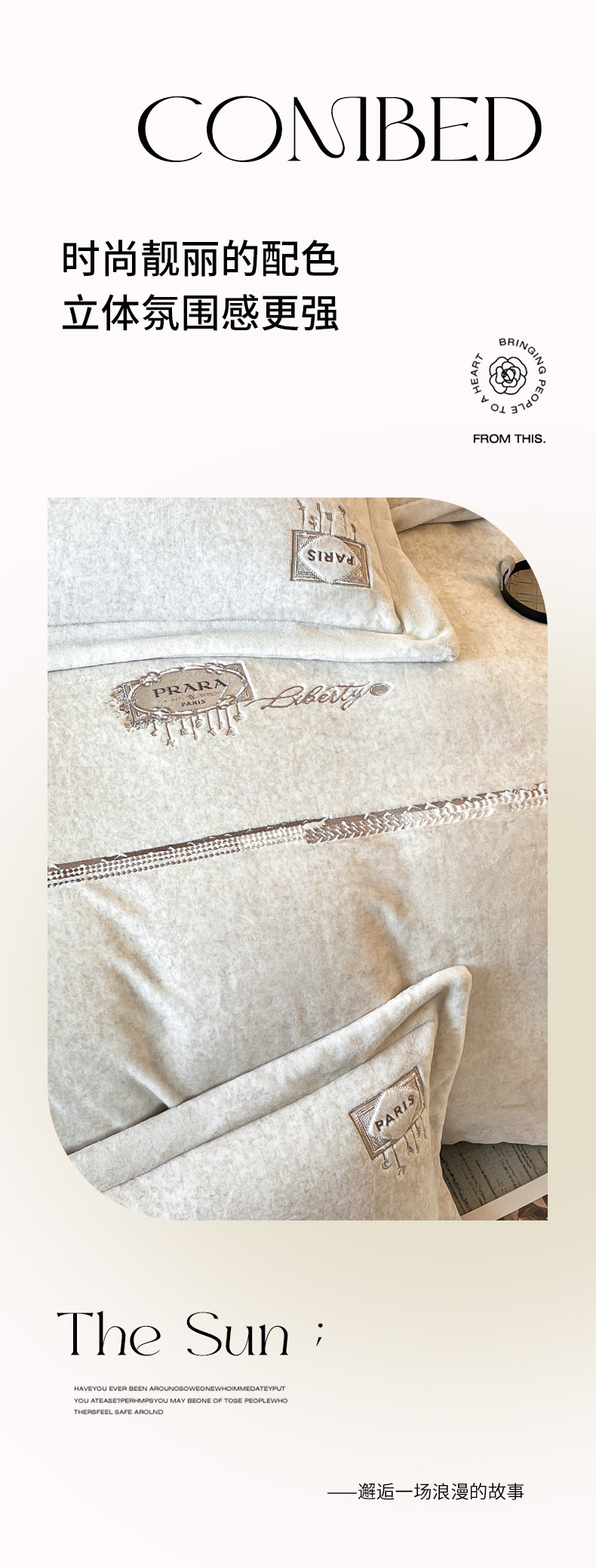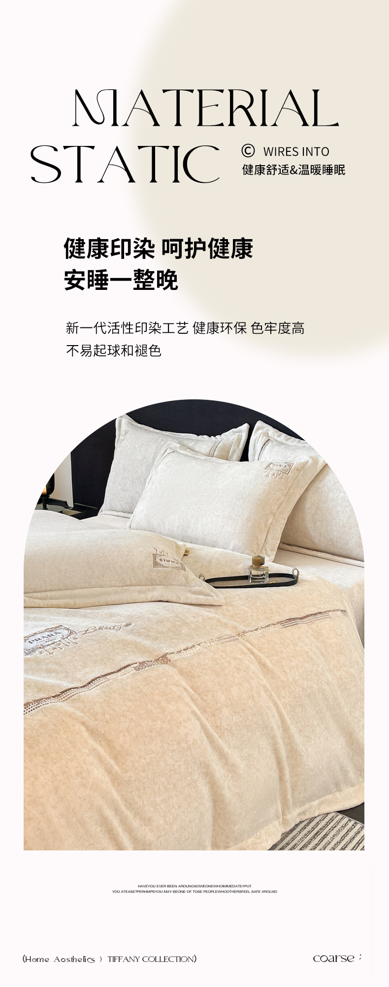 (总)牛奶绒宝宝水晶绒法莱冰岛绒简约轻奢拼接刺绣保暖冬季保温四件套利尔赛,利尔赛-可可棕,利尔赛-香槟粉,利尔赛-星冰绿