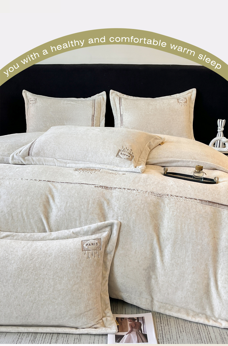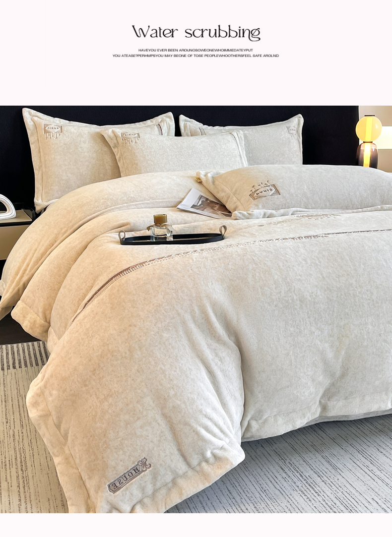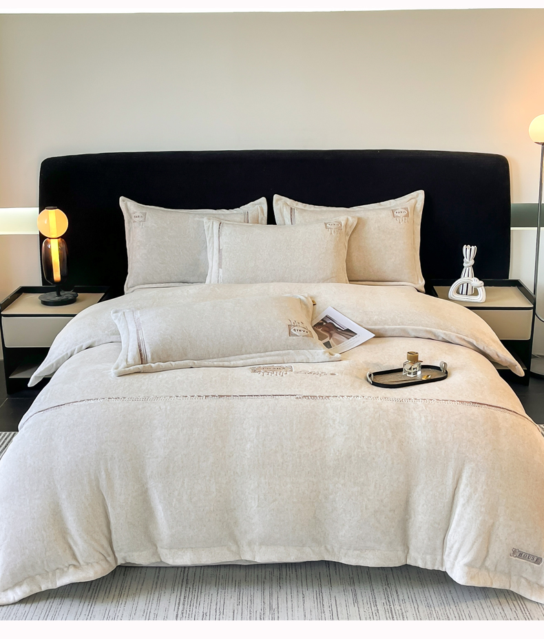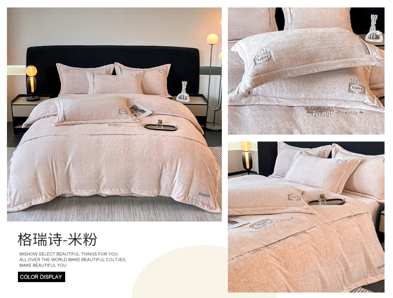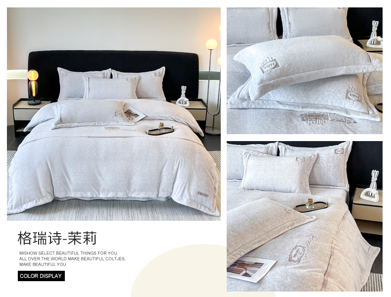 (总)牛奶绒宝宝水晶绒法莱冰岛绒简约轻奢肌理纹保暖冬季保温四件套格瑞诗