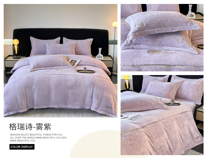 (总)牛奶绒宝宝水晶绒法莱冰岛绒简约轻奢拼接刺绣保暖冬季保温四件套菲利特-可可棕,菲利特-可可棕,菲利特-兰,菲利特-紫