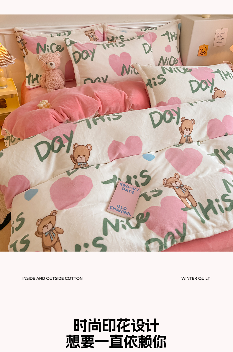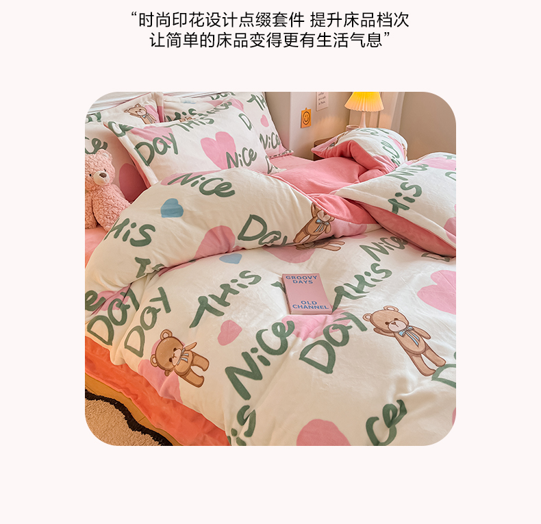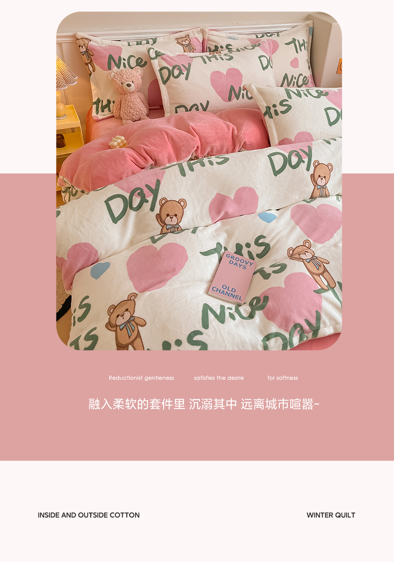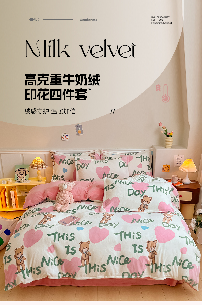 当前位置: 91家纺网 > 商品网购 > 床品套件 > 四件套 > 牛奶绒四件套 > 金盛纺 2025新款高克重牛奶绒印花系列四件套(可定制) 粉红桃心