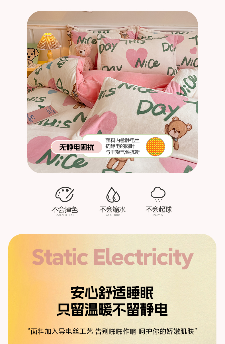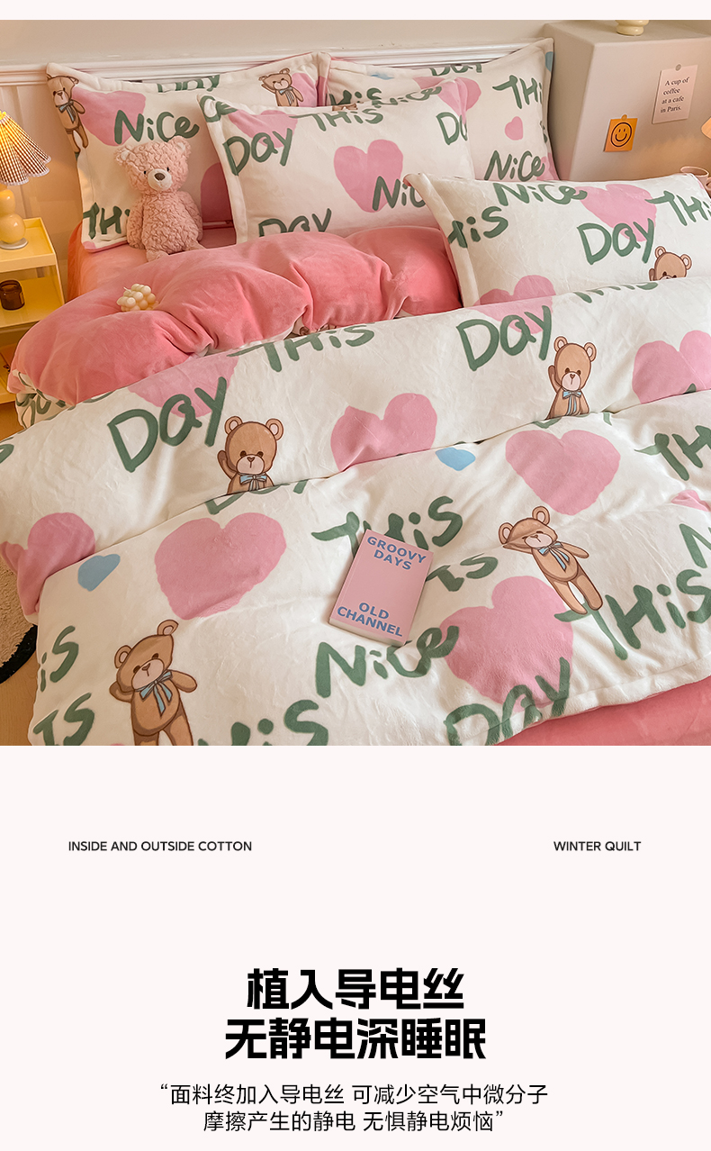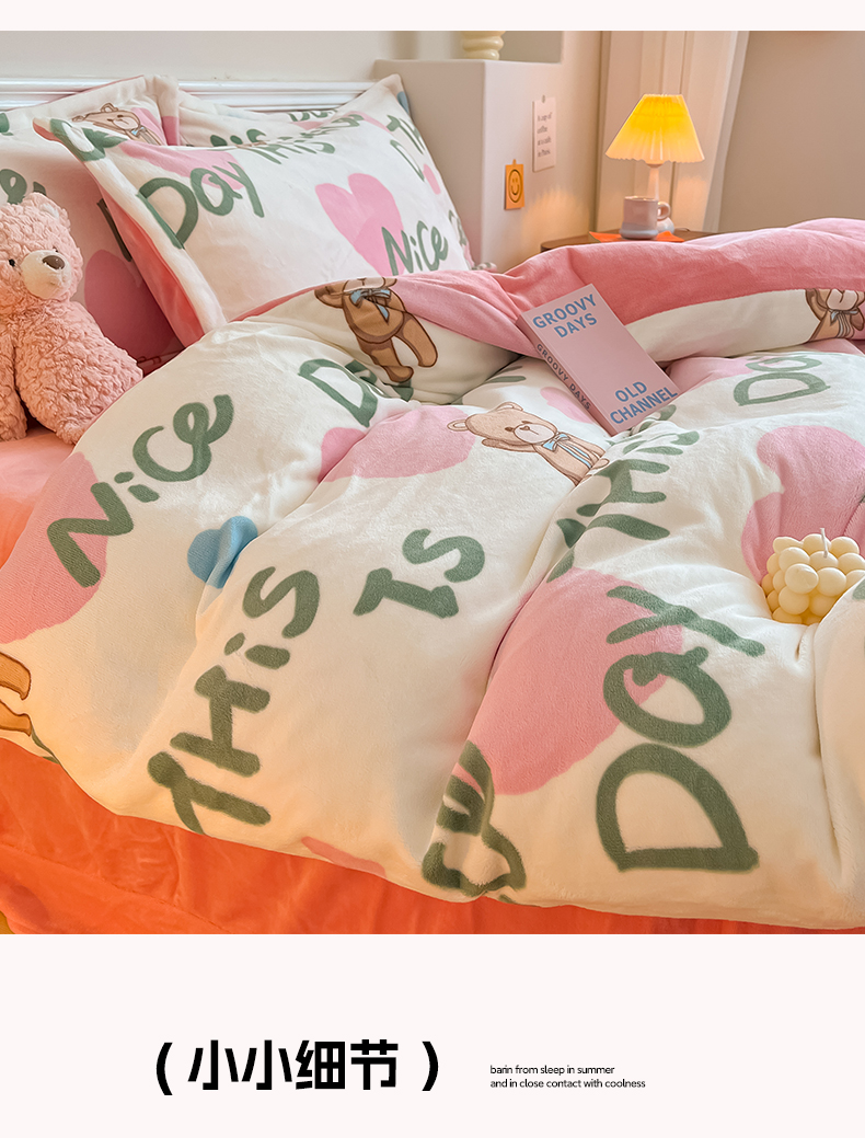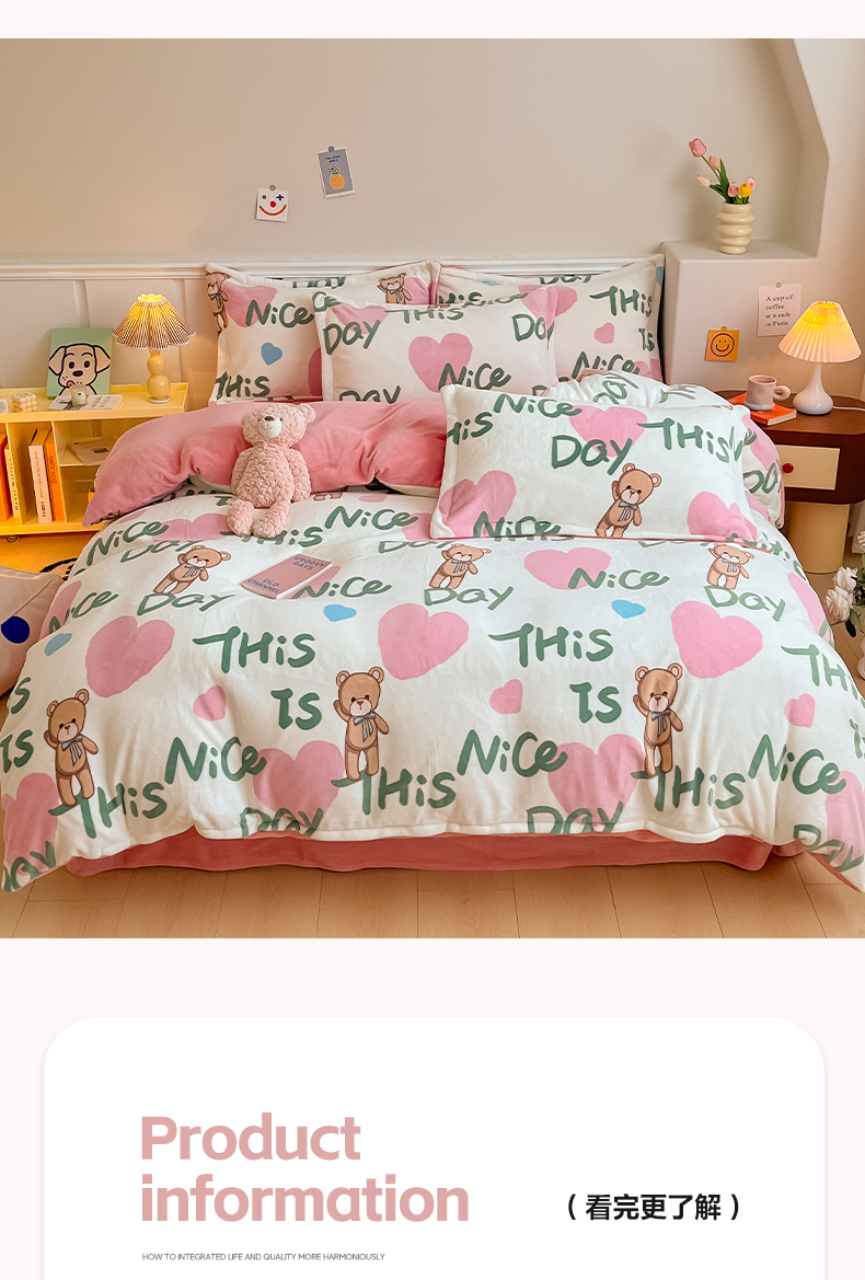 当前位置: 91家纺网 > 商品网购 > 床品套件 > 四件套 > 牛奶绒四件套 > 金盛纺 2025新款高克重牛奶绒印花系列四件套(可定制) 粉红桃心
