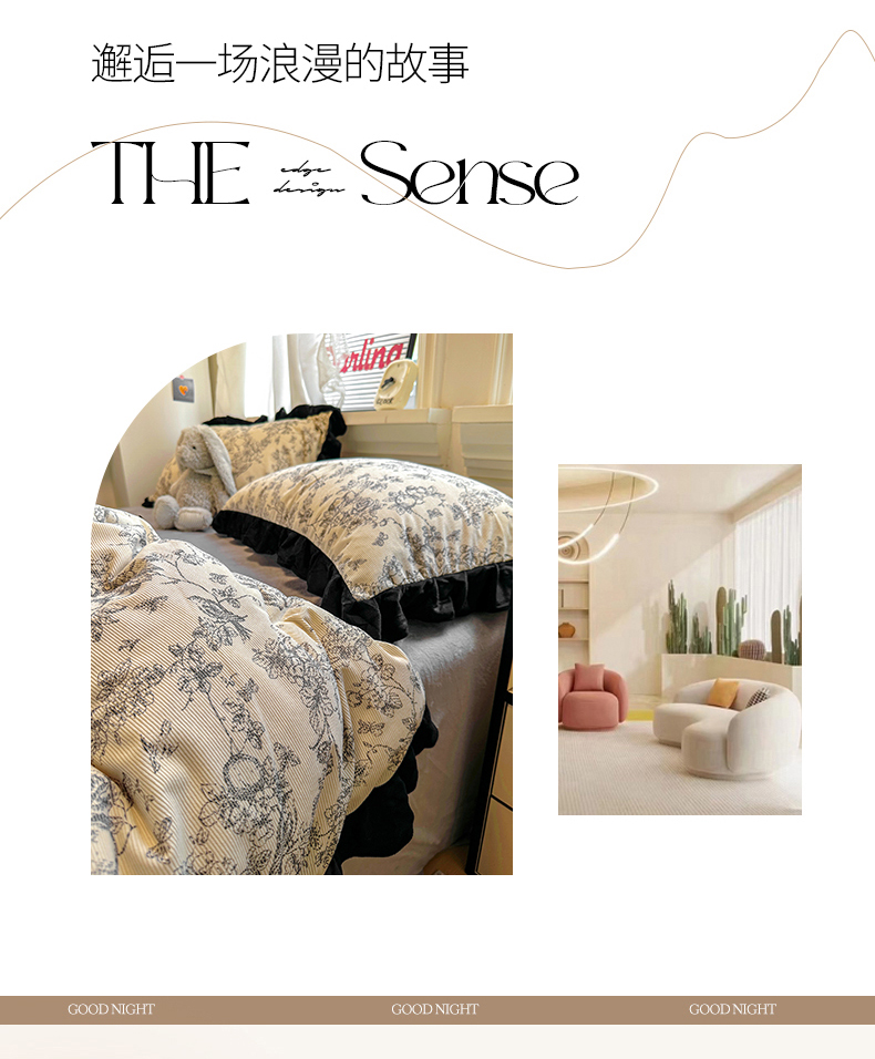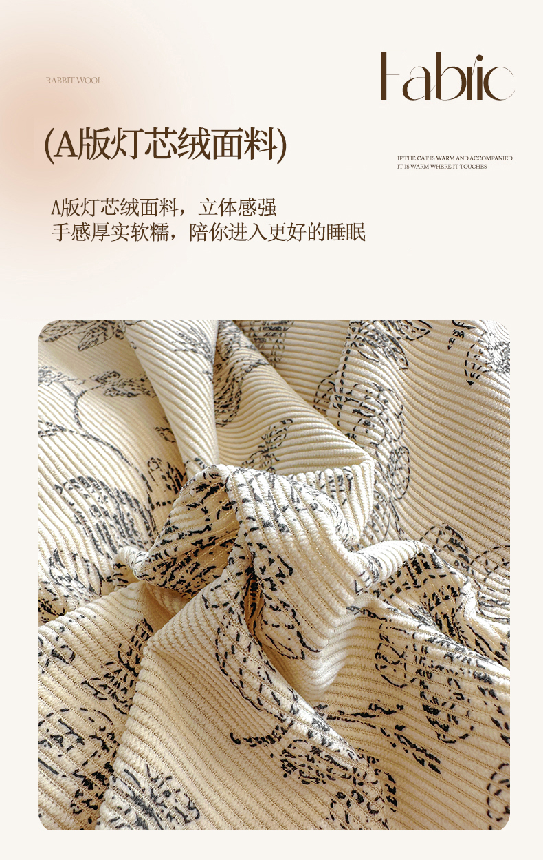 商品名称:(总)老K (原美阁) 2025新款轻法式赫本风灯芯绒牛奶绒四件套提花立体韩版花边复古牛奶绒三件套