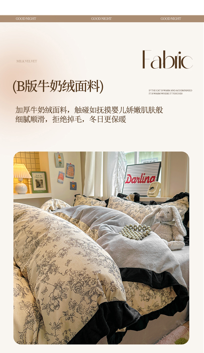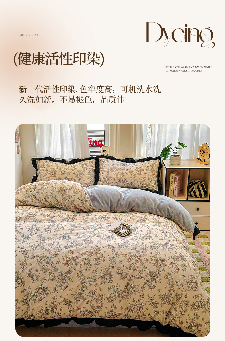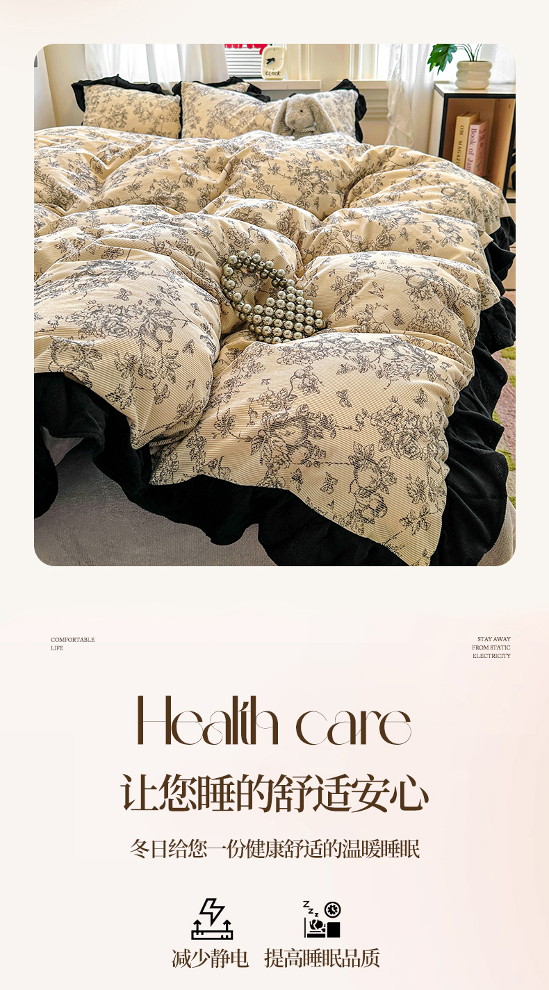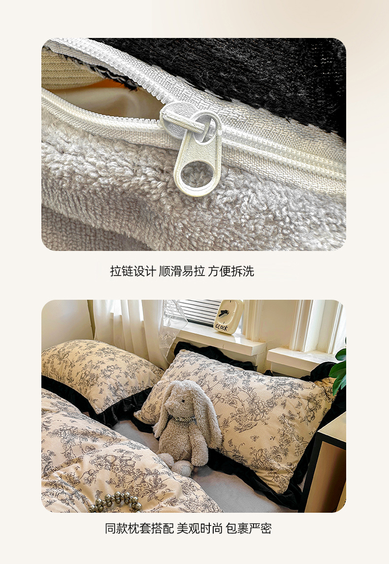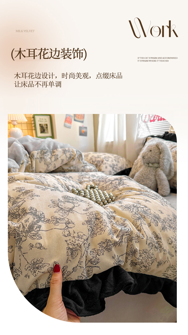 (总)老K (原美阁) 2025新款轻法式赫本风灯芯绒牛奶绒四件套提花立体韩版花边复古牛奶绒三件套
