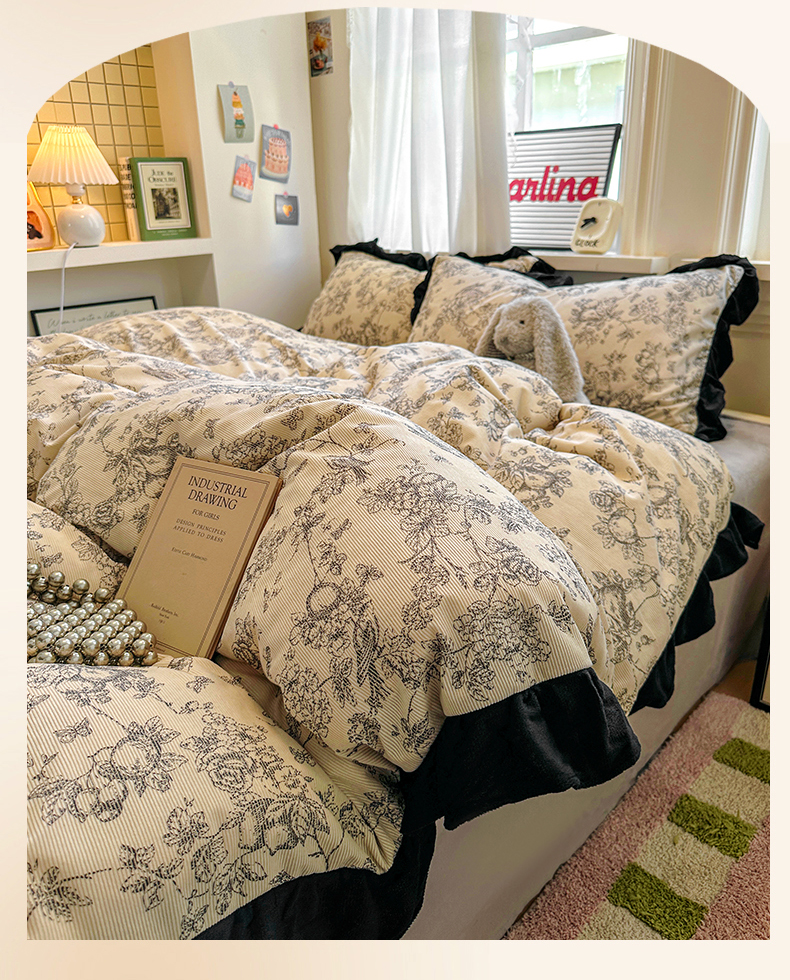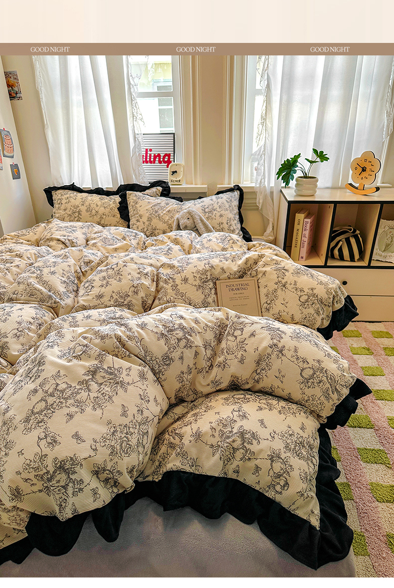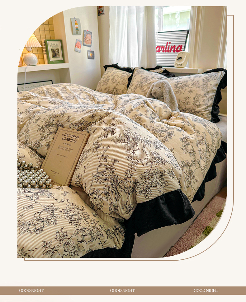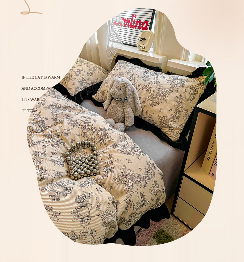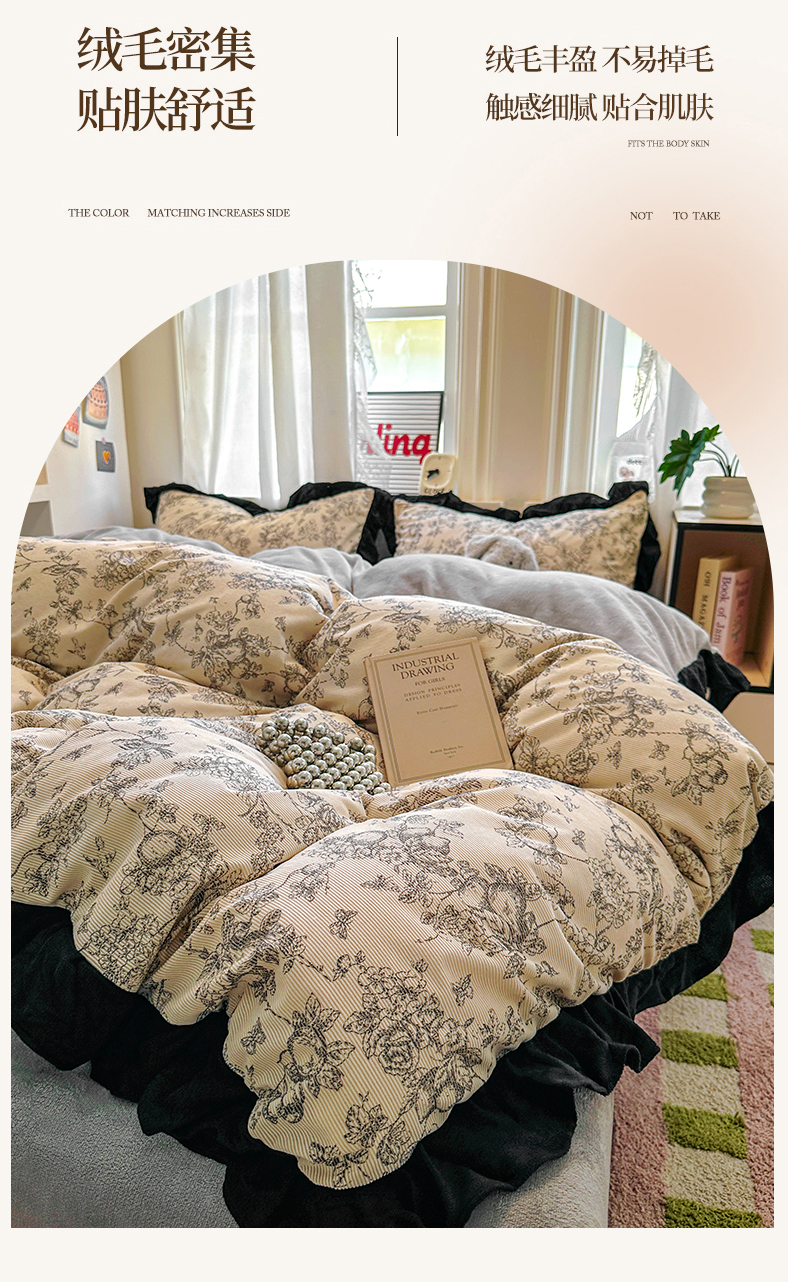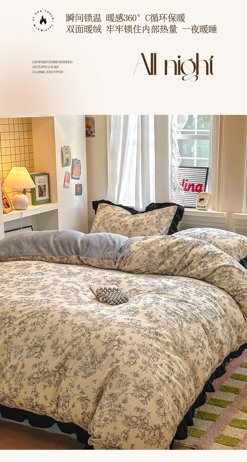 (总)老K (原美阁) 2025新款轻法式赫本风灯芯绒牛奶绒四件套提花立体韩版花边复古牛奶绒三件套