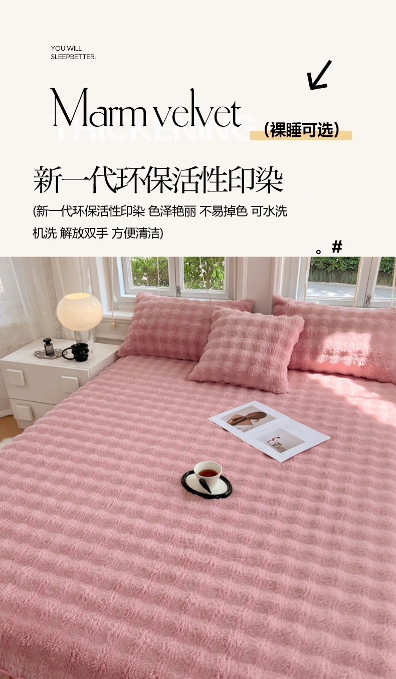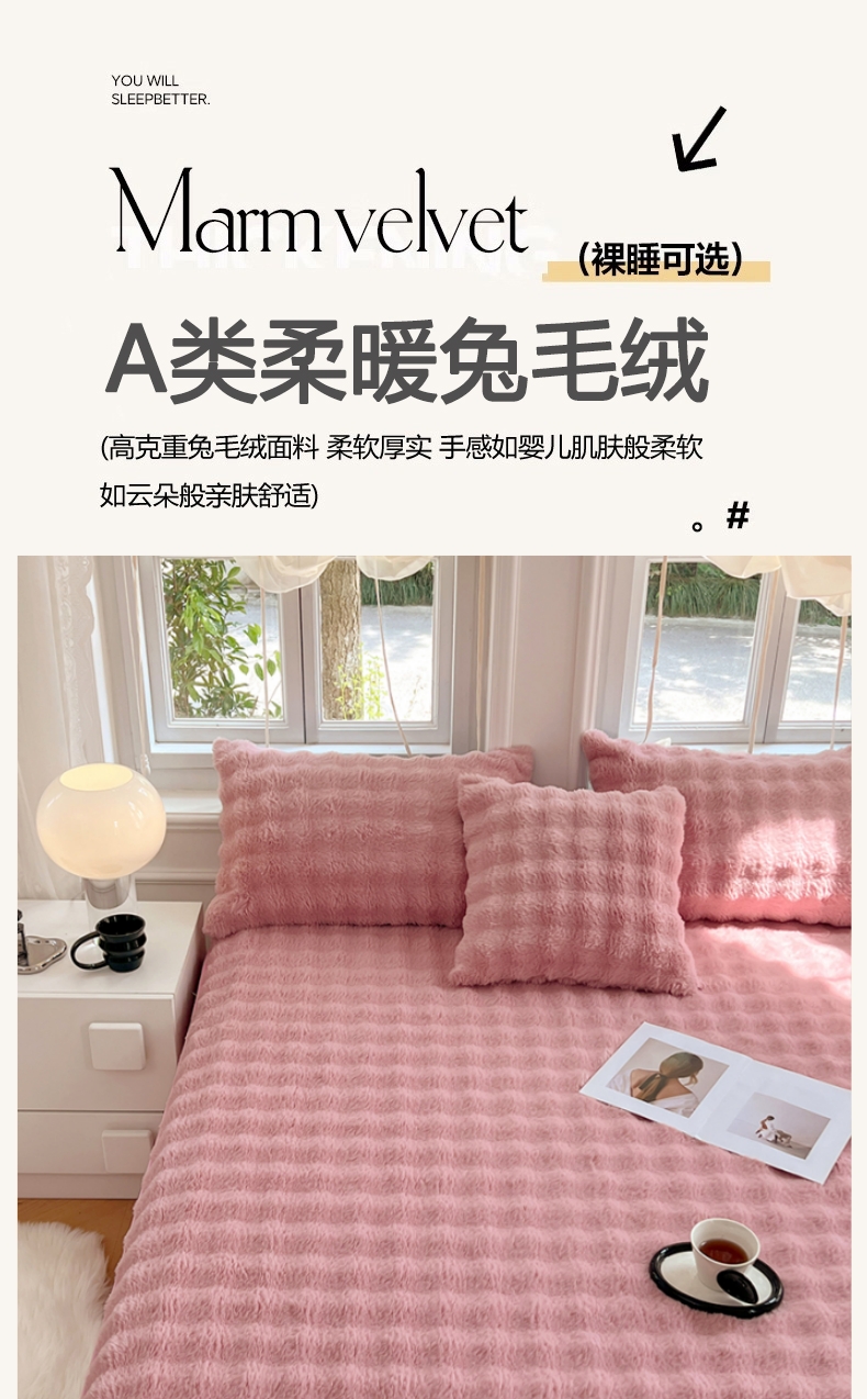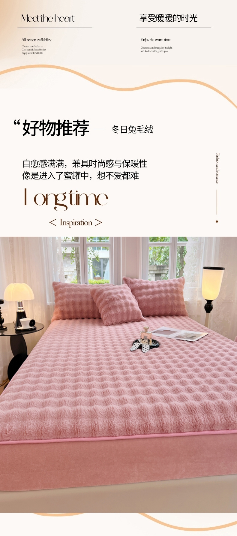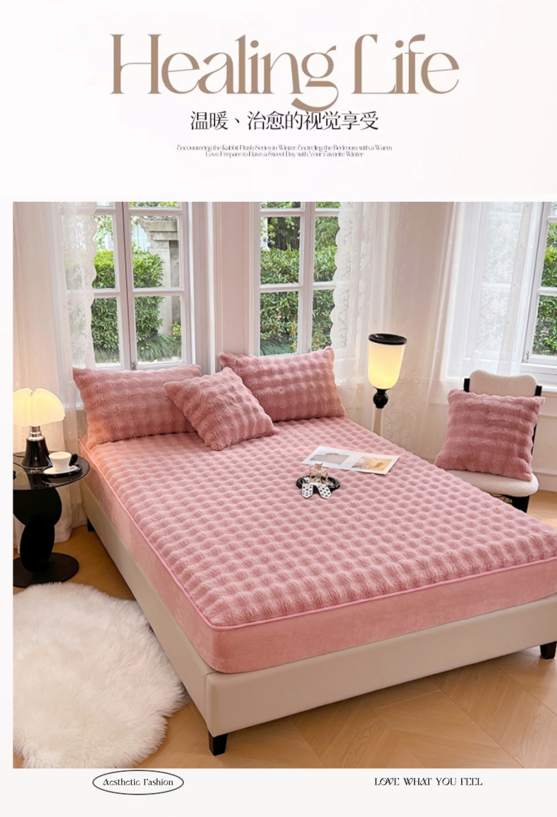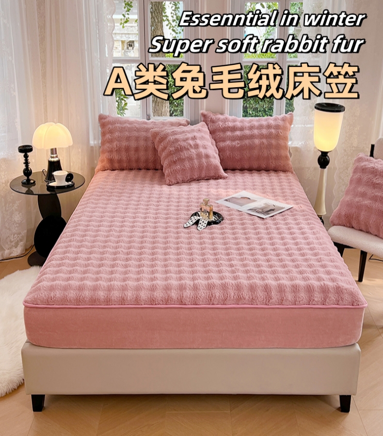 • 91家纺网 家纺一手货源 找家纺 梦舒羽 2025新款兔毛绒水晶绒床垫保护套牛奶绒床垫套单品床笠单件床笠 兔毛绒泡泡-云梦粉