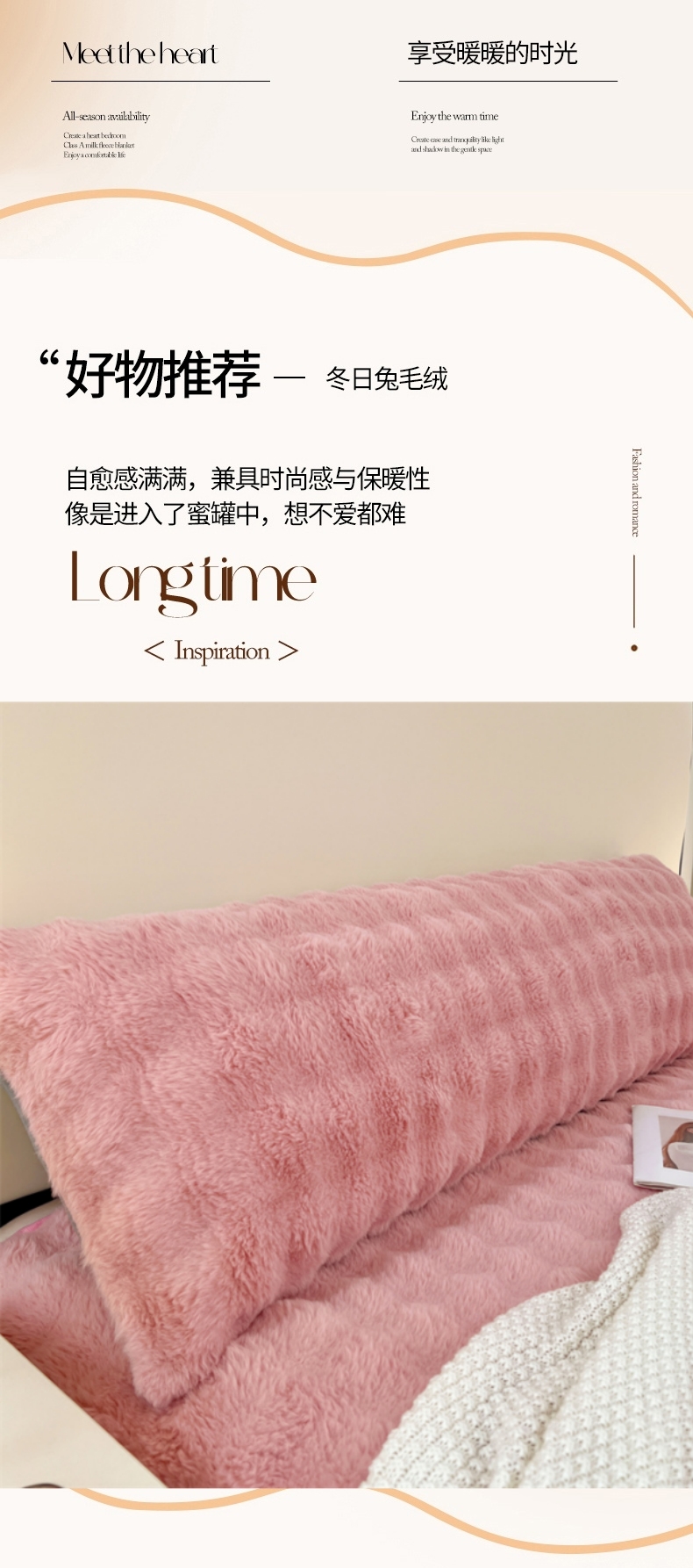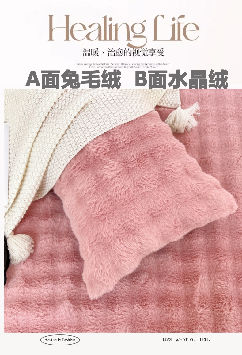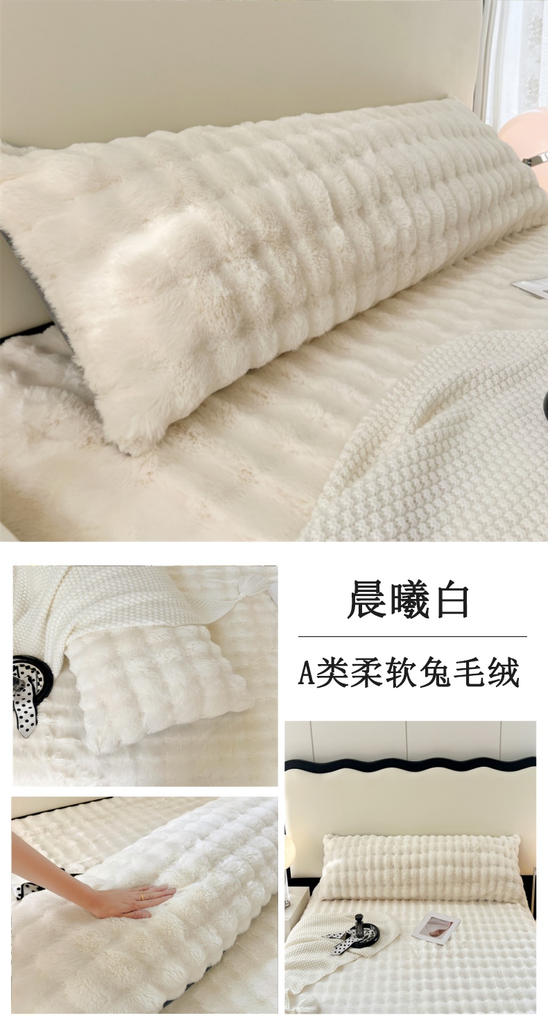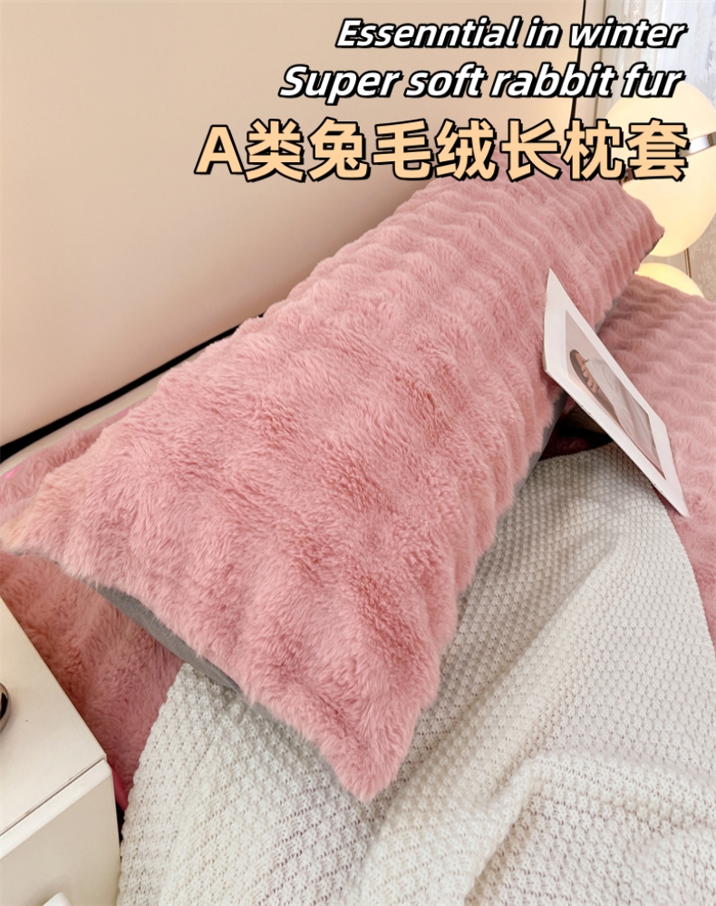 • 91家纺网 家纺一手货源 找家纺 梦舒羽 2025新款兔毛绒双人枕套牛奶绒加长情侣枕芯套雪花绒枕头套 兔毛绒泡泡-云梦粉