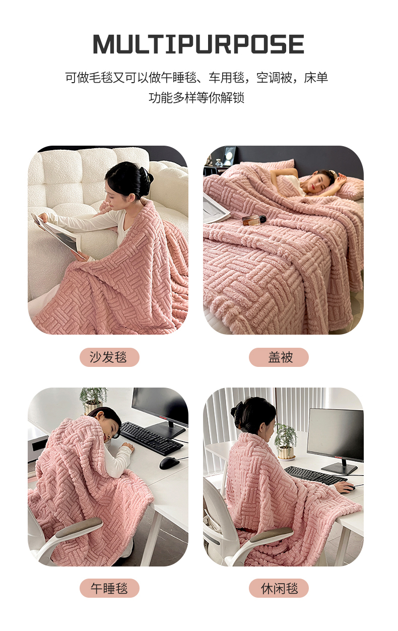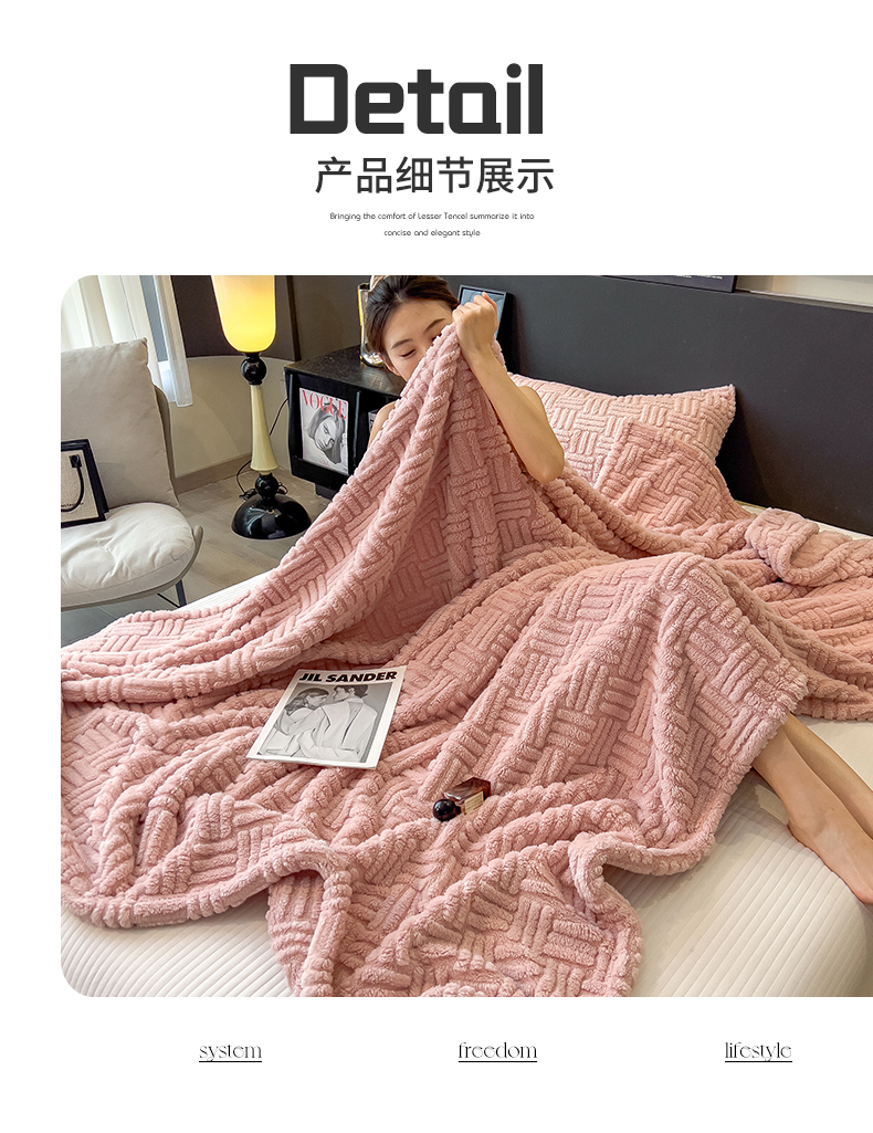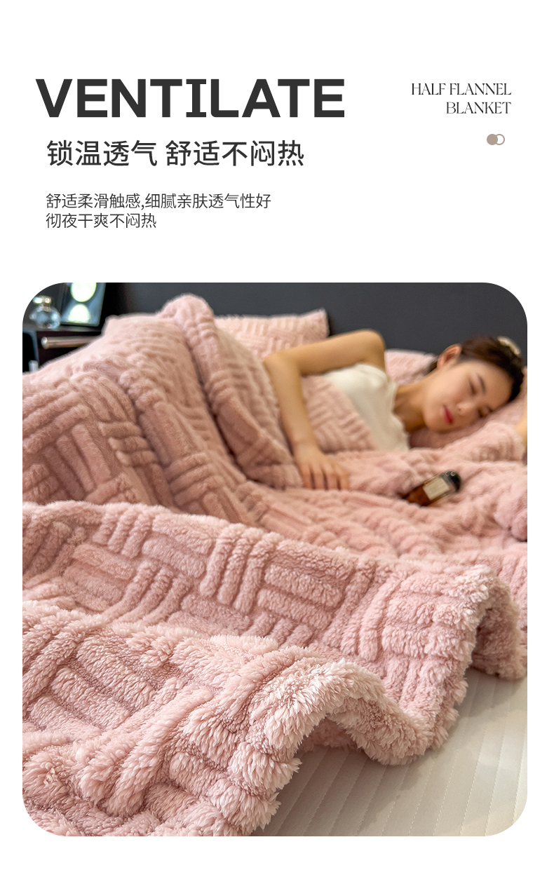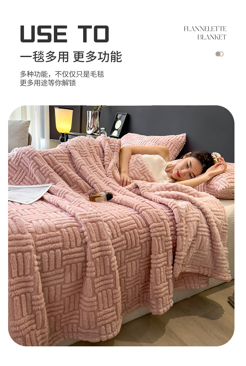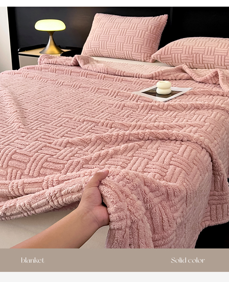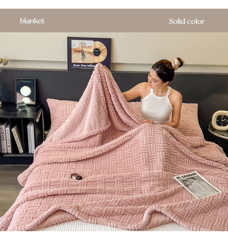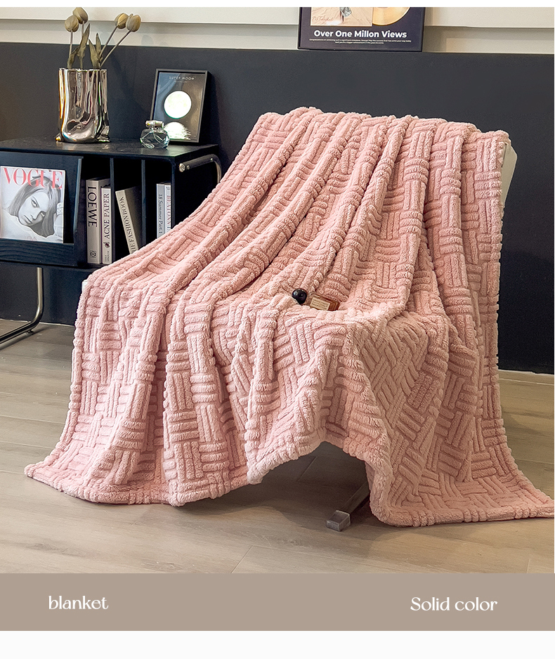 商品名称:世纪绒品 2025新款A类几何牛奶绒提花毛毯 几何-蜜桃粉