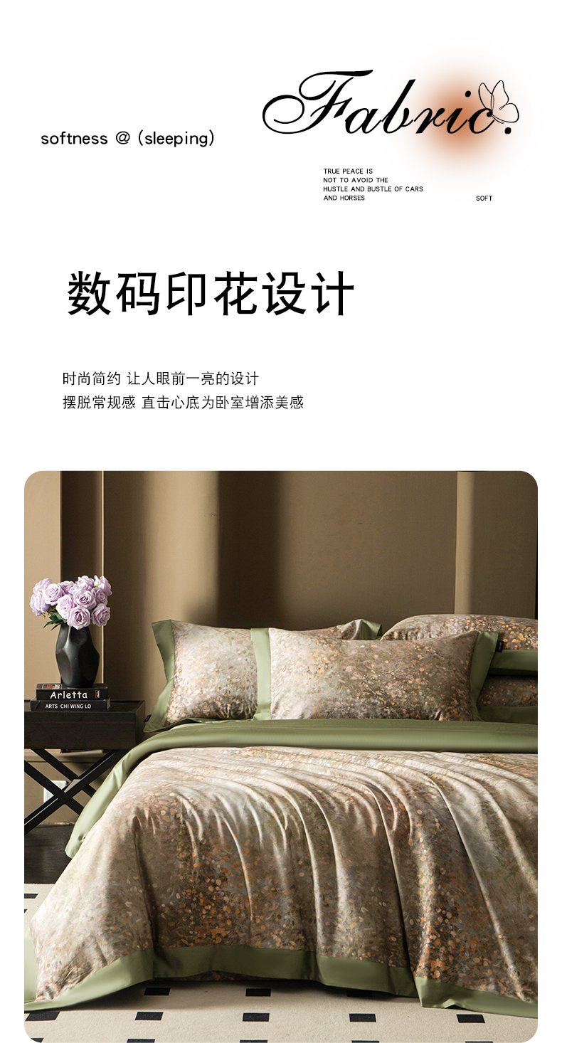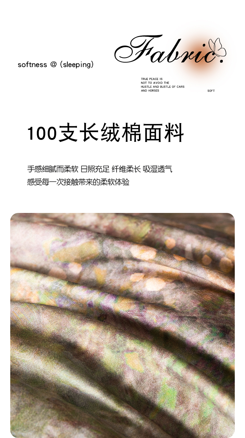 (总)洺兰家居 2026年新疆长绒棉100支天丝棉高端工艺款床单床笠四件套床上用品,淡若清香,陌上花开,羽墨