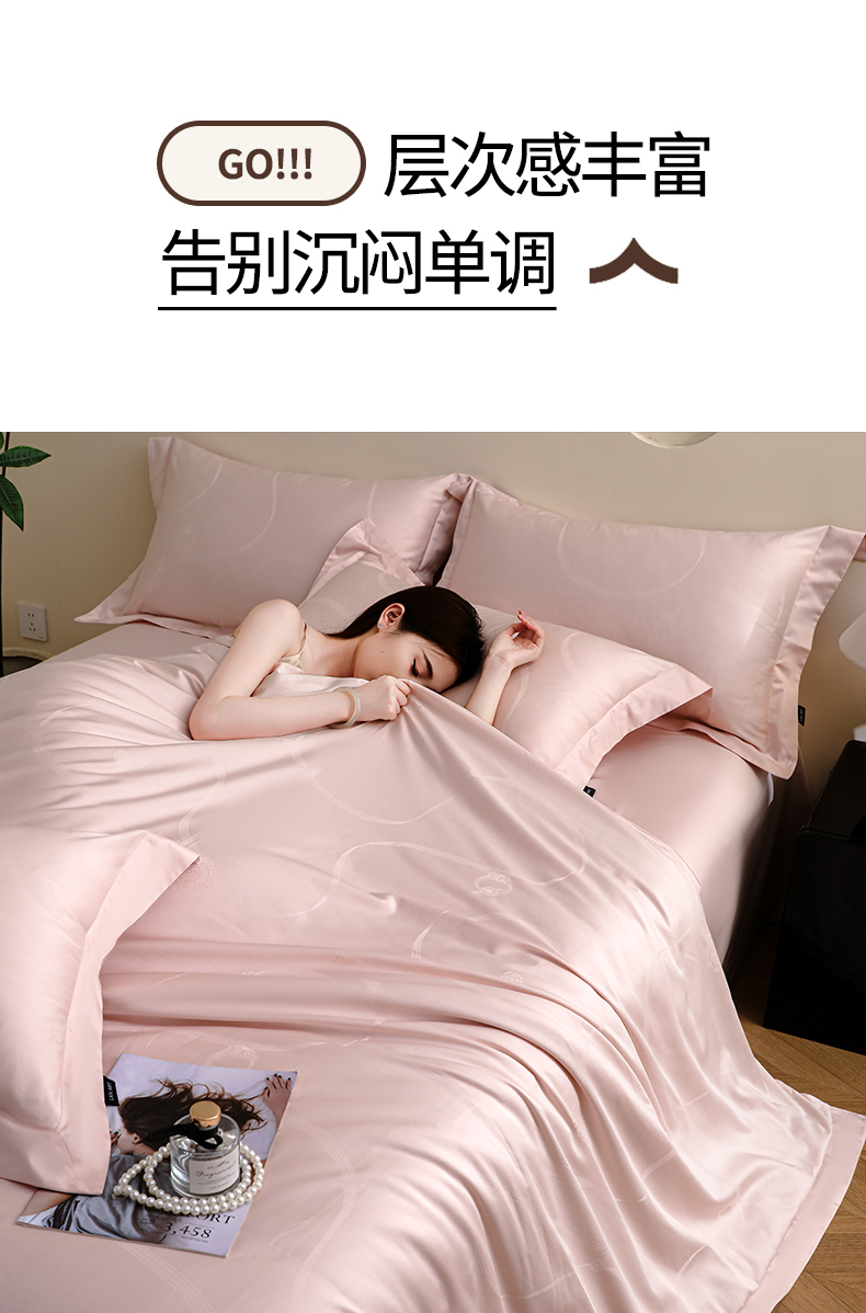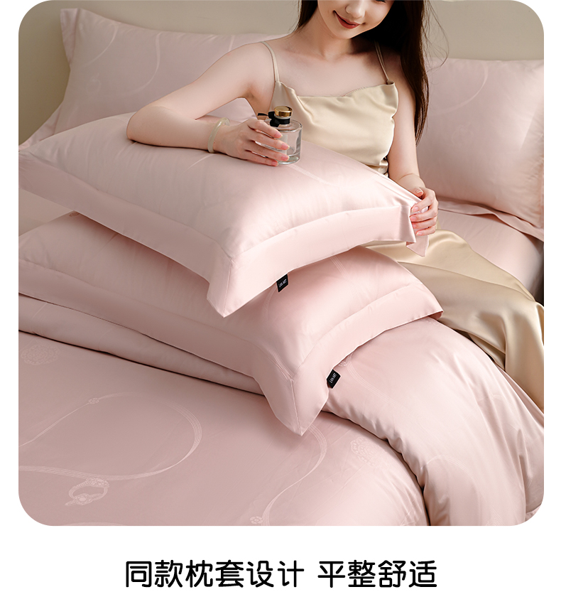 洺兰家居 2025新款60支全棉新疆棉大提花拼角款四件套长绒棉贴边床单床笠床上用品套件专版(控价标准245加大260床笠255) 百合-浅粉