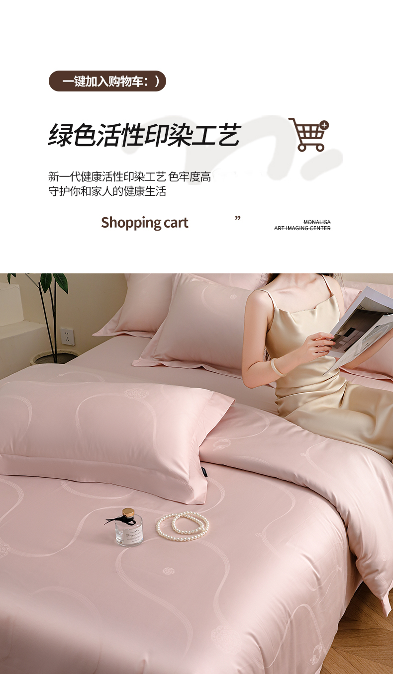 (总)洺兰家居 2026年新疆长绒棉100支天丝棉高端工艺款床单床笠四件套床上用品,淡若清香,陌上花开,羽墨