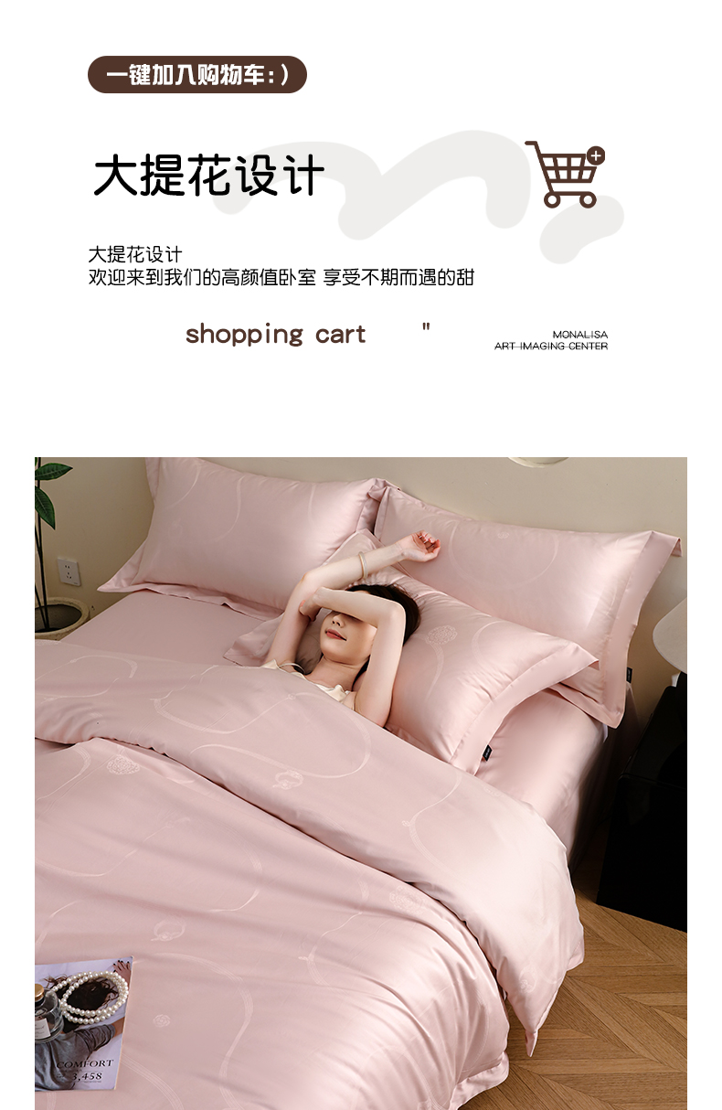 商品名称:洺兰家居 2025新款60支全棉新疆棉大提花拼角款四件套长绒棉贴边床单床笠床上用品套件专版(控价标准245加大260床笠255) 百合-浅粉